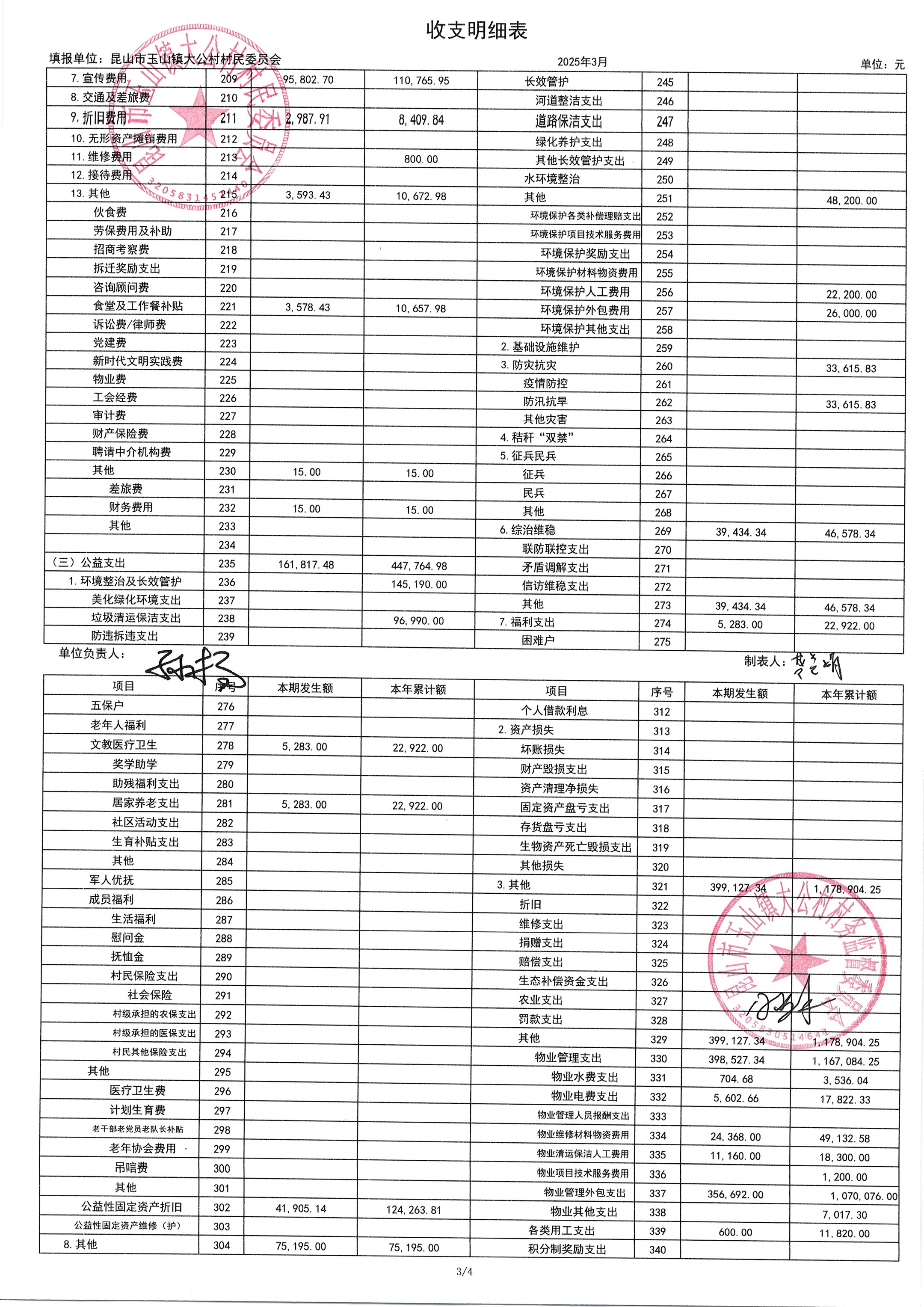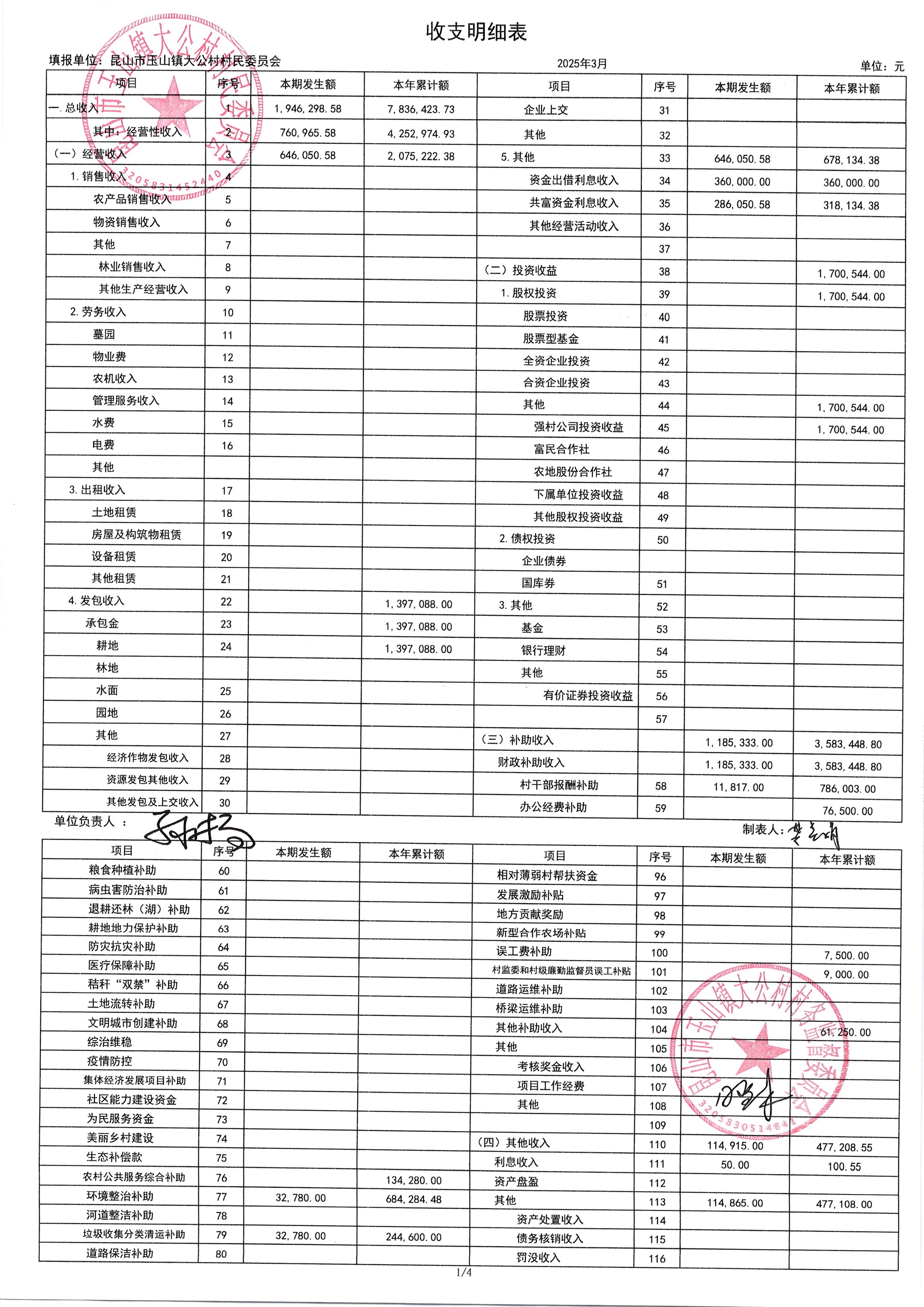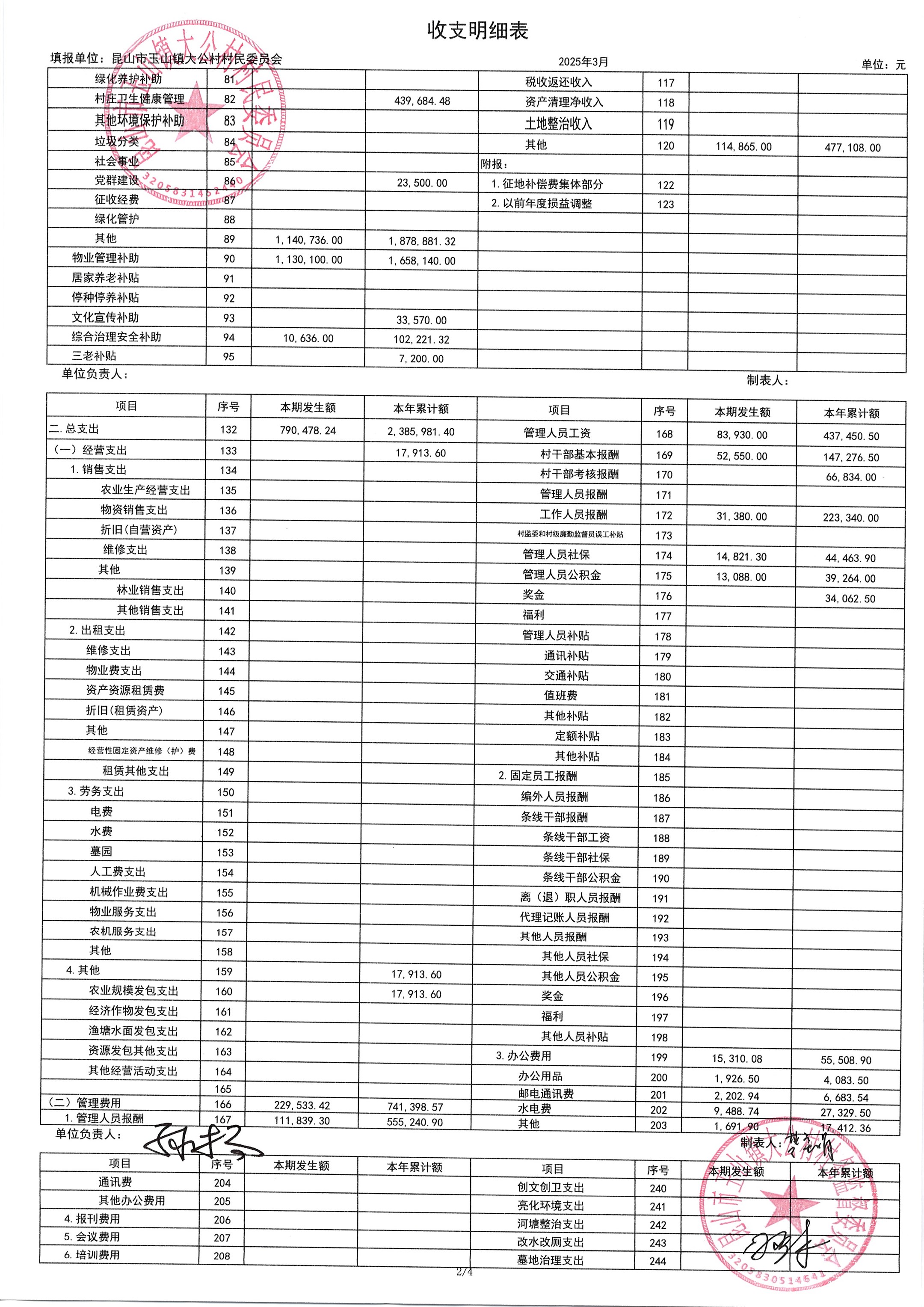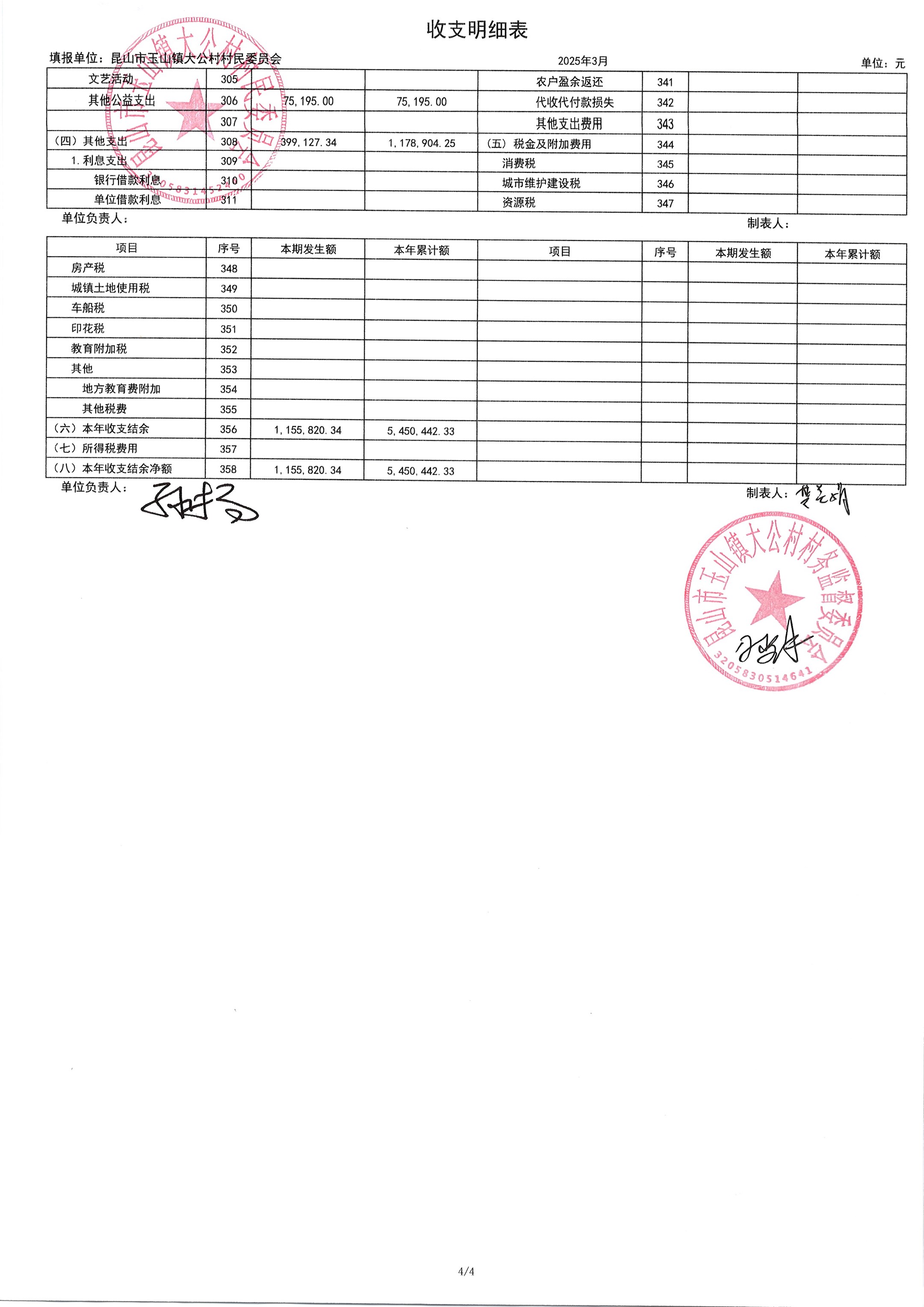 高新区大公村2025年4月财务公开