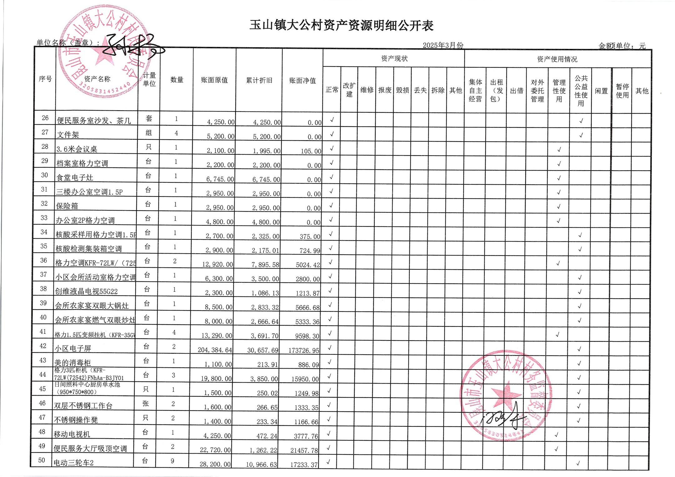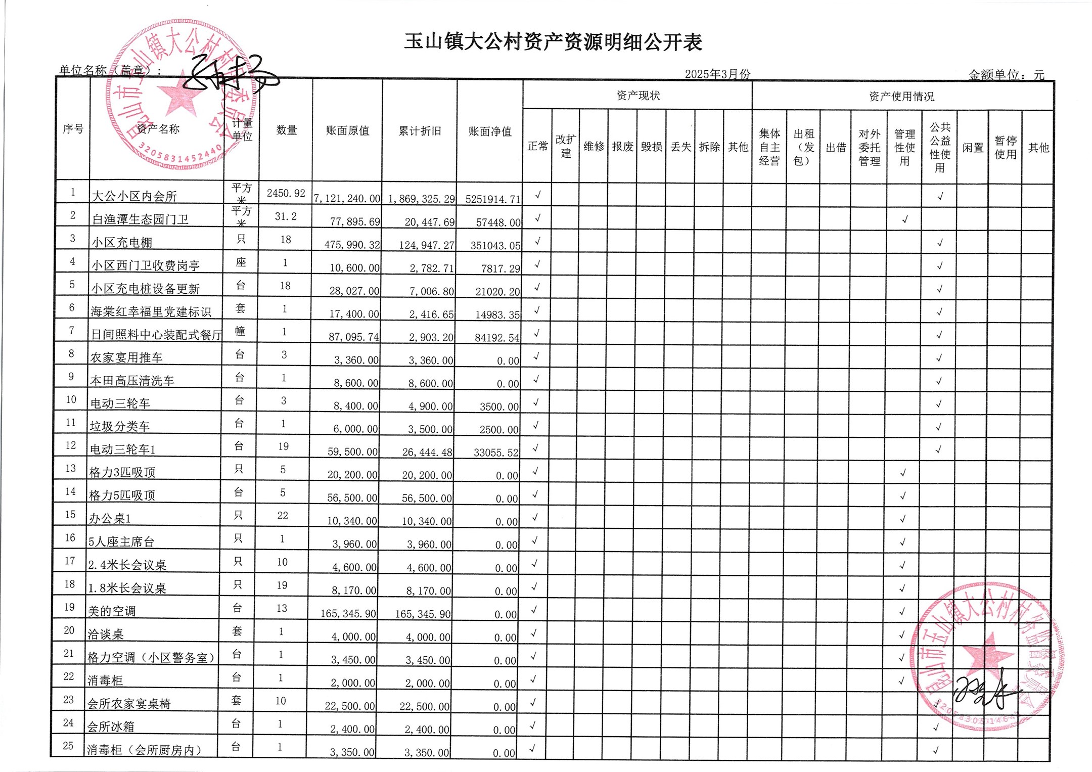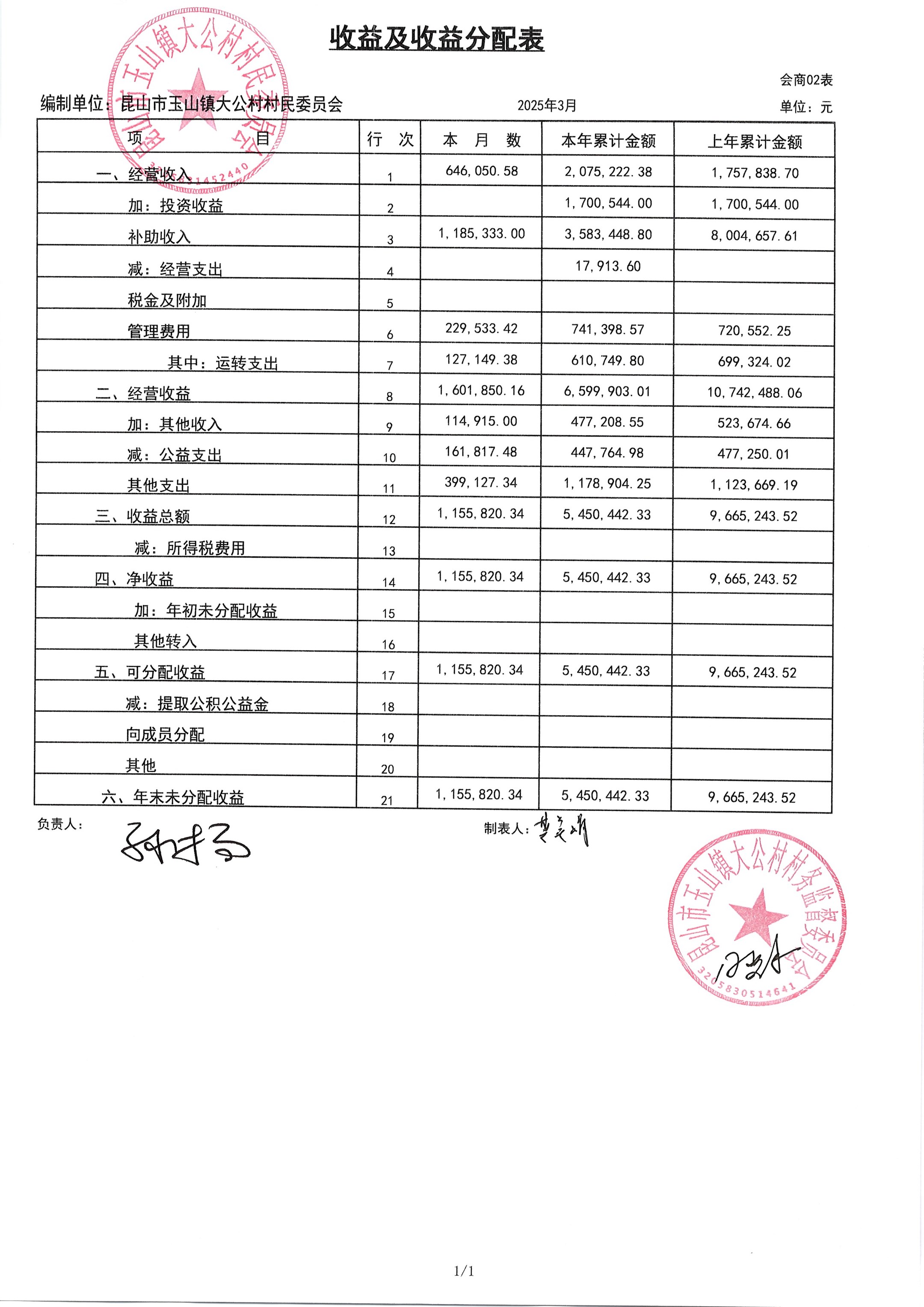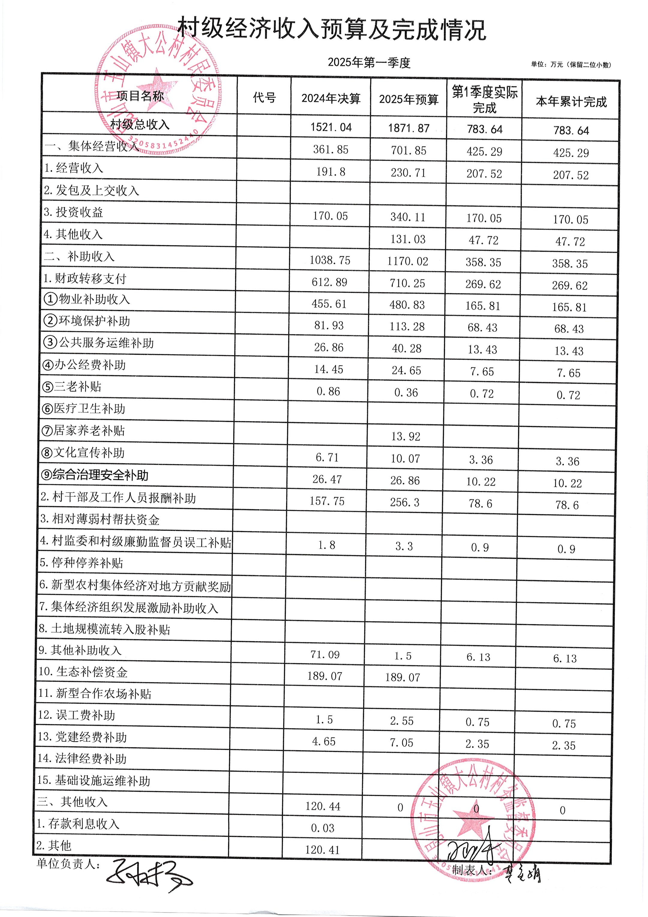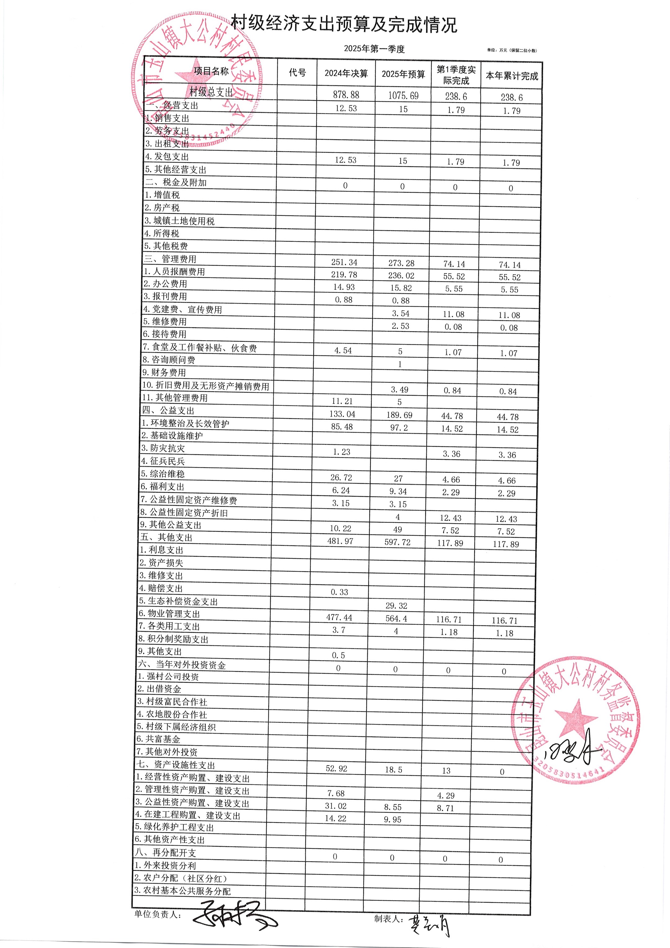 高新区大公村2025年4月财务公开