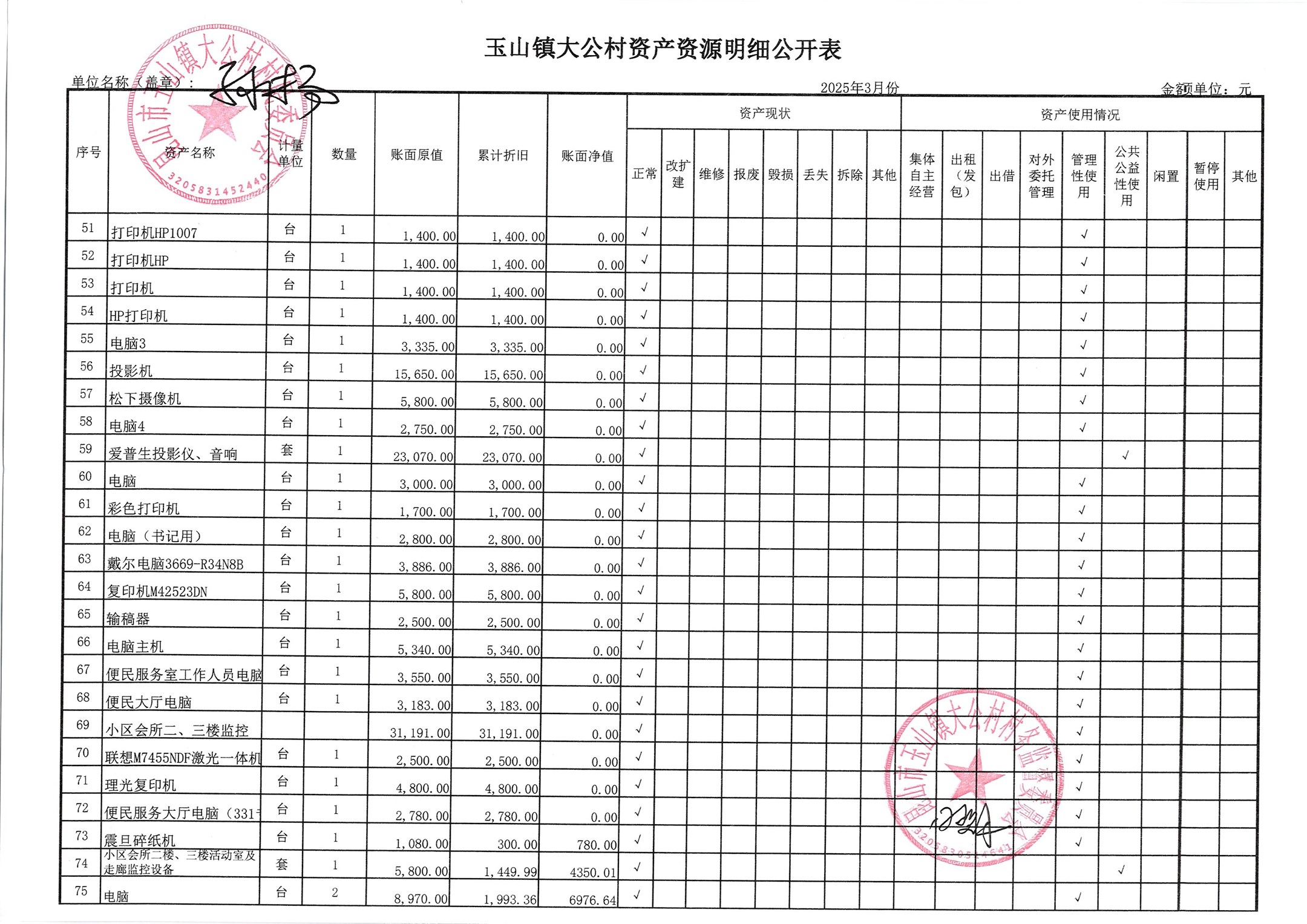 村盖章事项名录