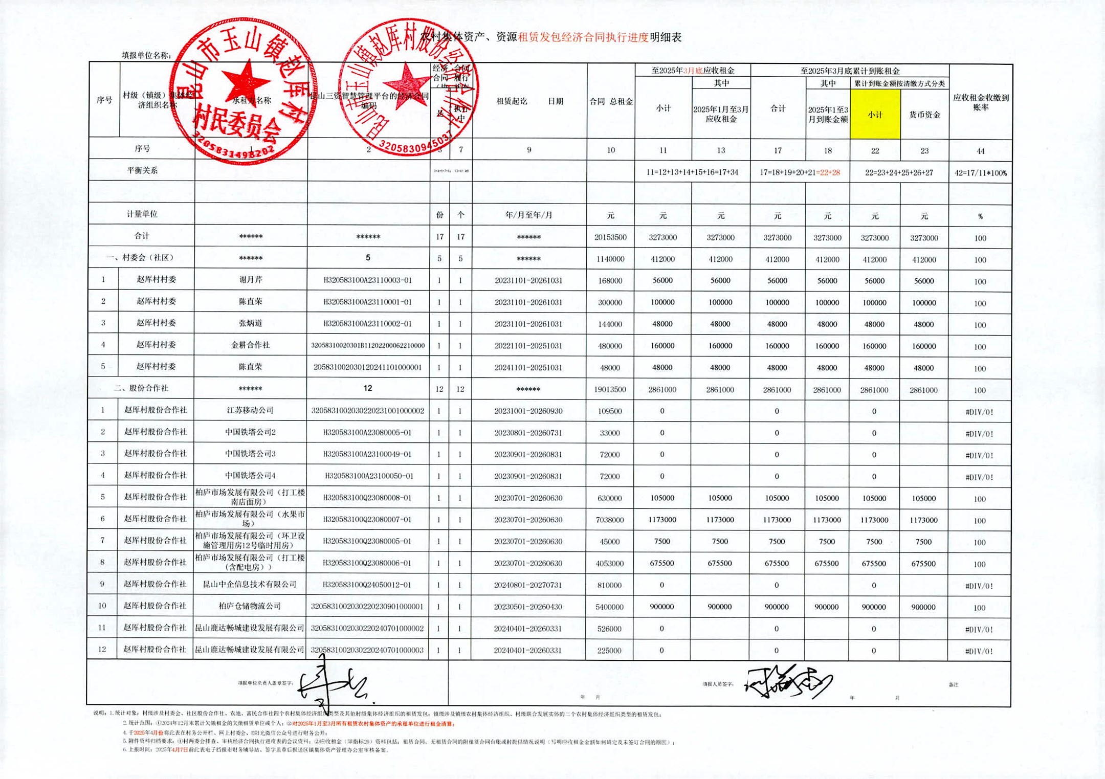 赵厍村2025年第一季度经济合同执行情况及公示照片