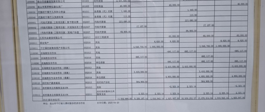 2025年3月大潭村股份经济合作社财务公开