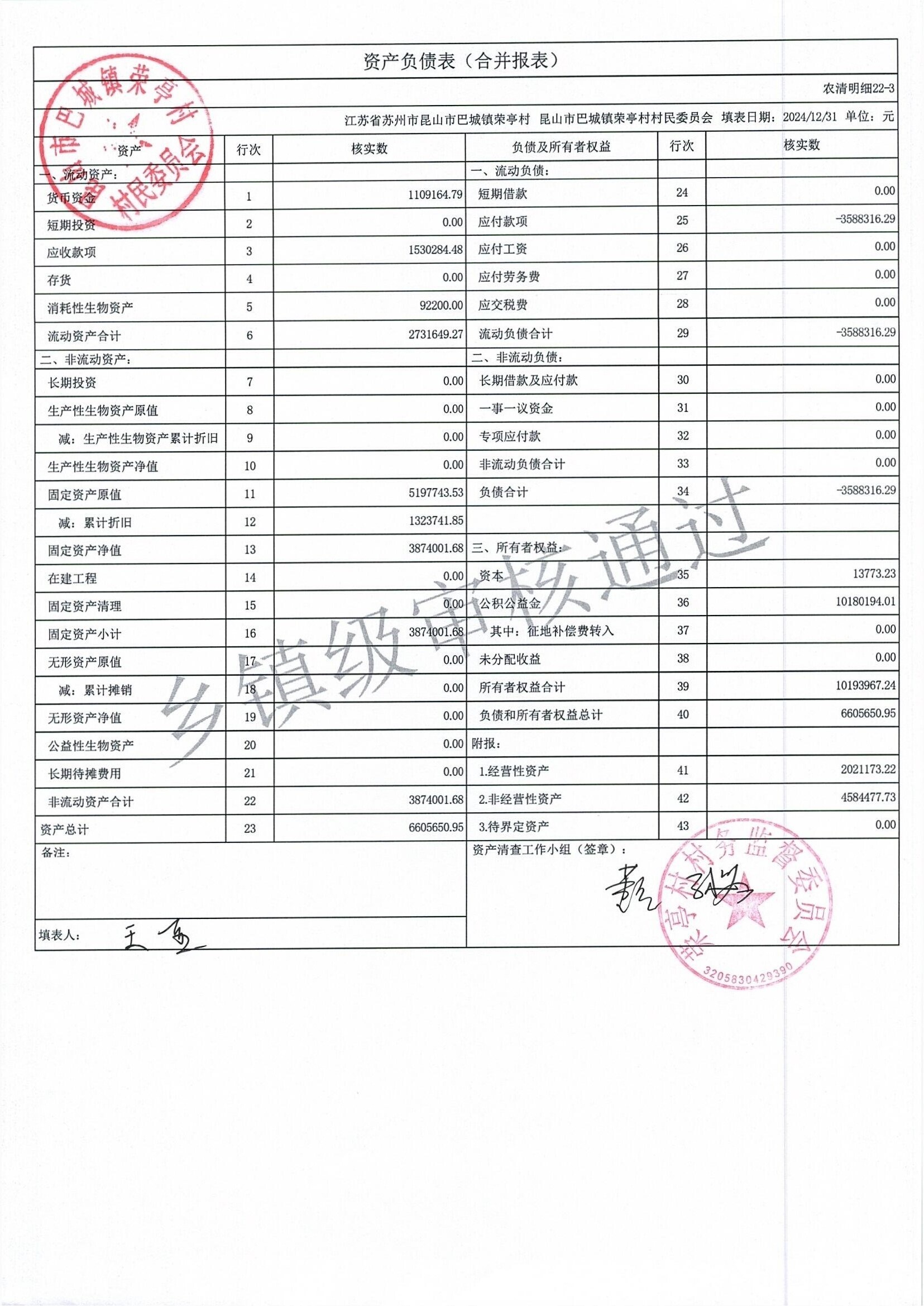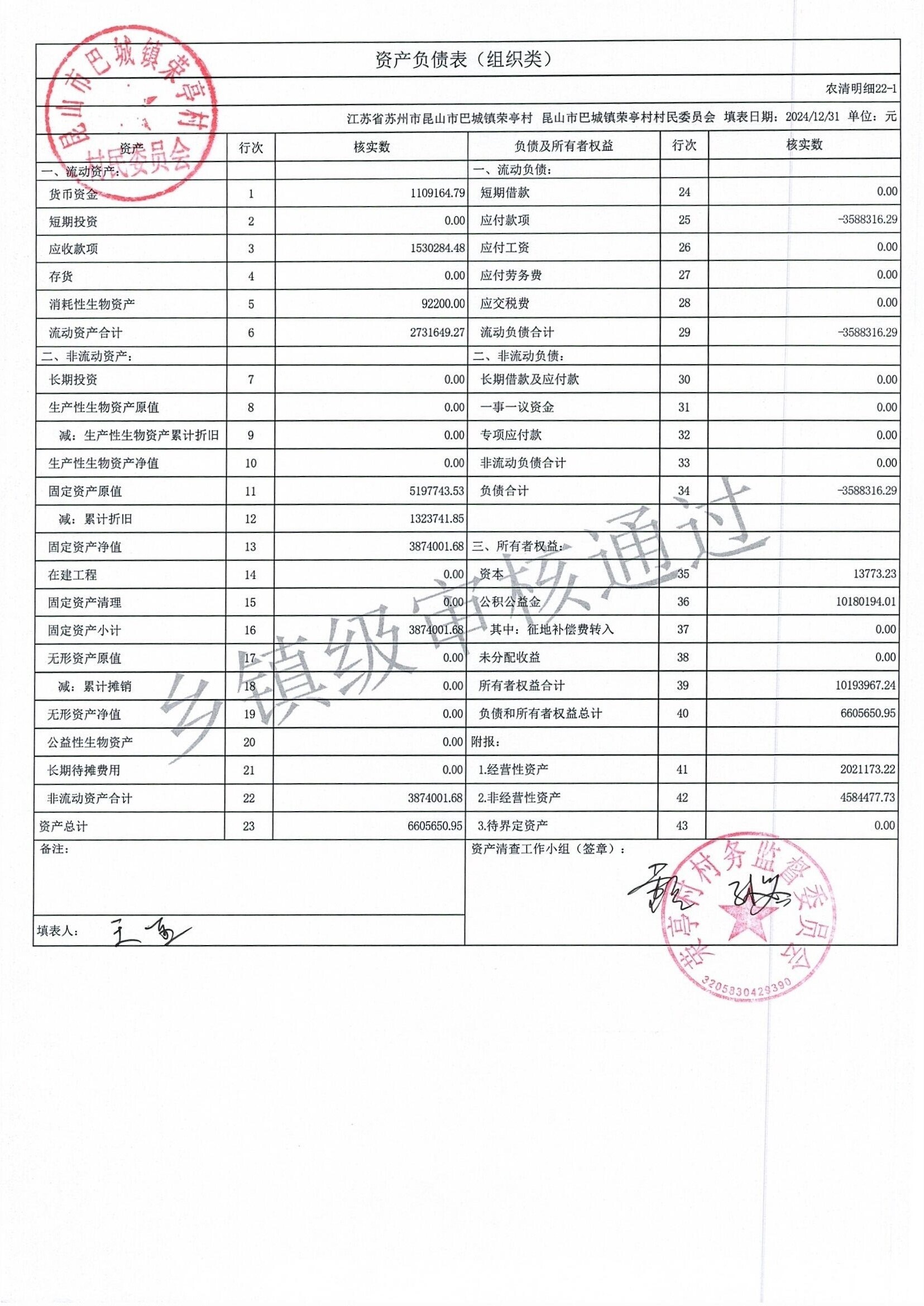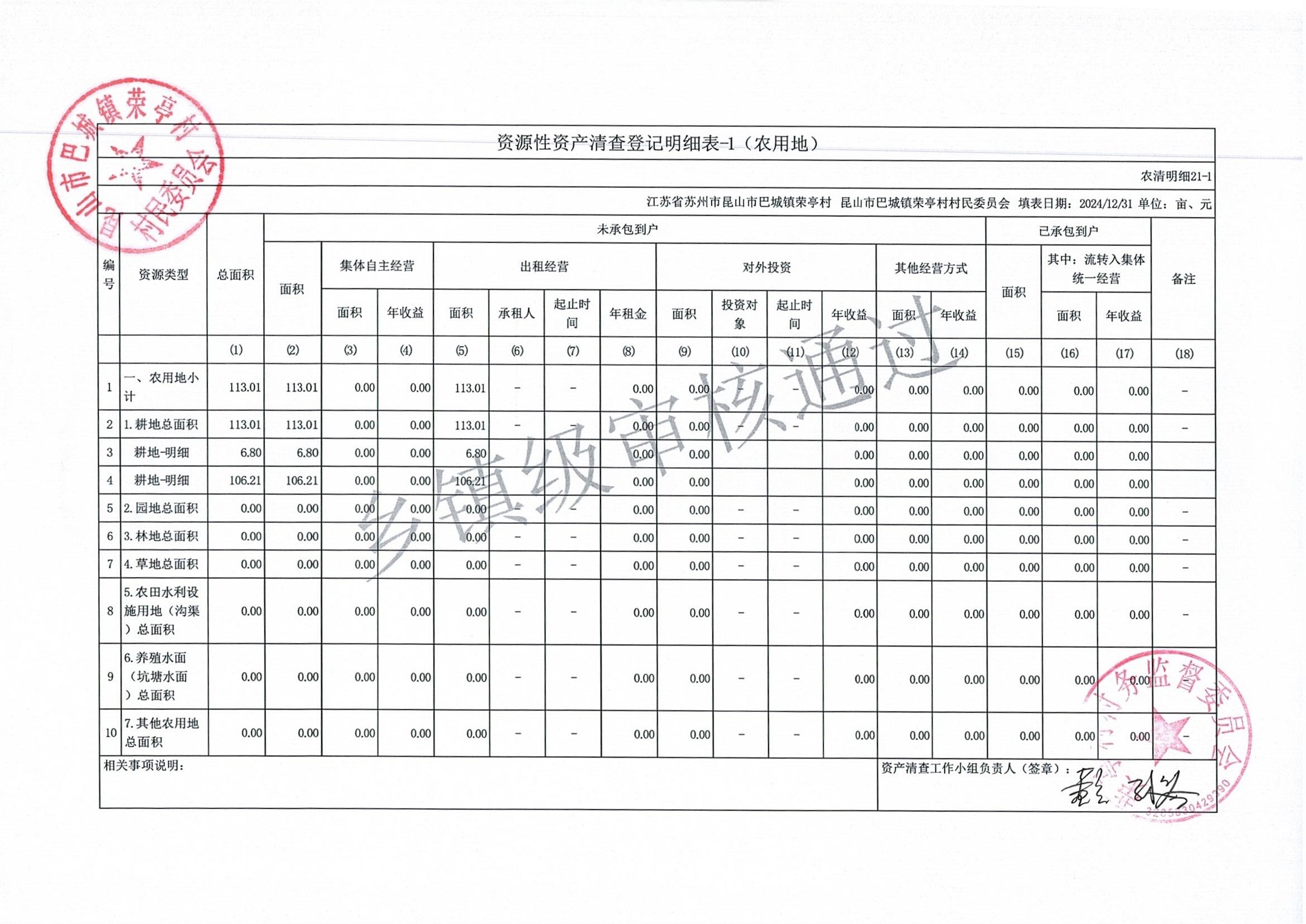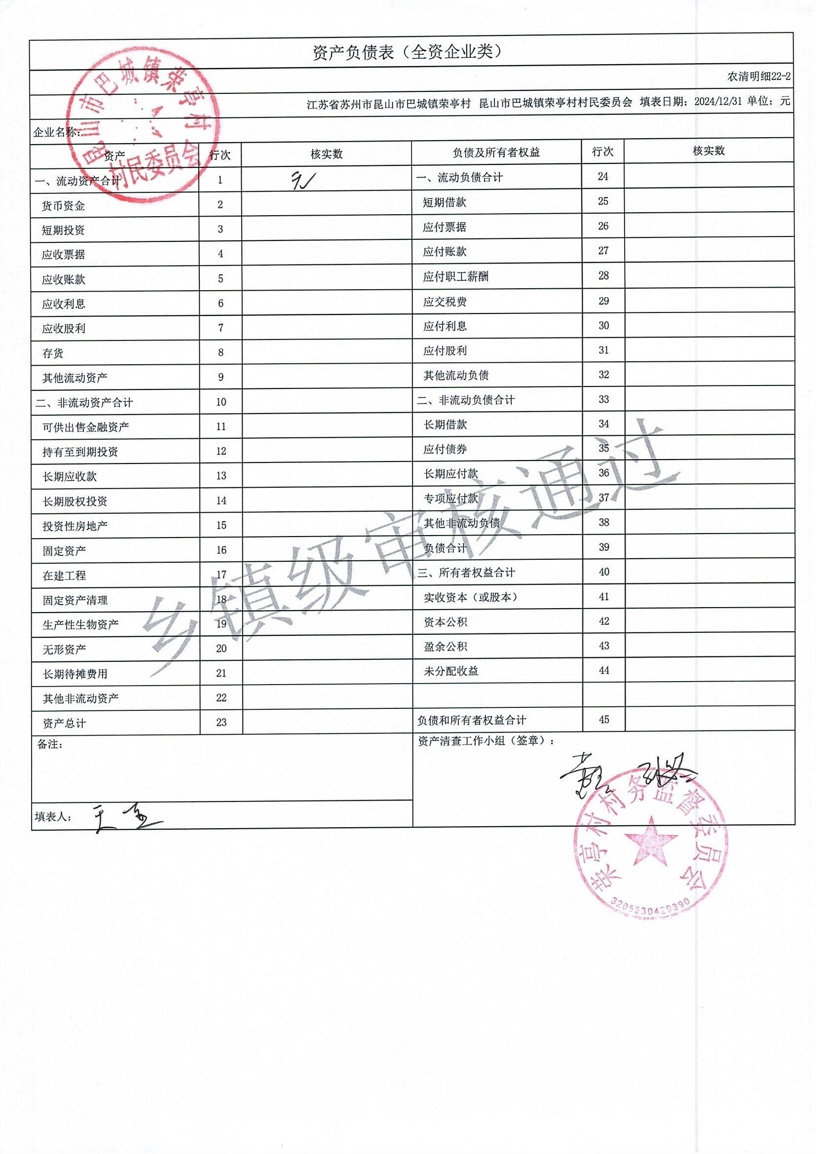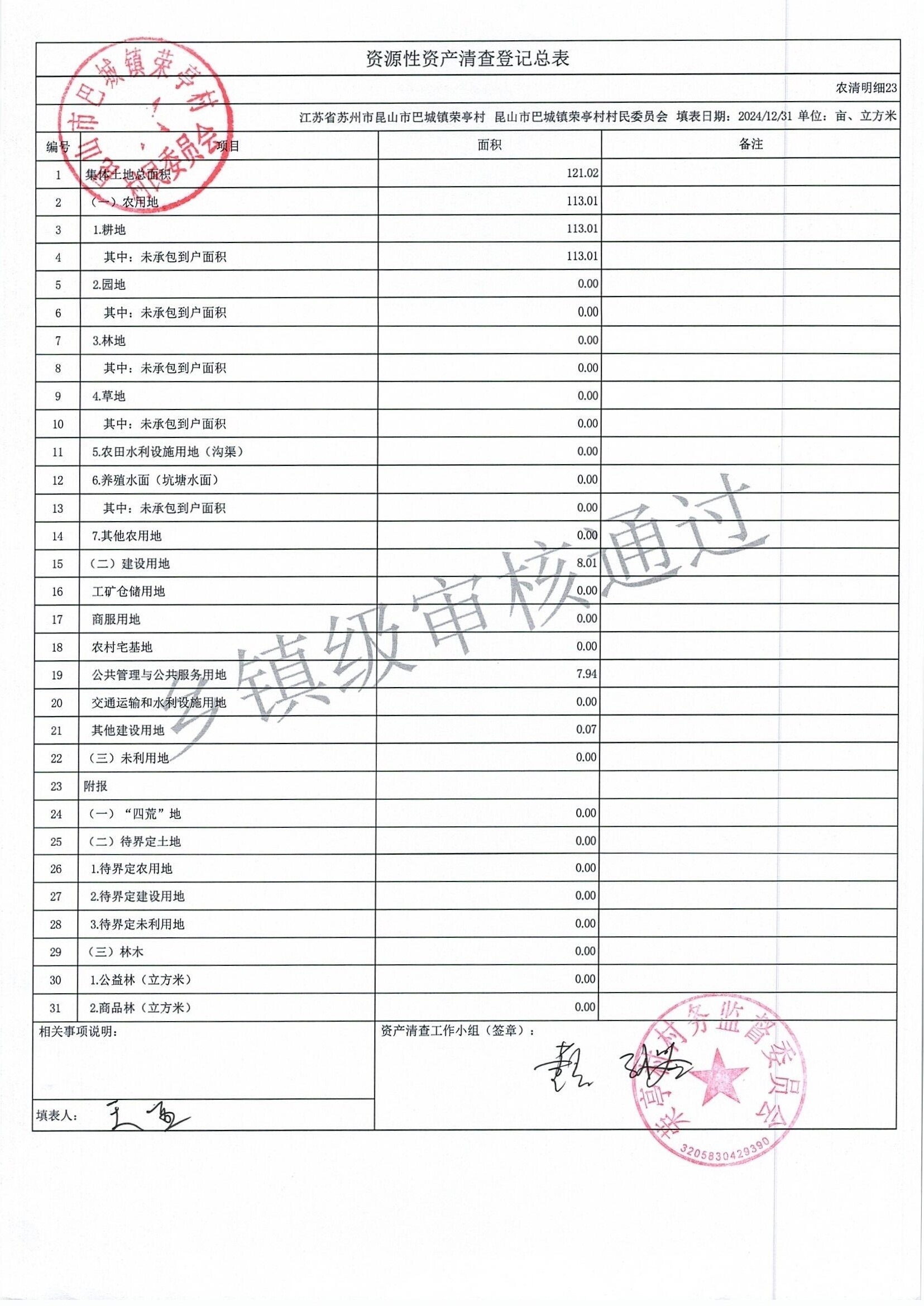 荣亭村2024年清产核资