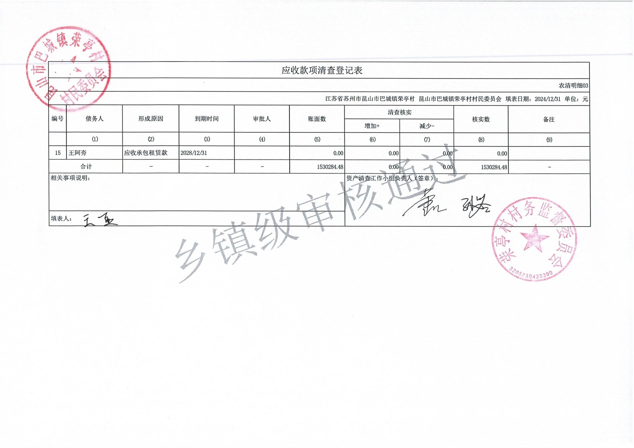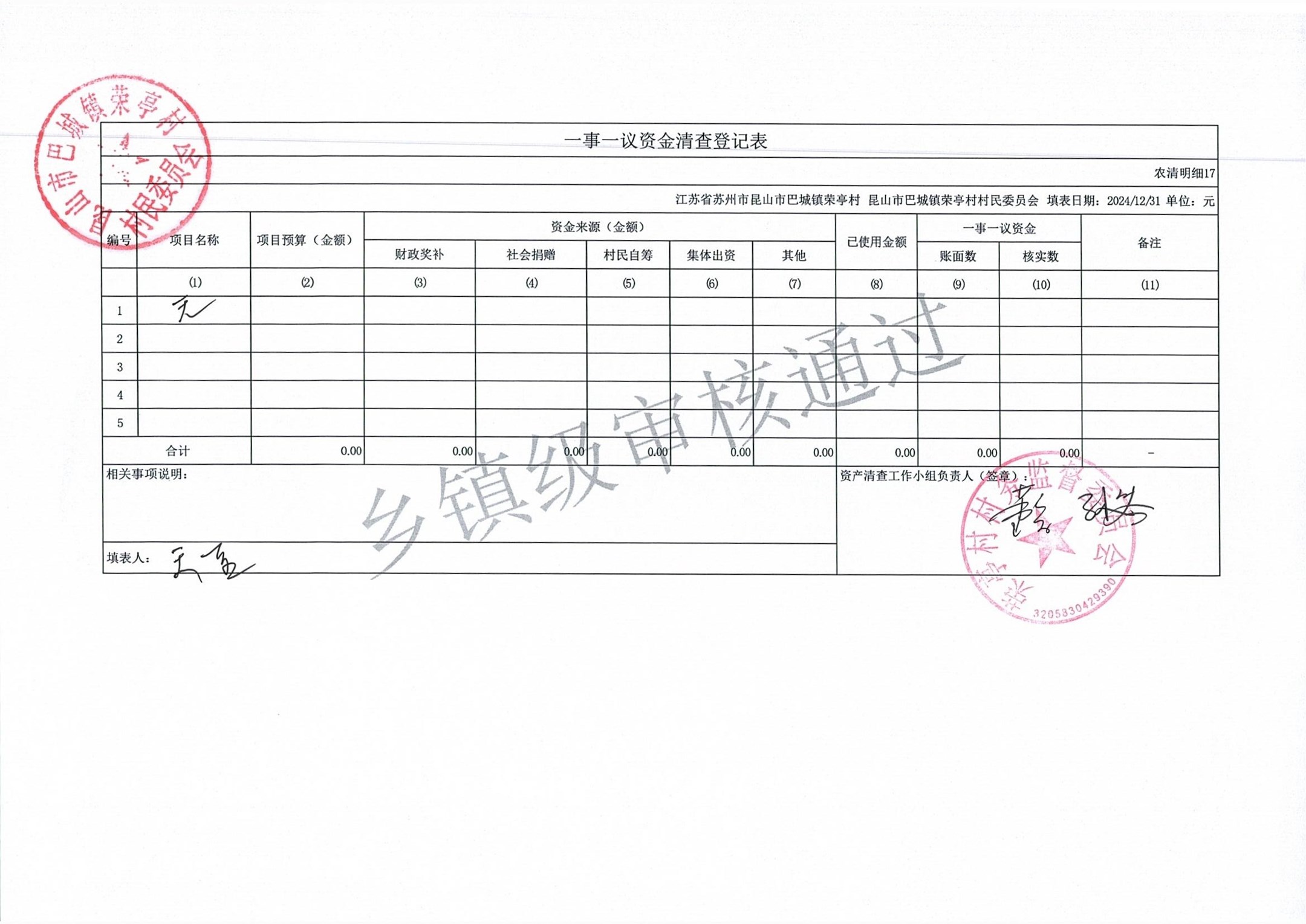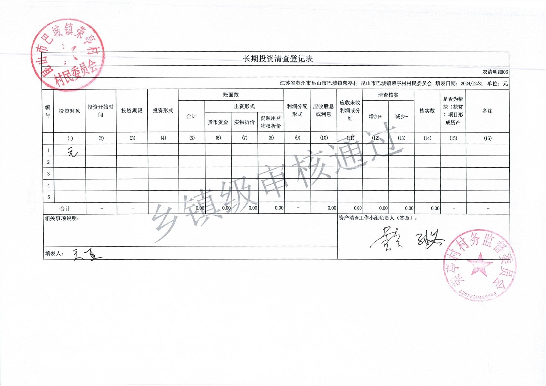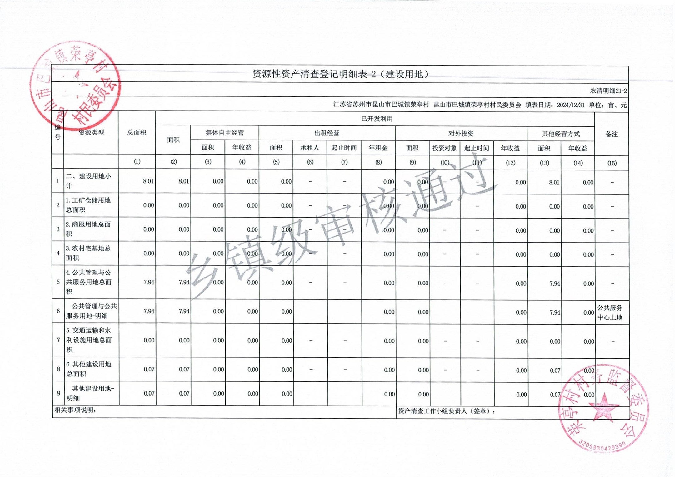 荣亭村2024年清产核资