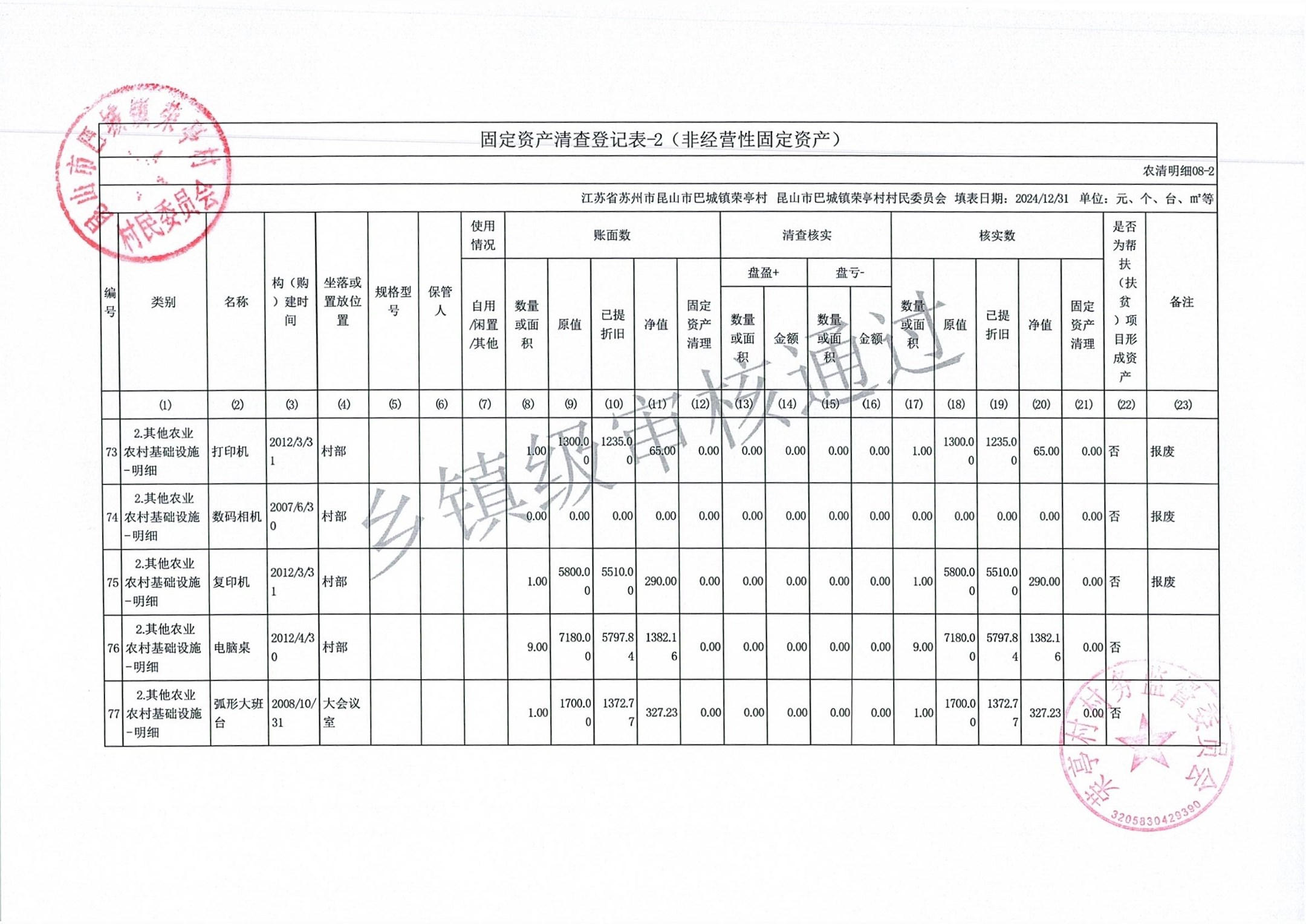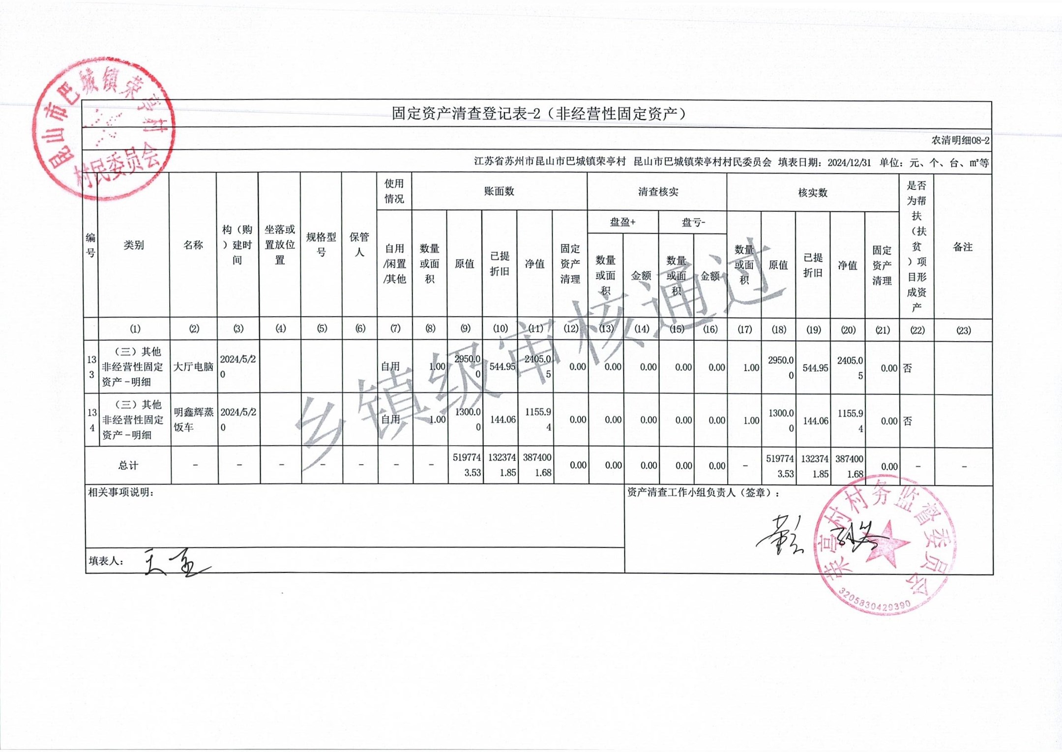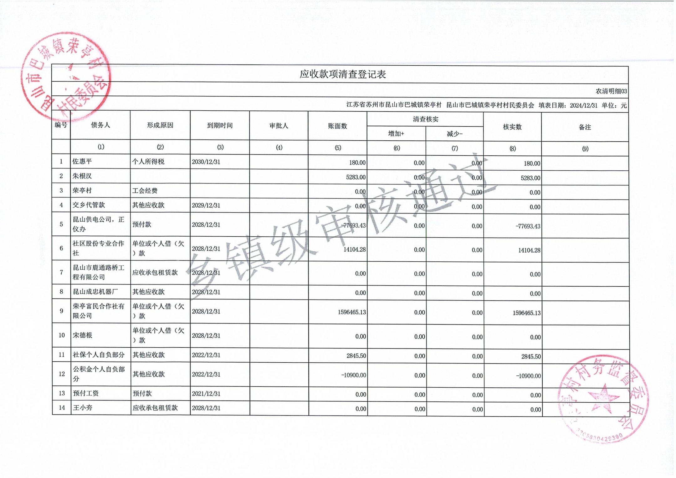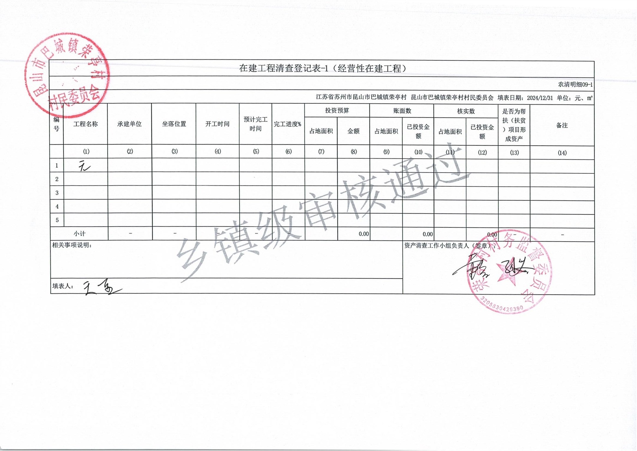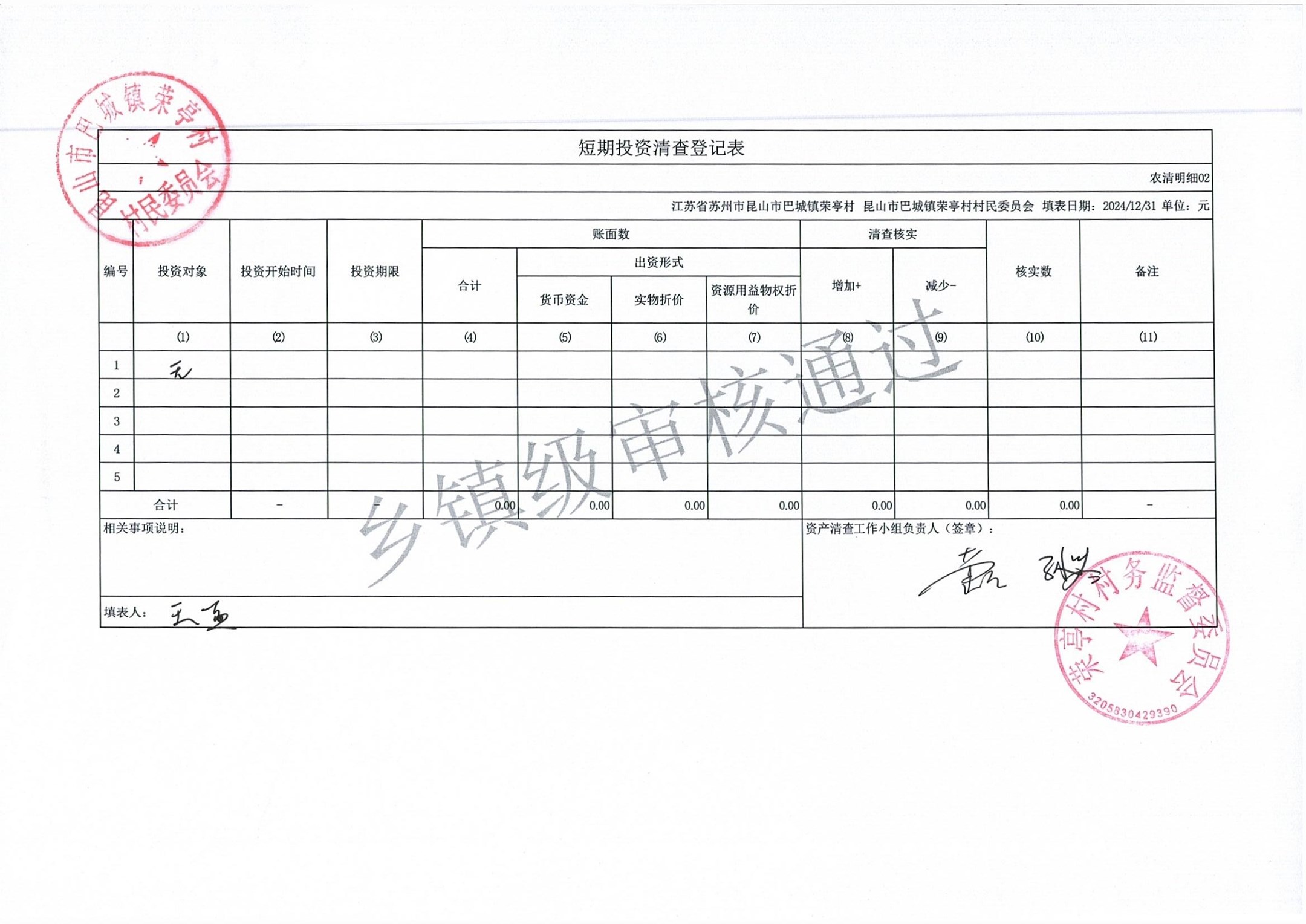 荣亭村2024年清产核资