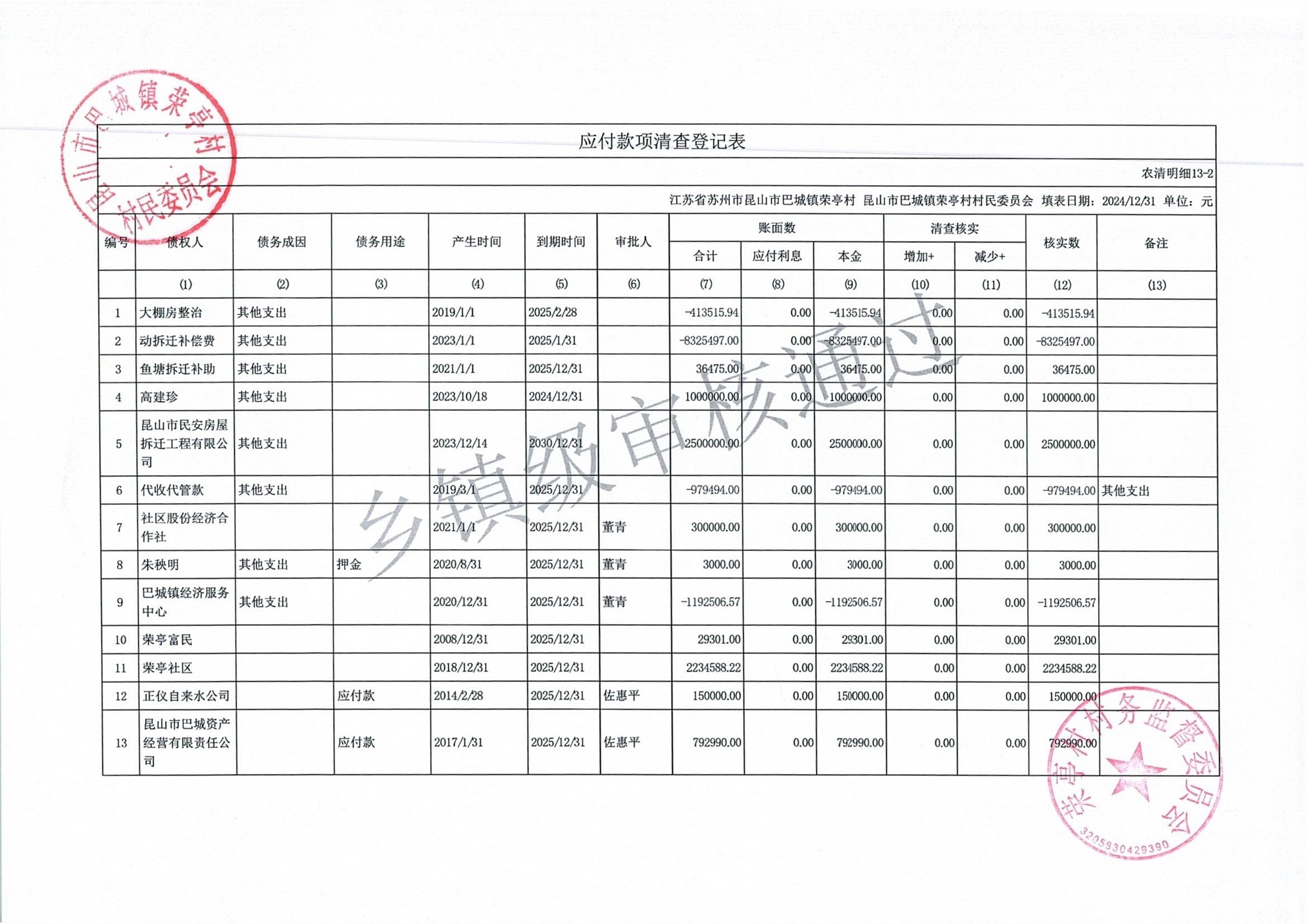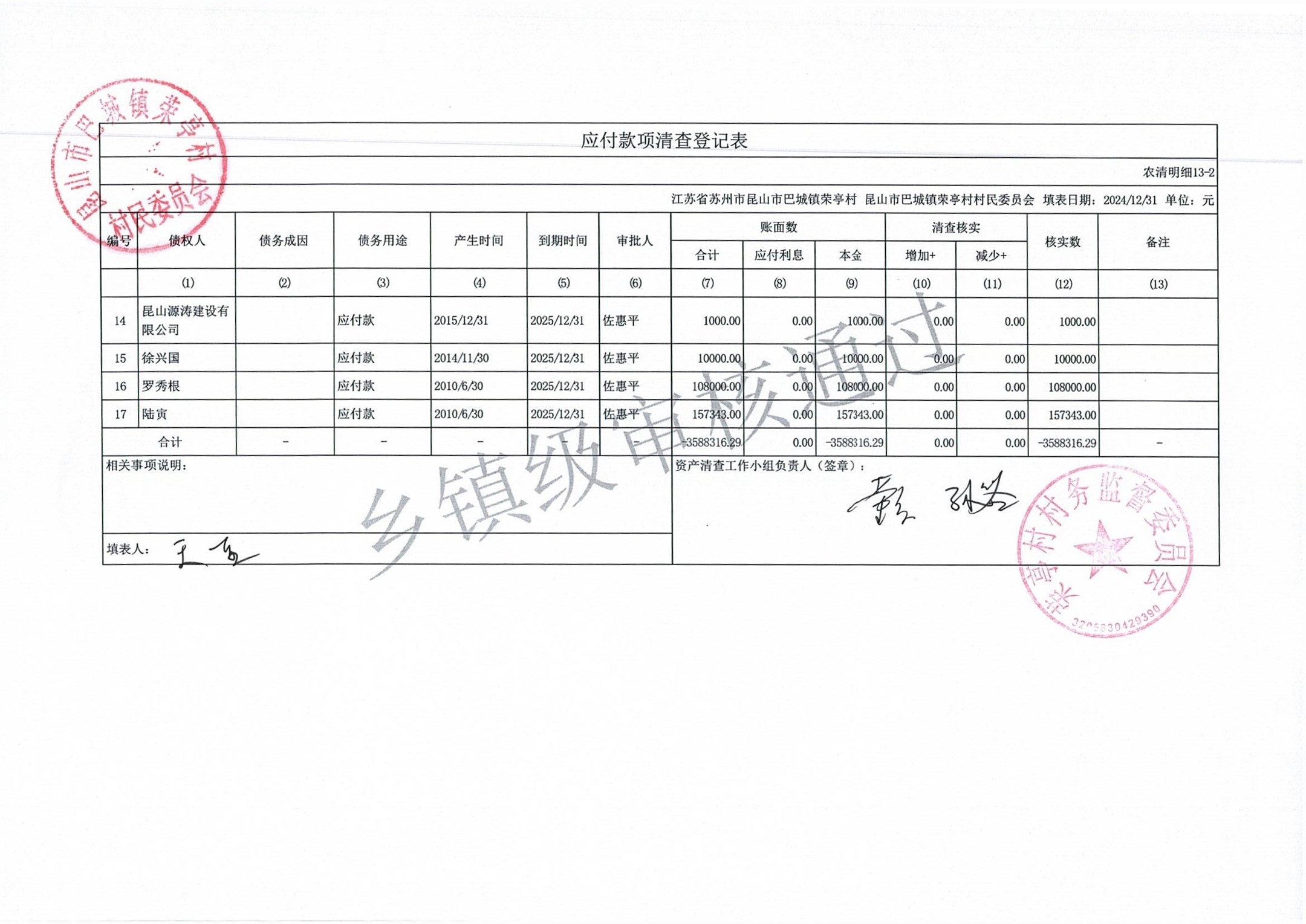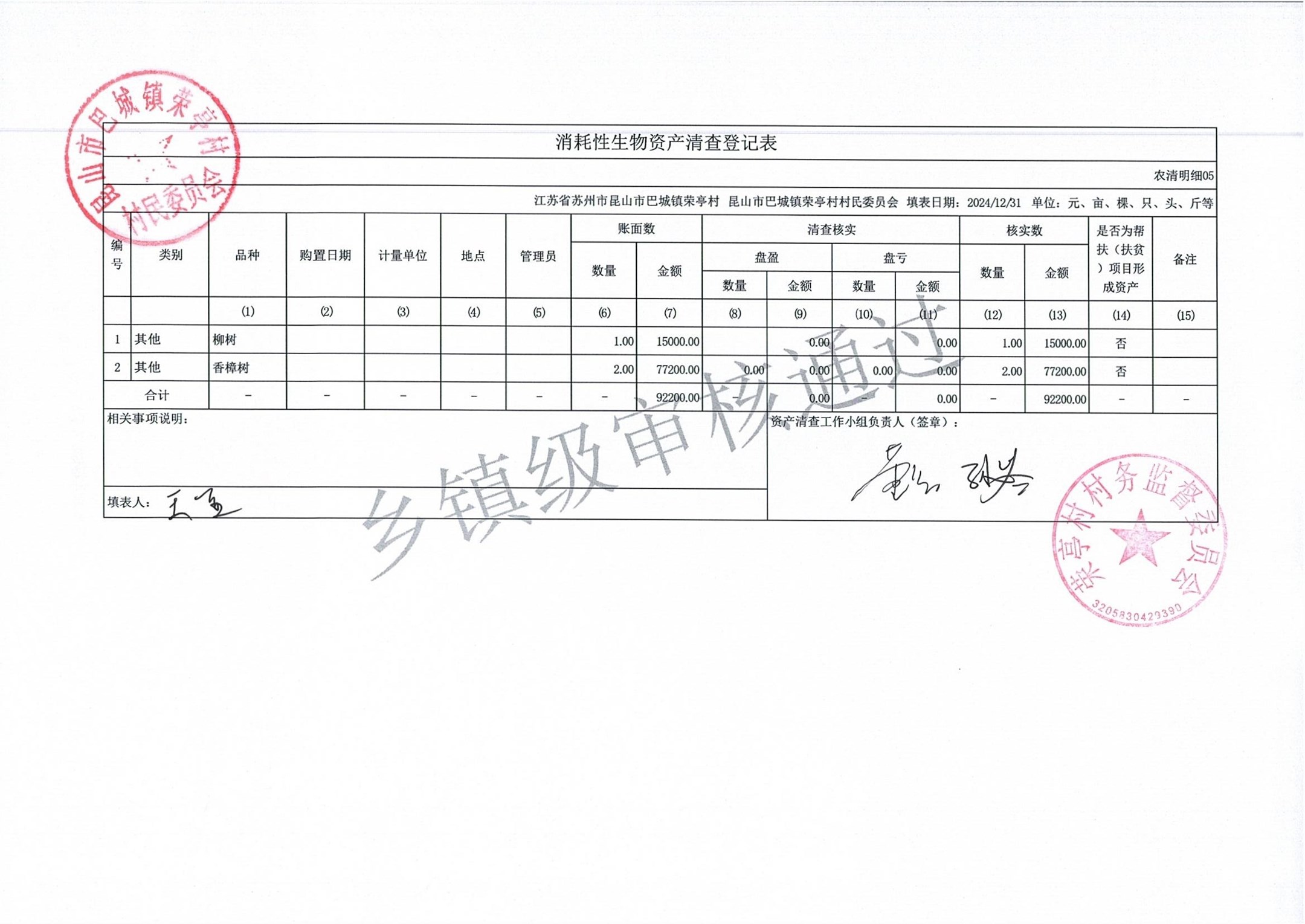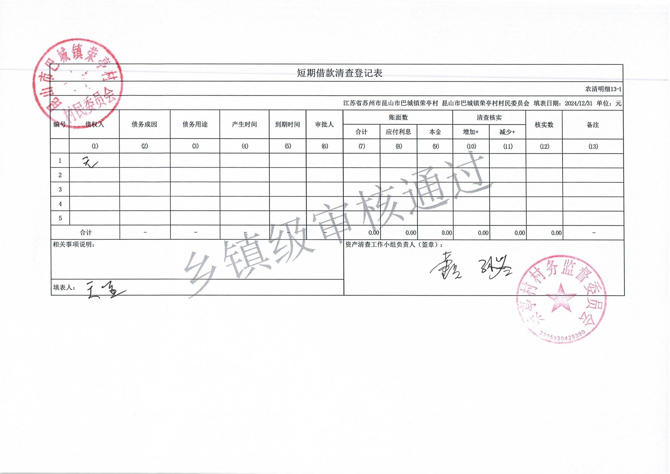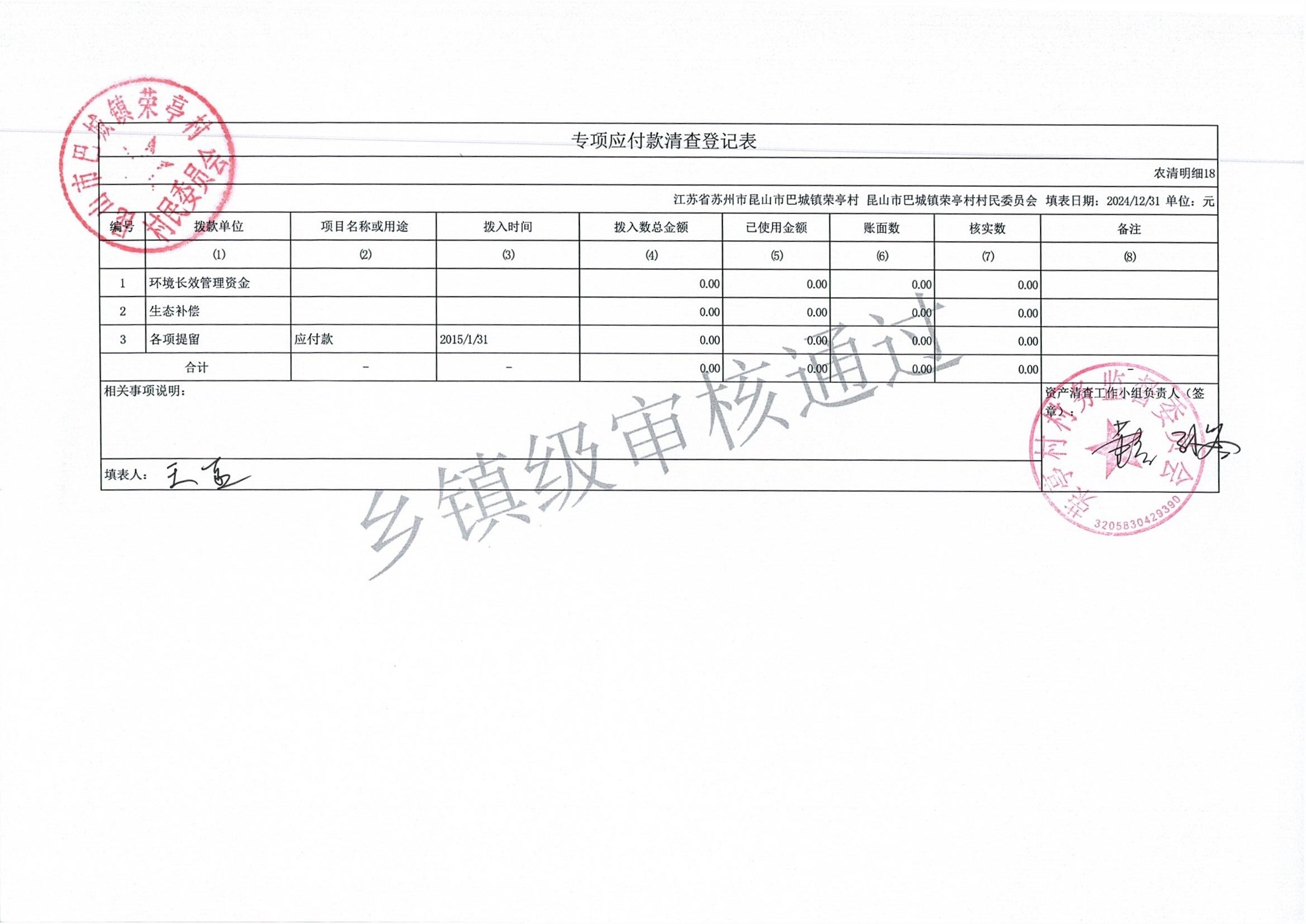 荣亭村2024年清产核资
