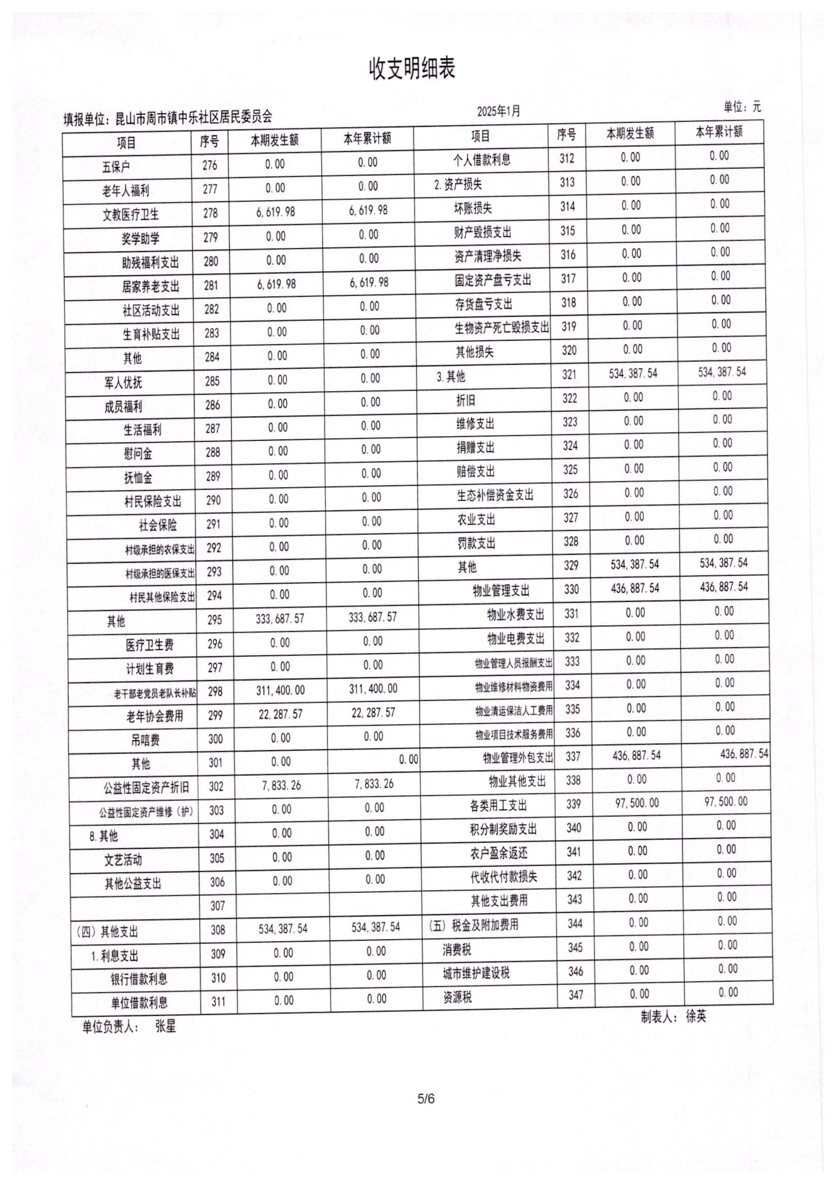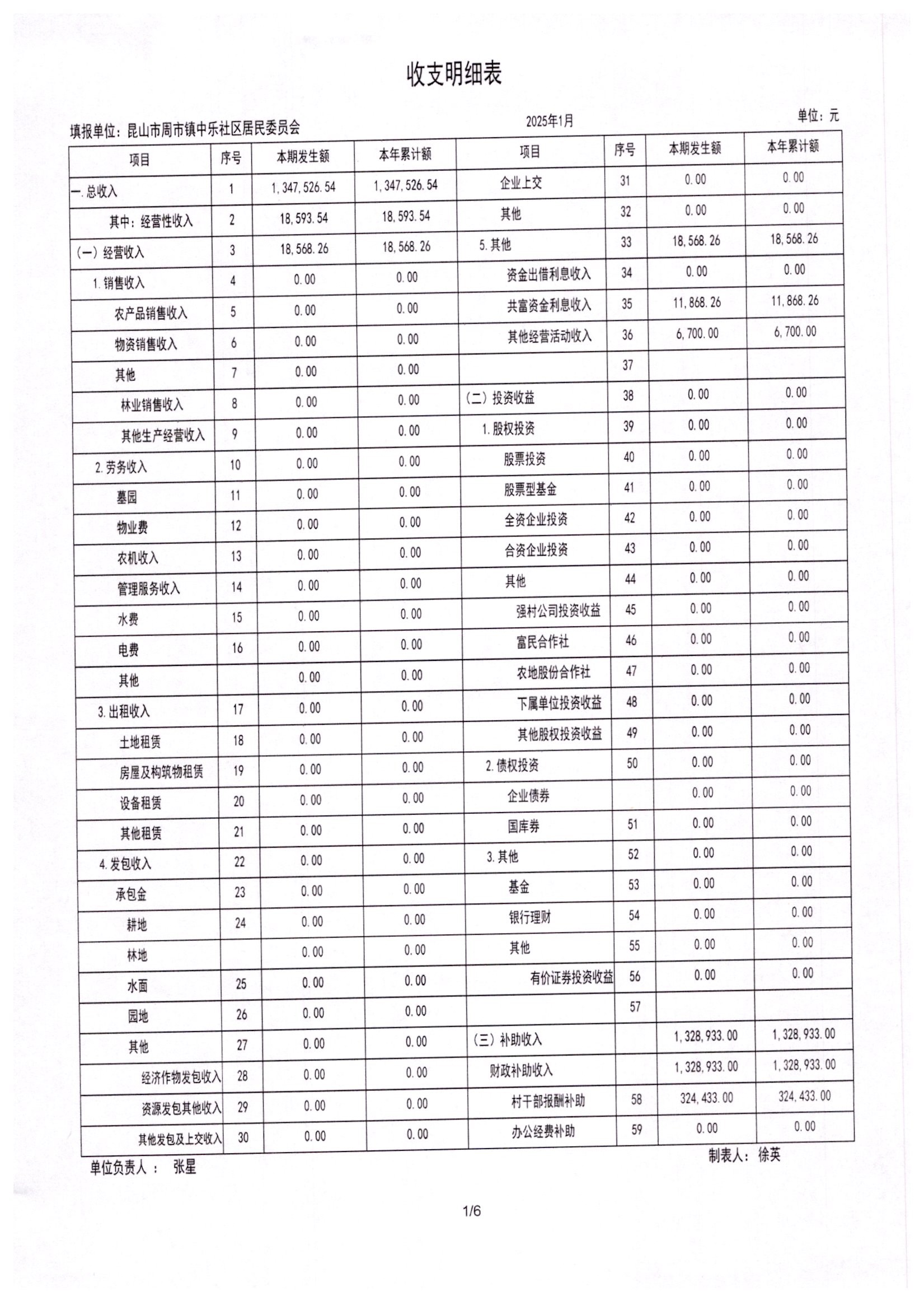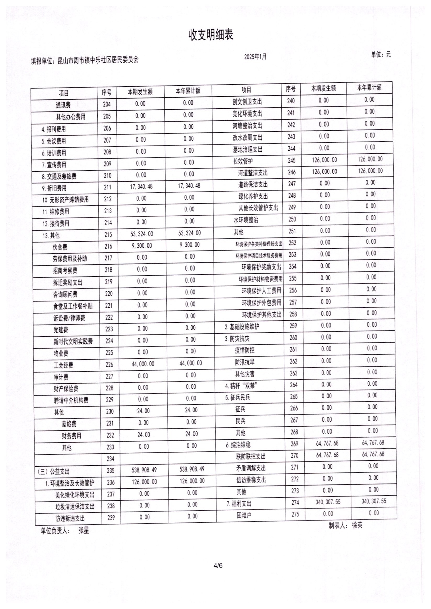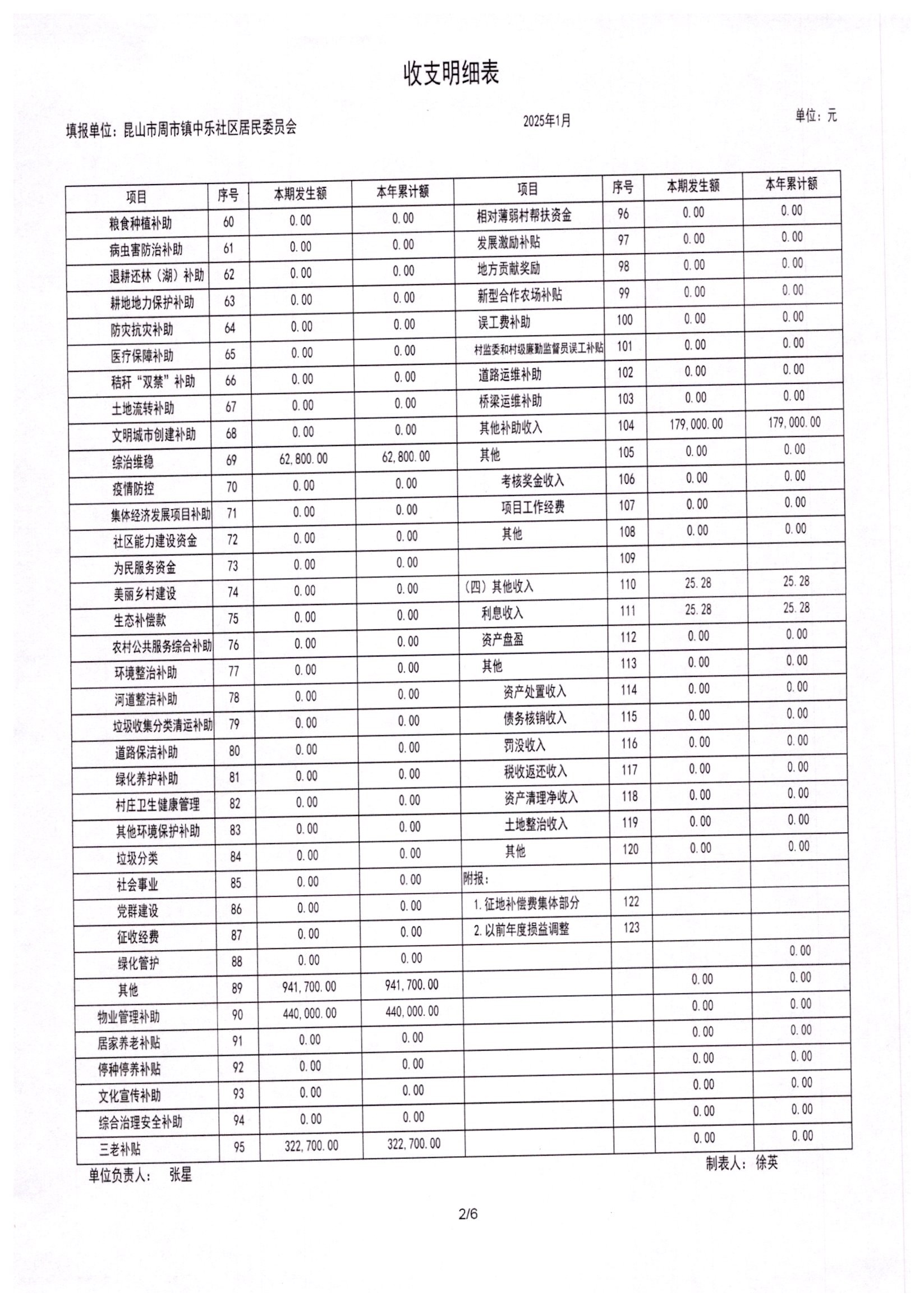 2025年1月居委会财务公开