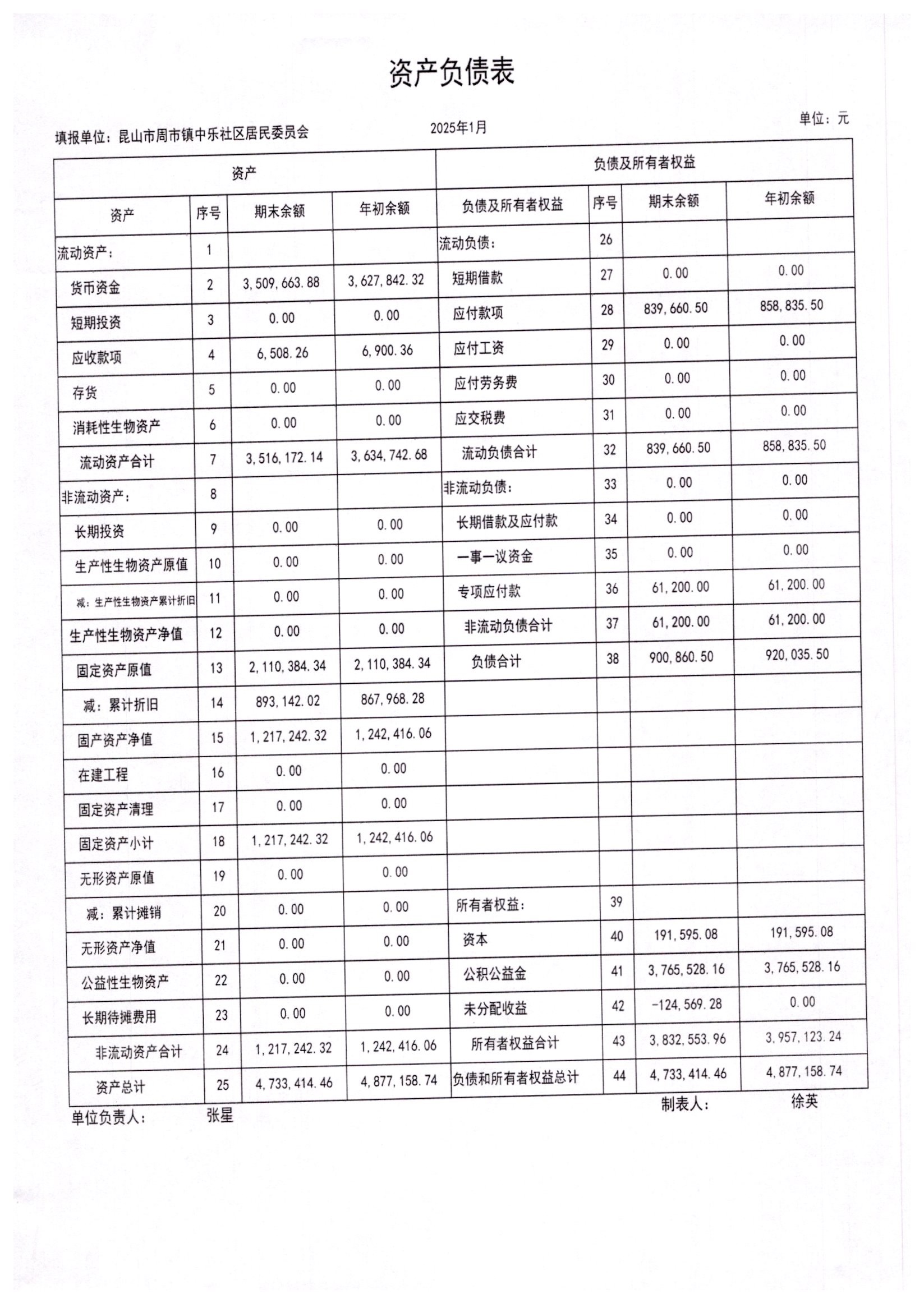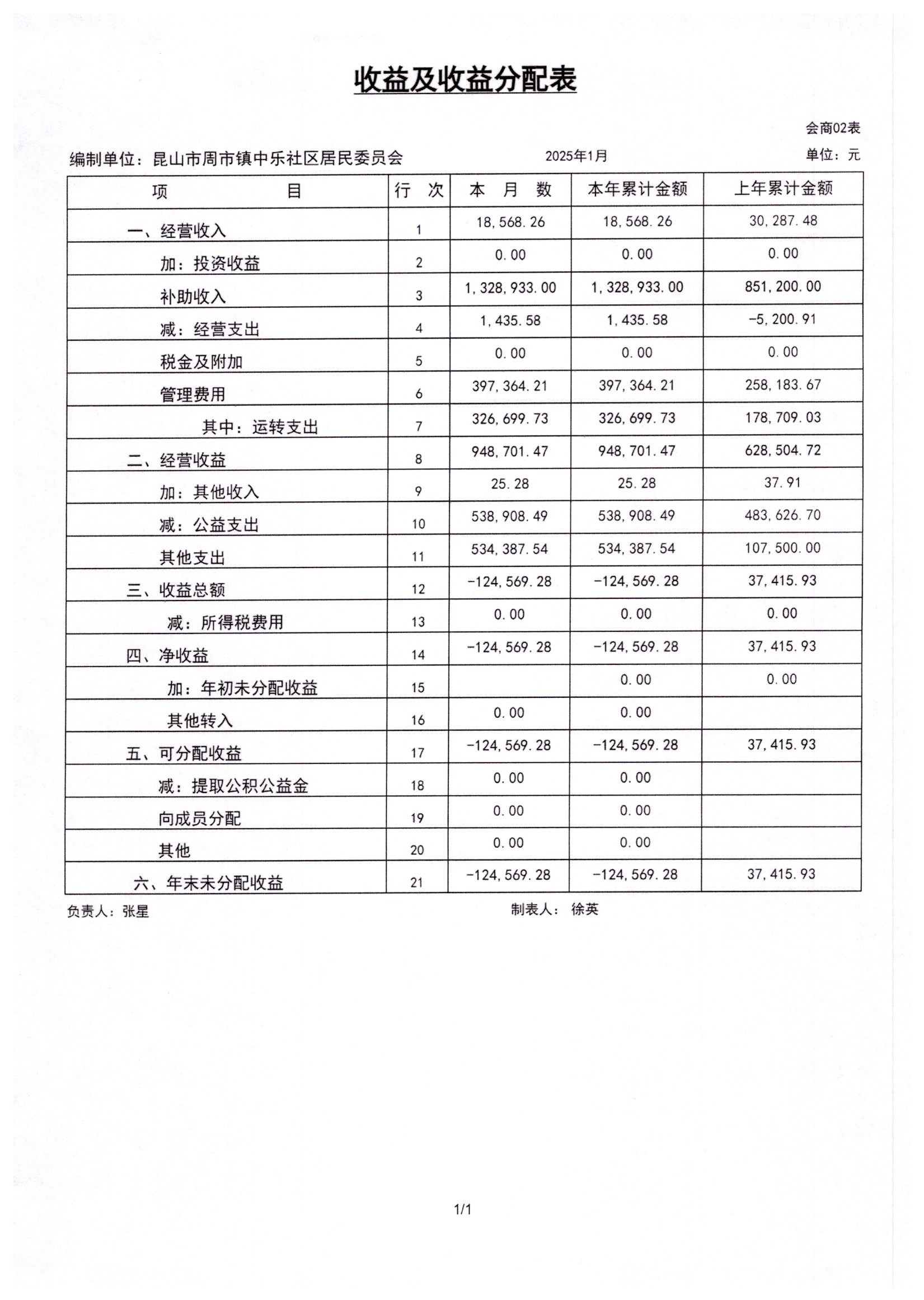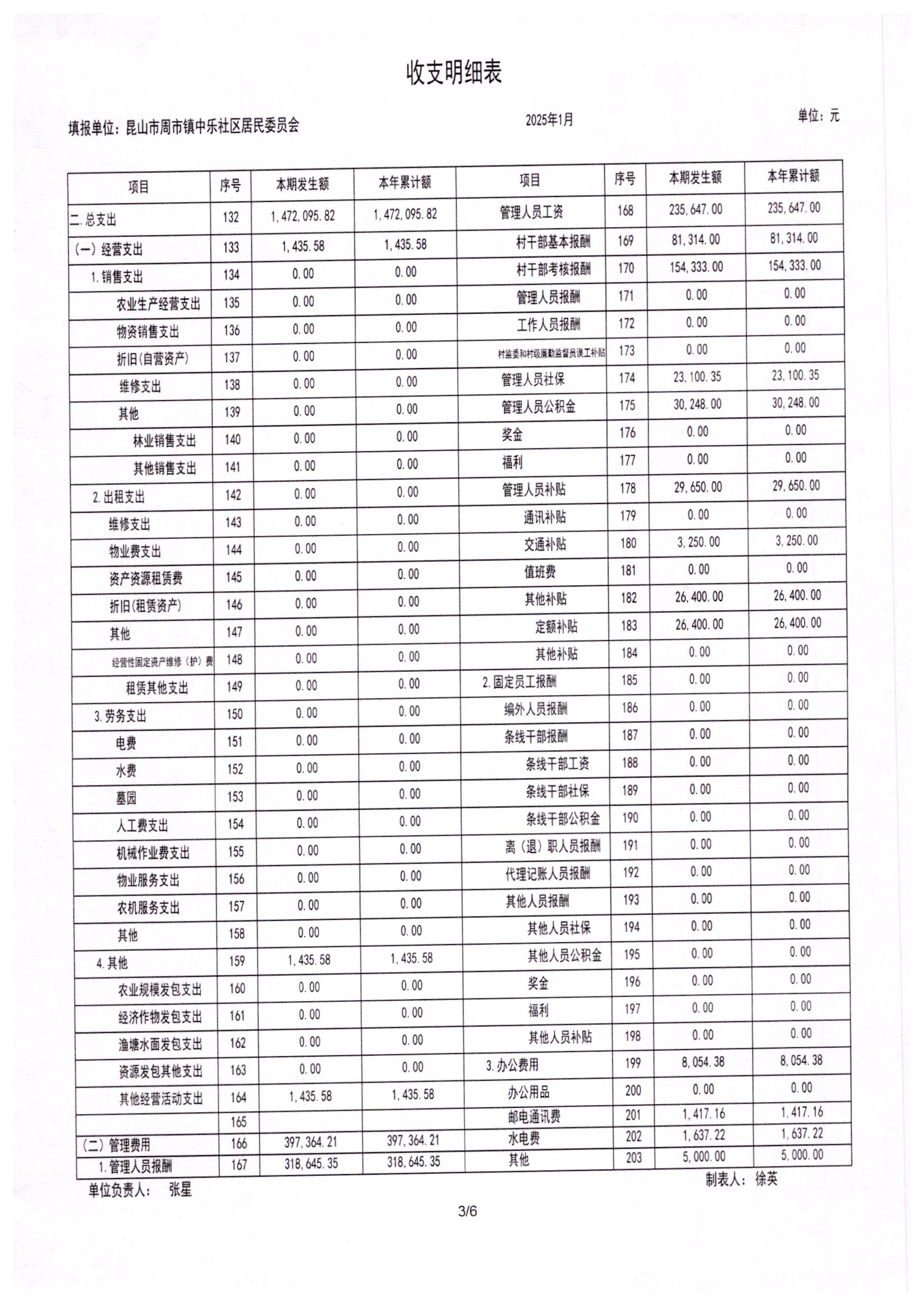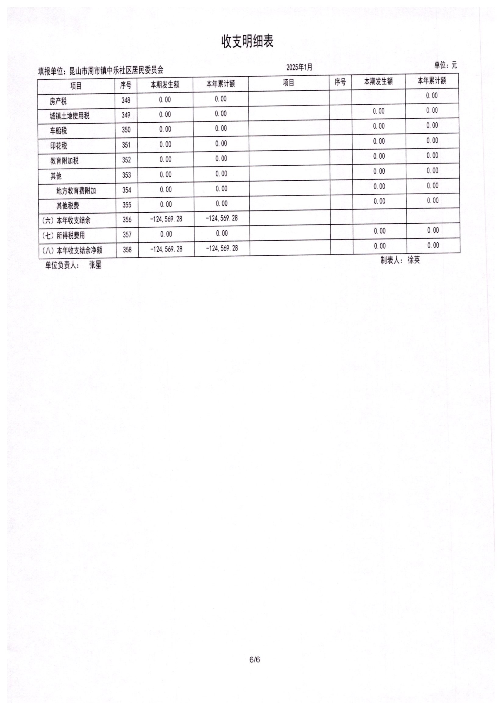 2025年1月居委会财务公开