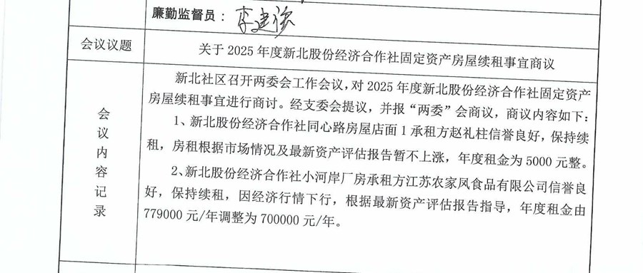 关于2025年新北股份经济合作社固定资产房屋续租事宜公示