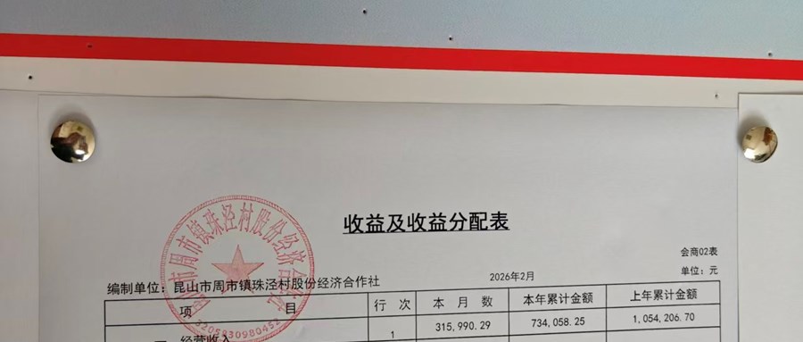 2026年3月珠泾村股份经济合作社财务公开(定期公开)