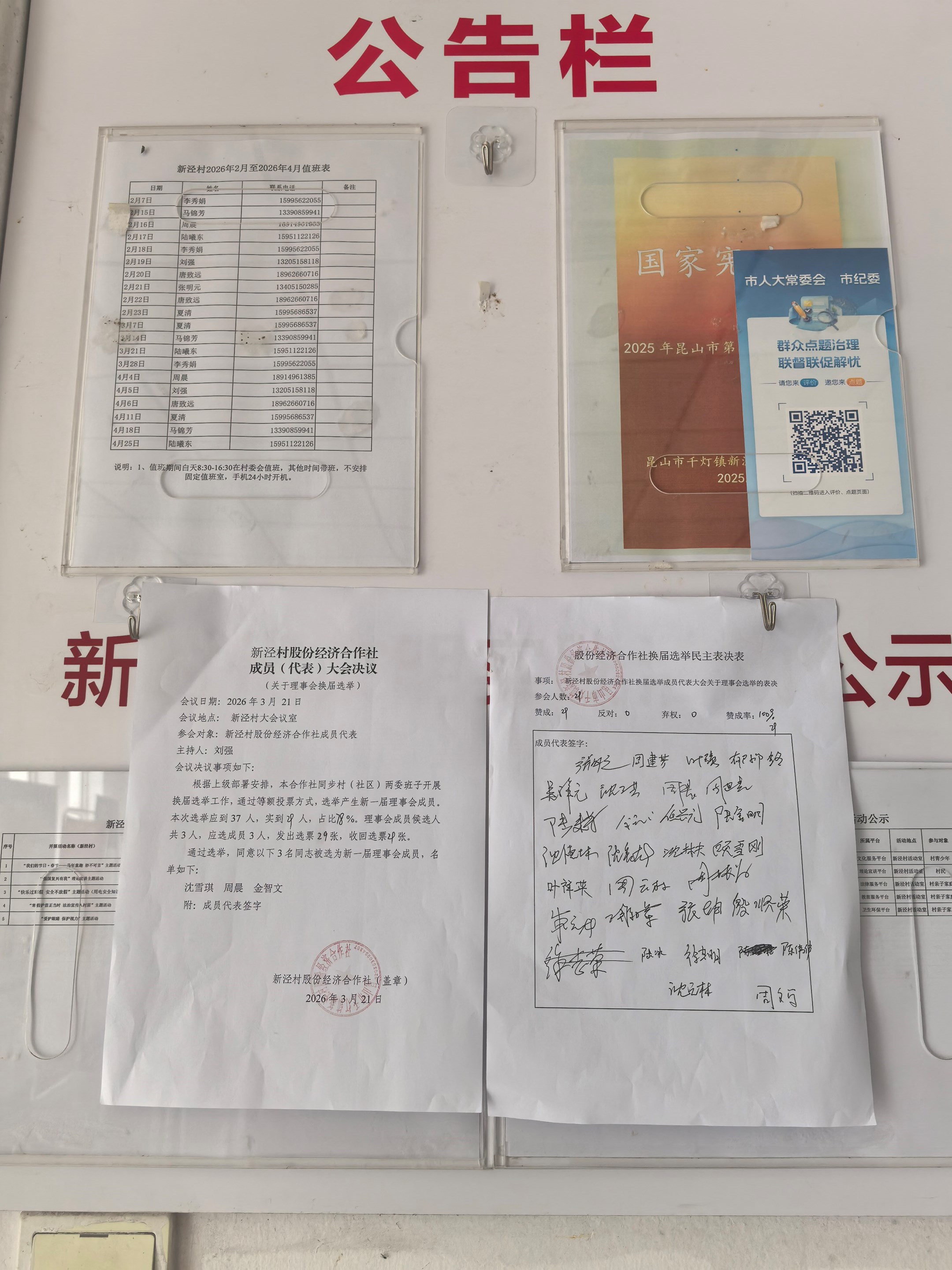 新泾村股份经济合作社关于理事会换届选举结果公示
