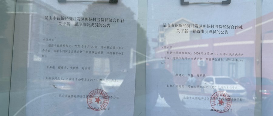 昆山市花桥经济开发区顺扬村股份经济合作社理事会监事会成员换届选举结果公告