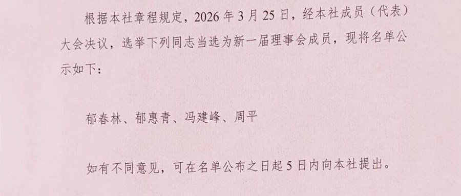 星浜村股份经济合作社新一届理事会成员公告