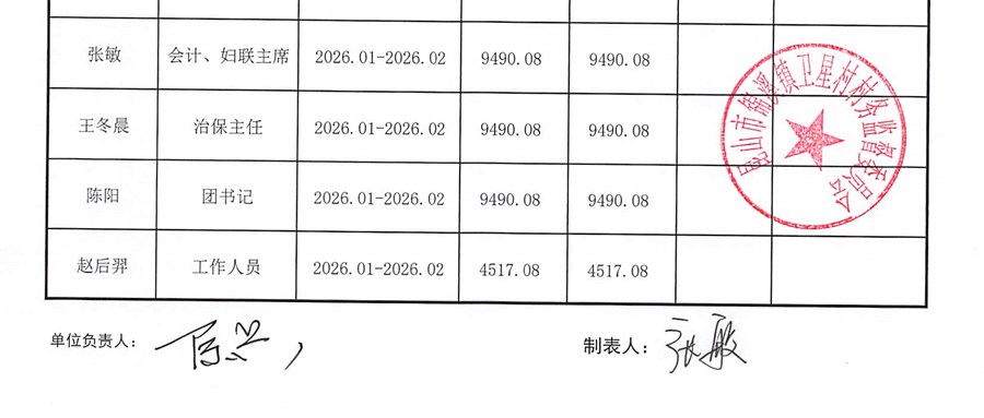 卫星村2026年2月财务公开:村干部基本报酬