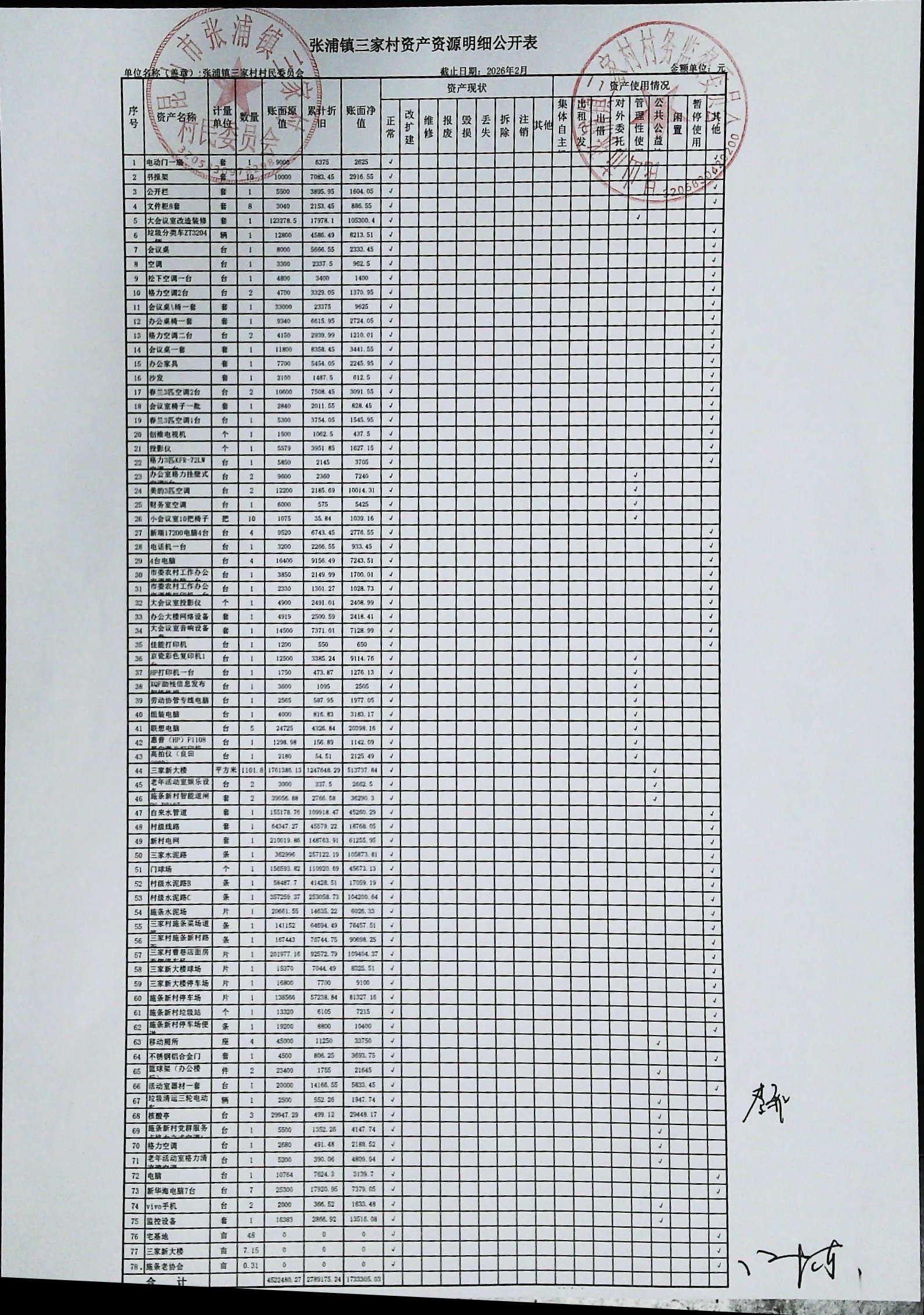 村盖章事项名录
