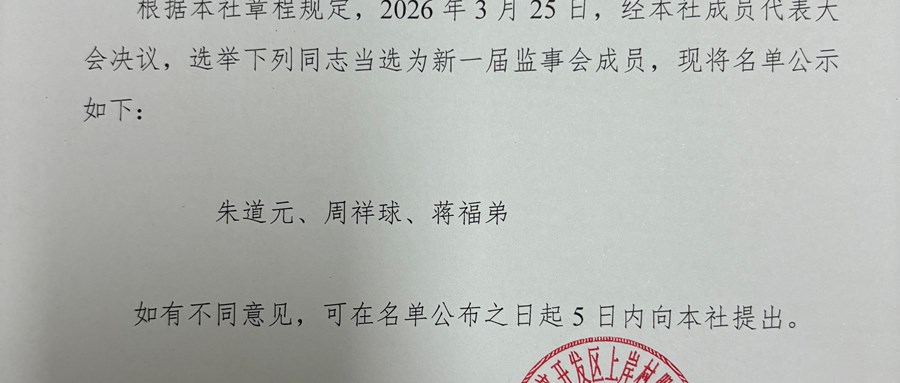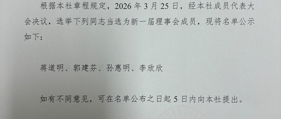 2026年上岸村股份经济合作社 理事会、监事会成员公告