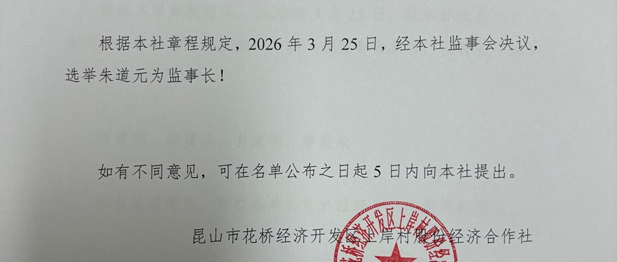 2026年上岸村股份经济合作社 监事长公告