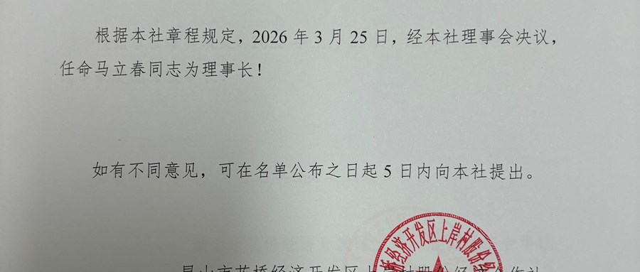 2026年上岸村股份经济合作社理事长公告