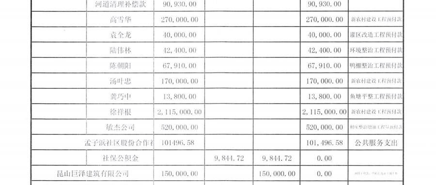 2026年2月财务公开(村级定期公开)
