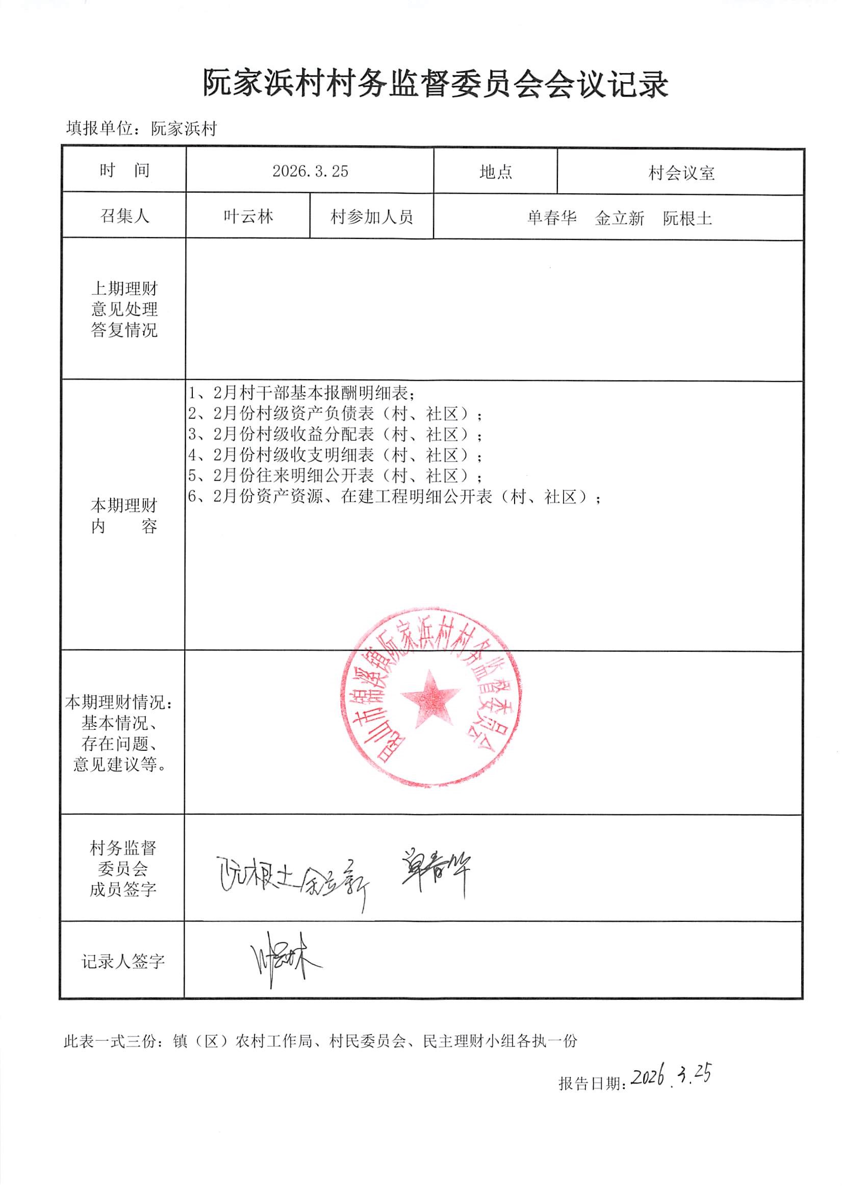2026年3月村务监督委员会会议记录