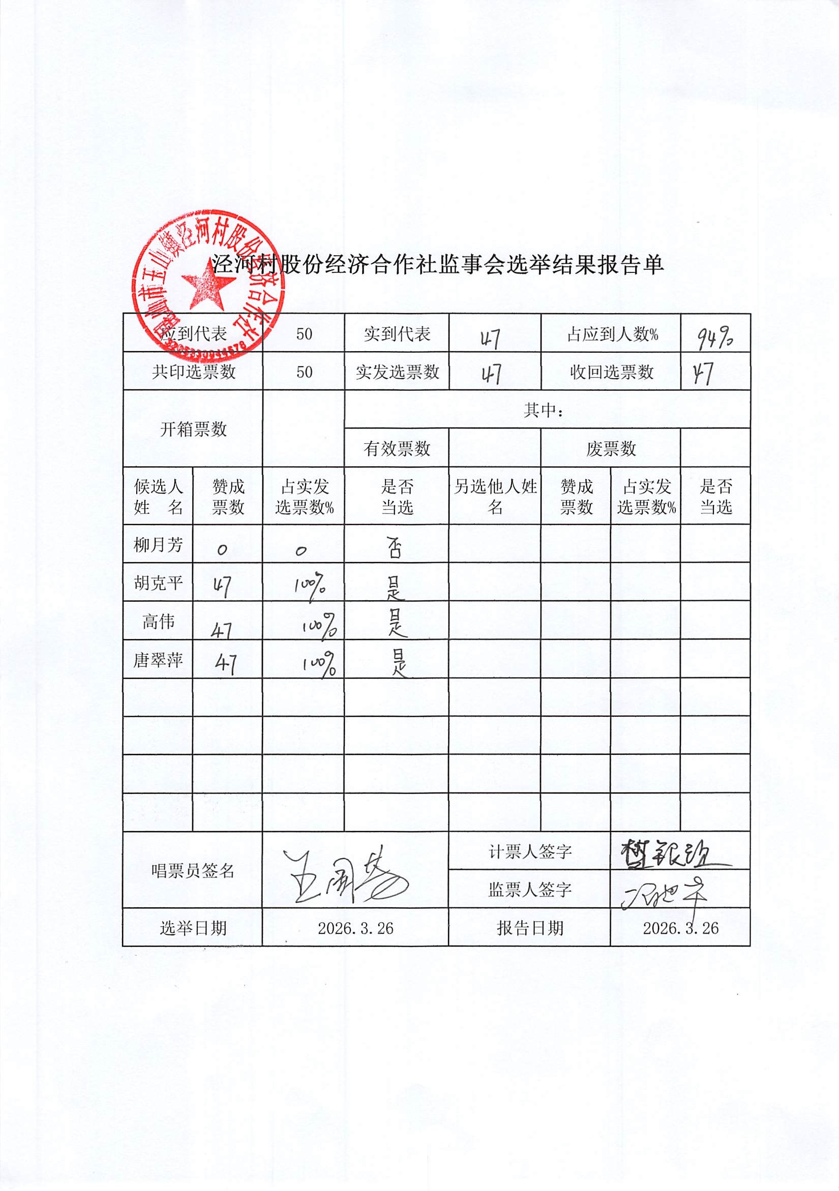 泾河村股份经济合作社换届选举(选举新一届理事会、监事会、理事长、监事长)