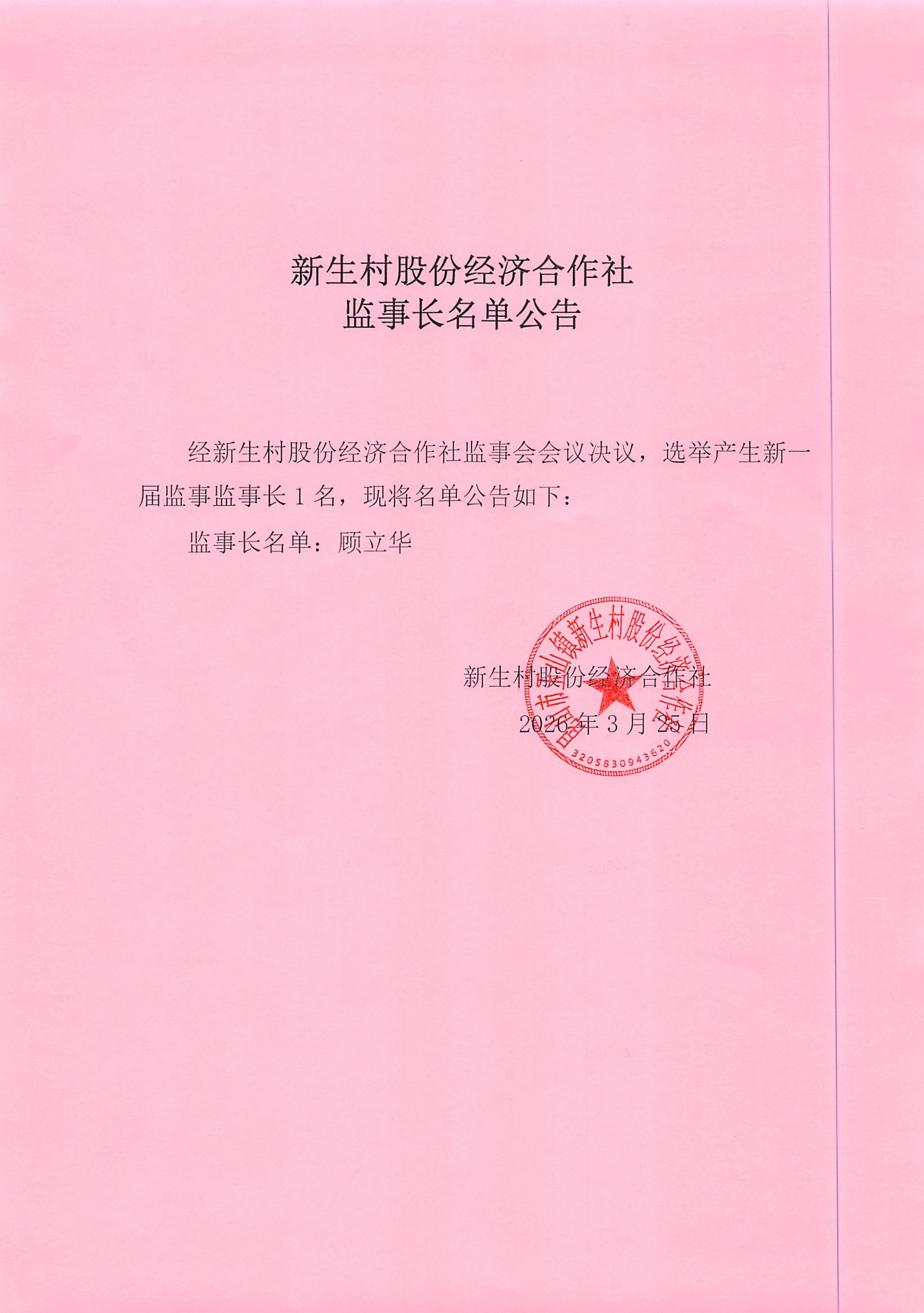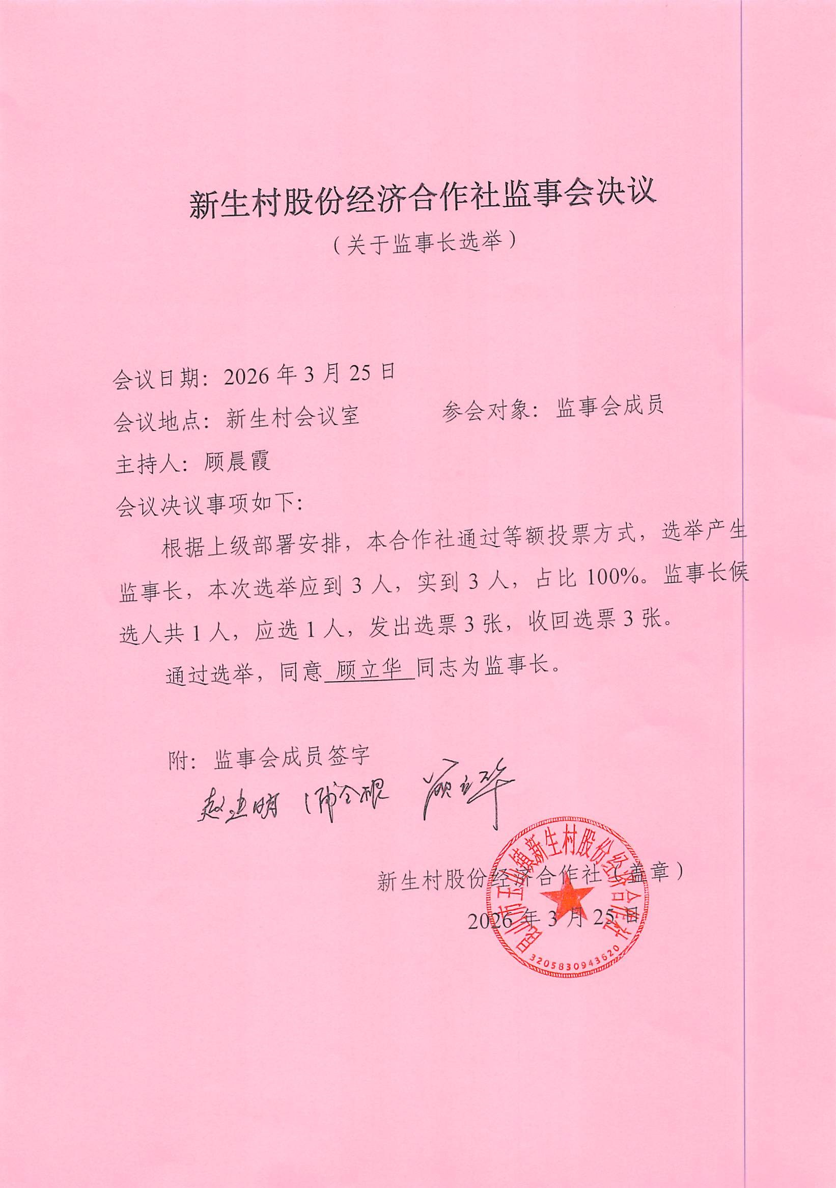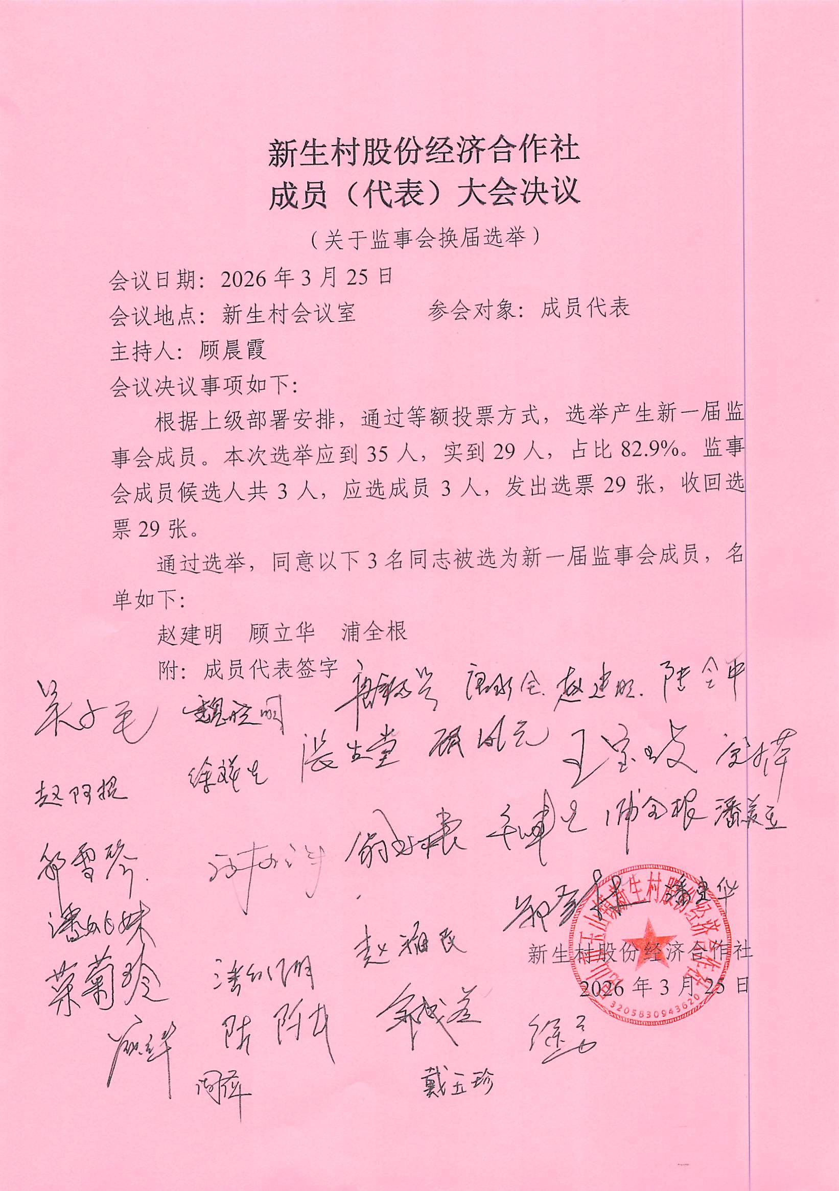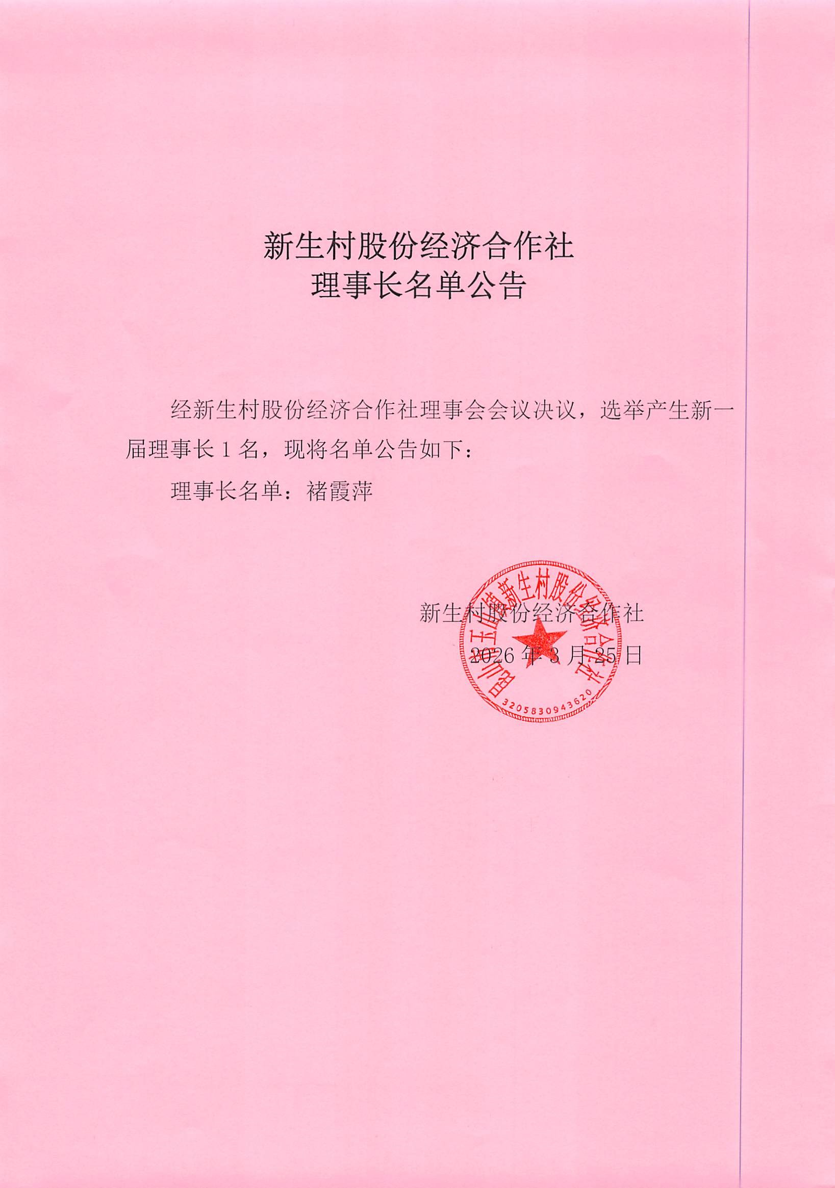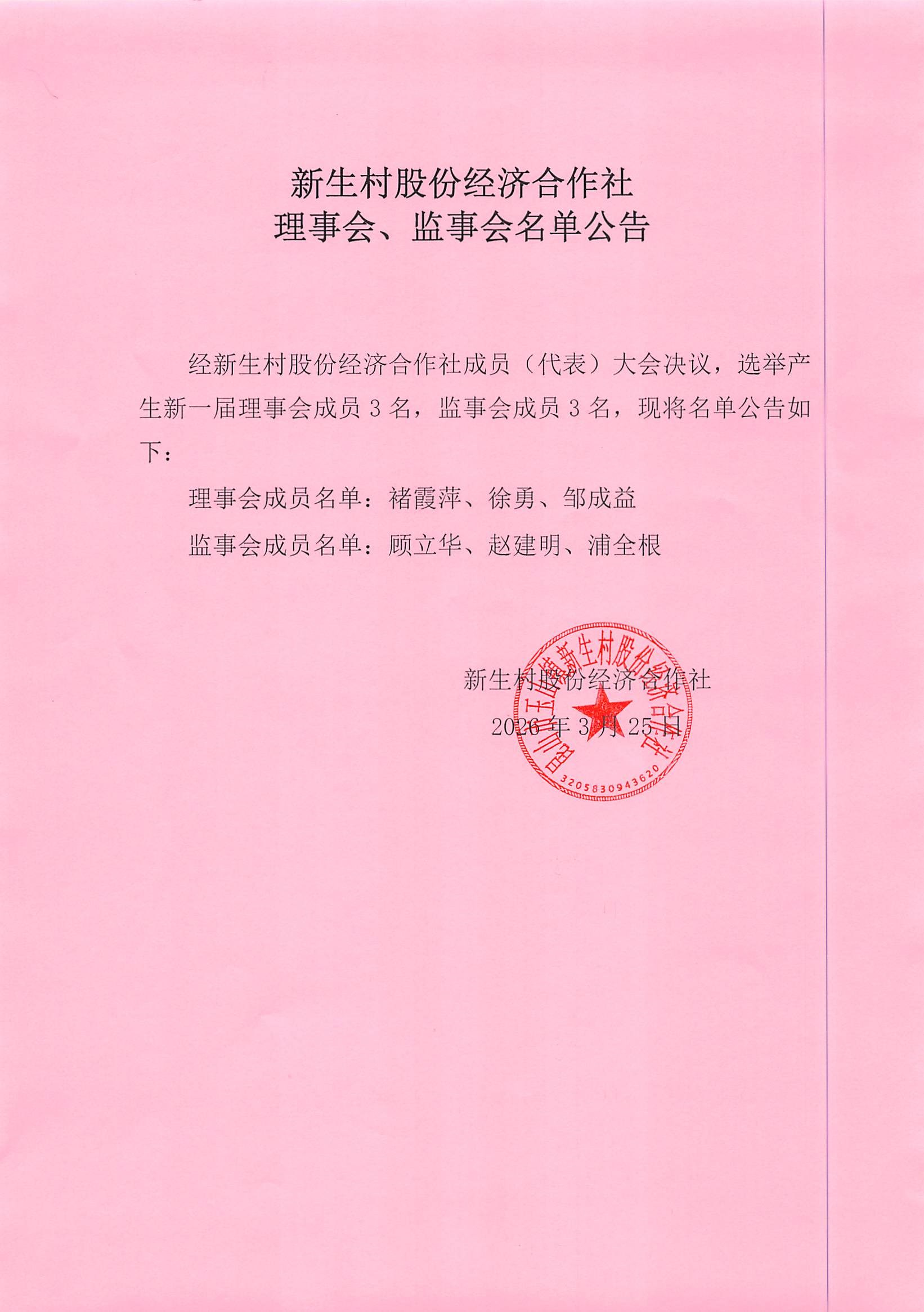 新生村股份经济合作社换届选举决议、名单、报告单公告