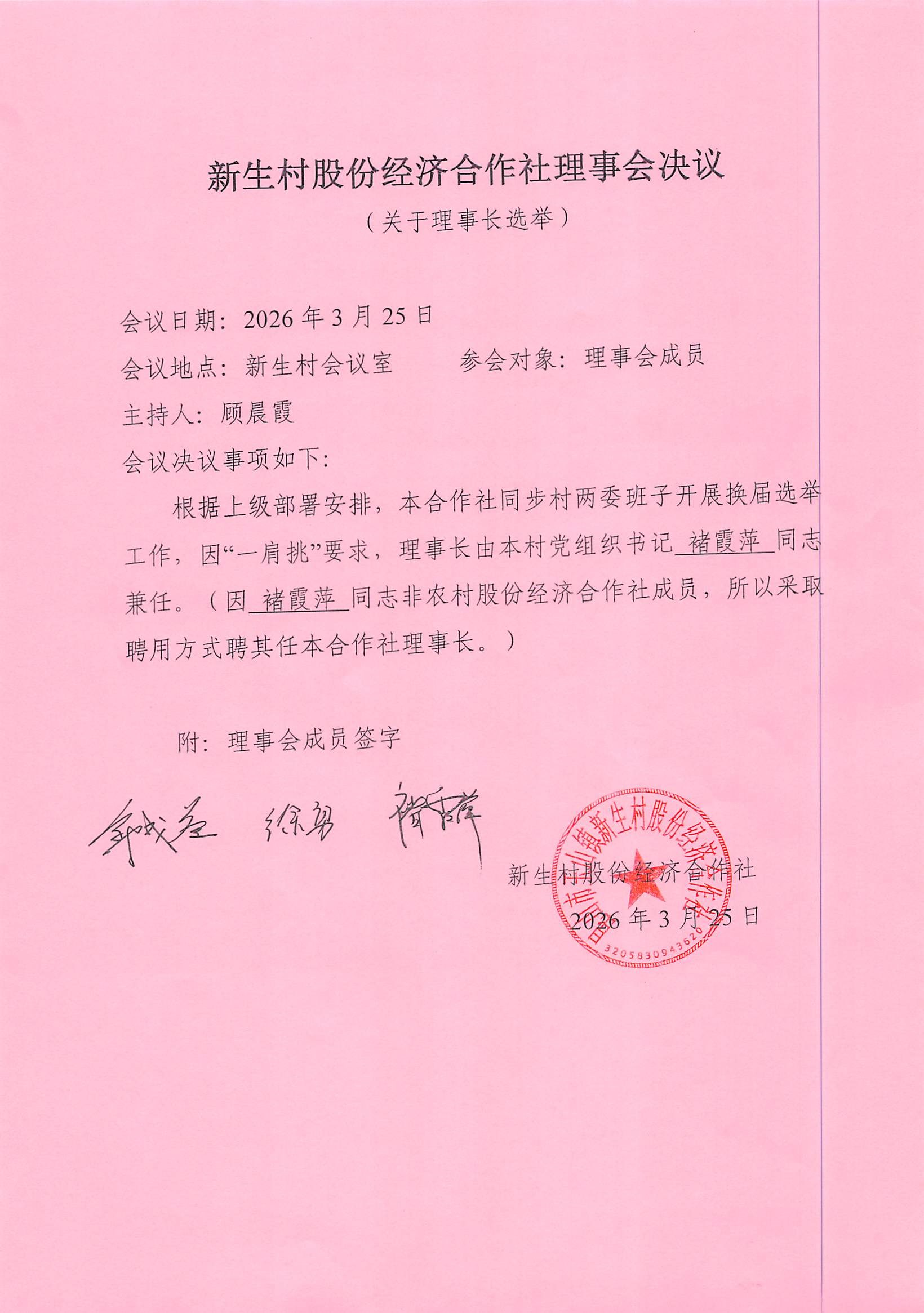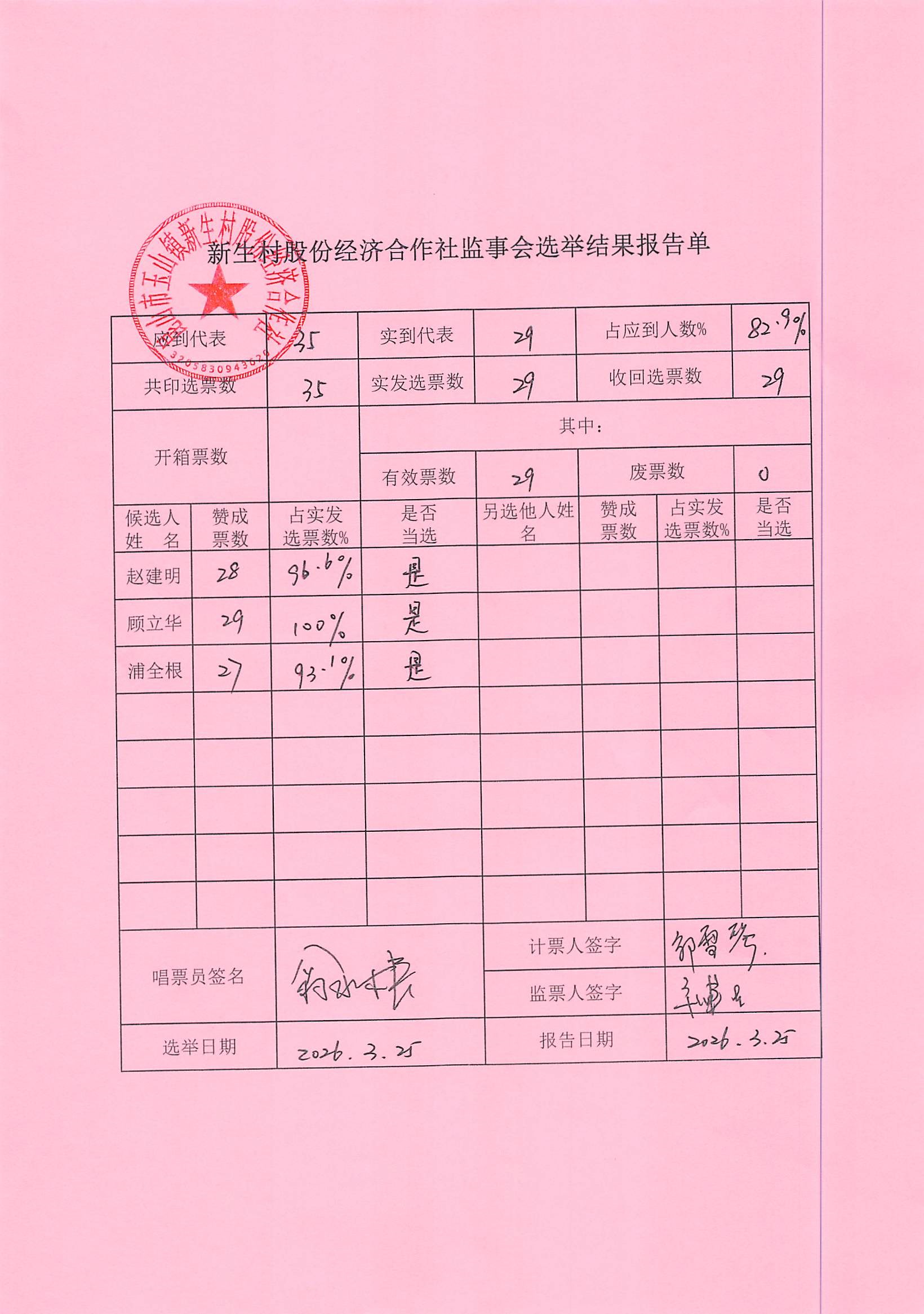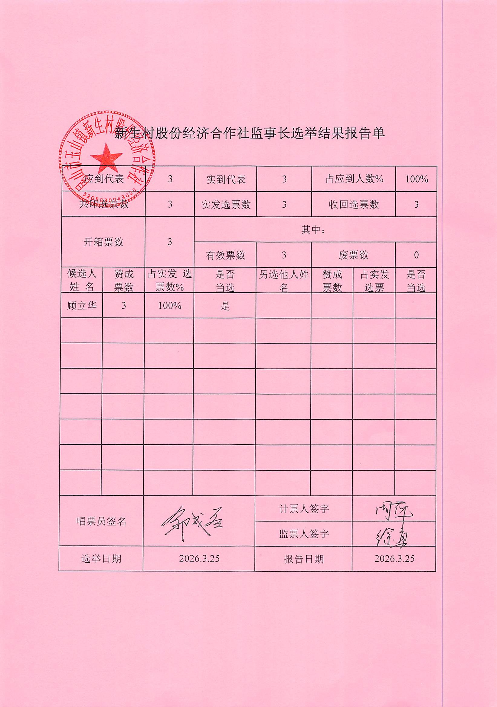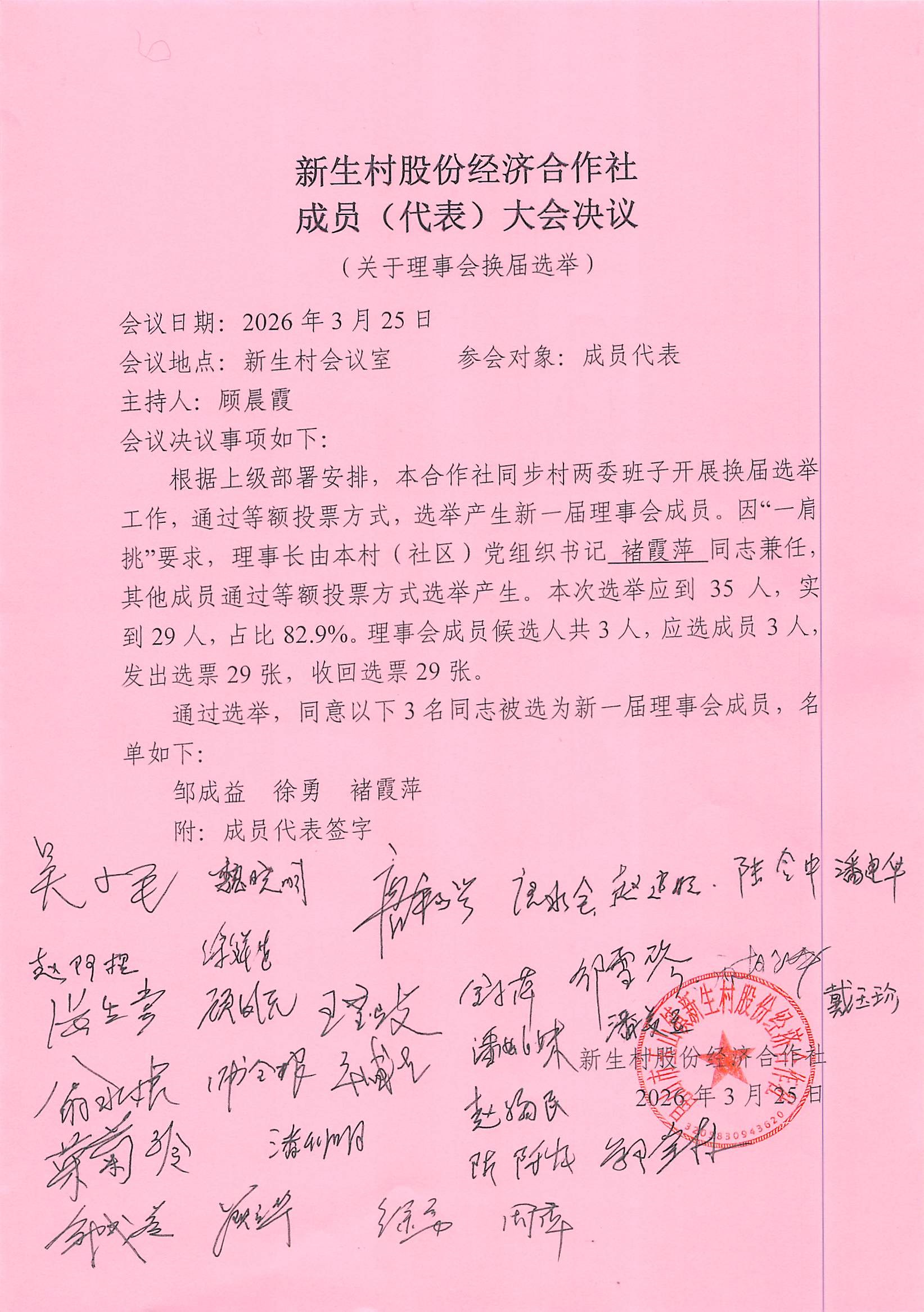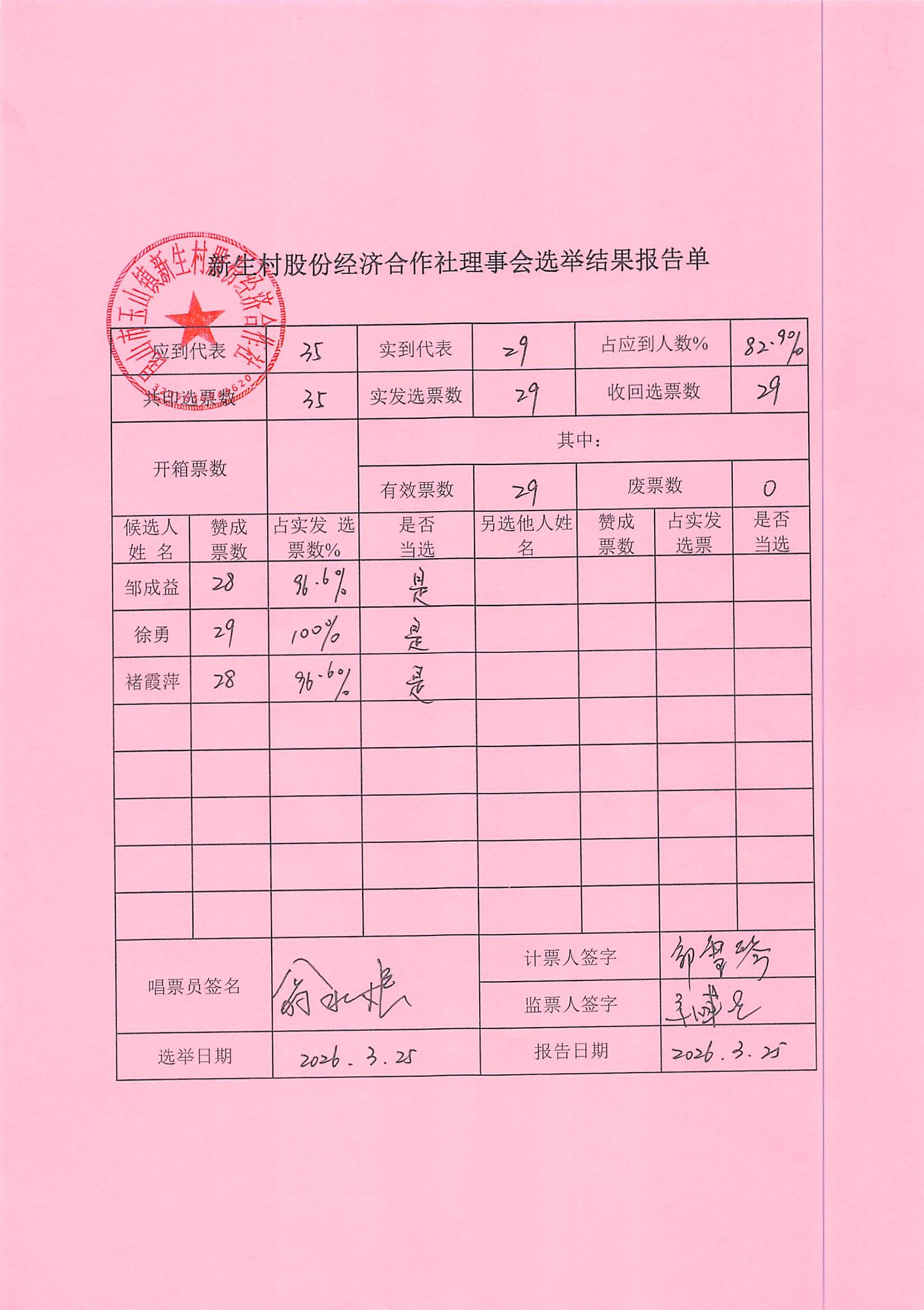 新生村股份经济合作社换届选举决议、名单、报告单公告