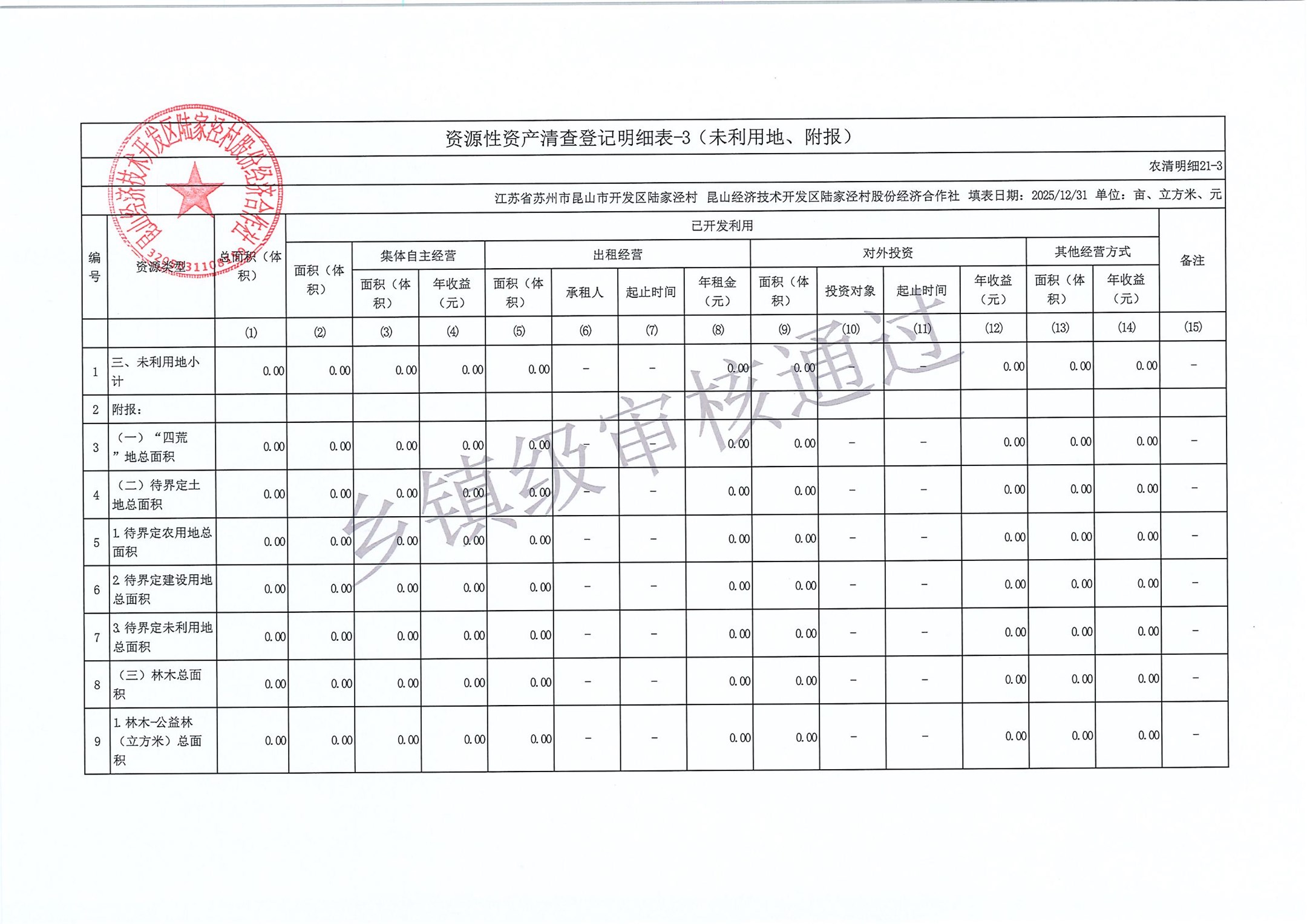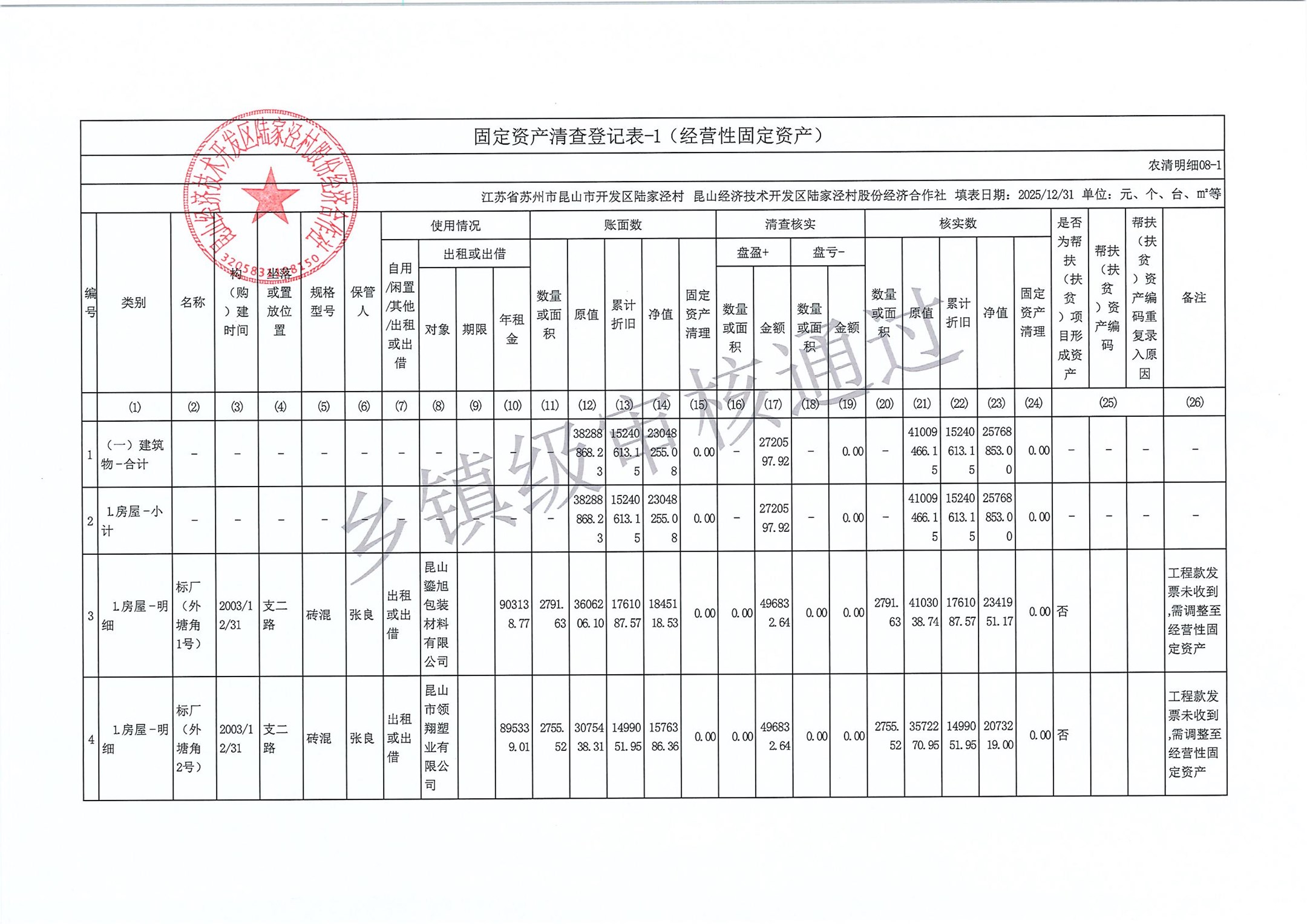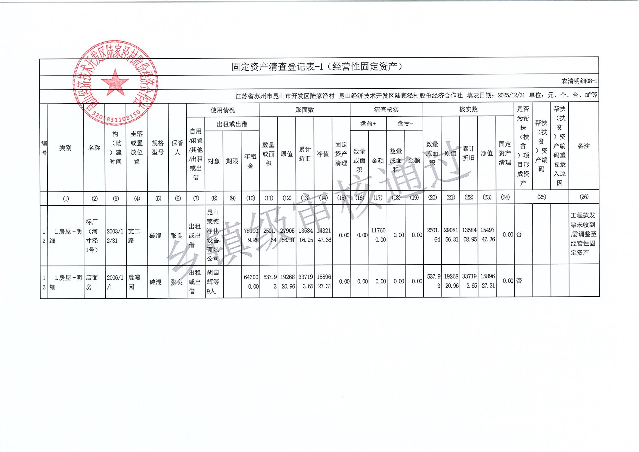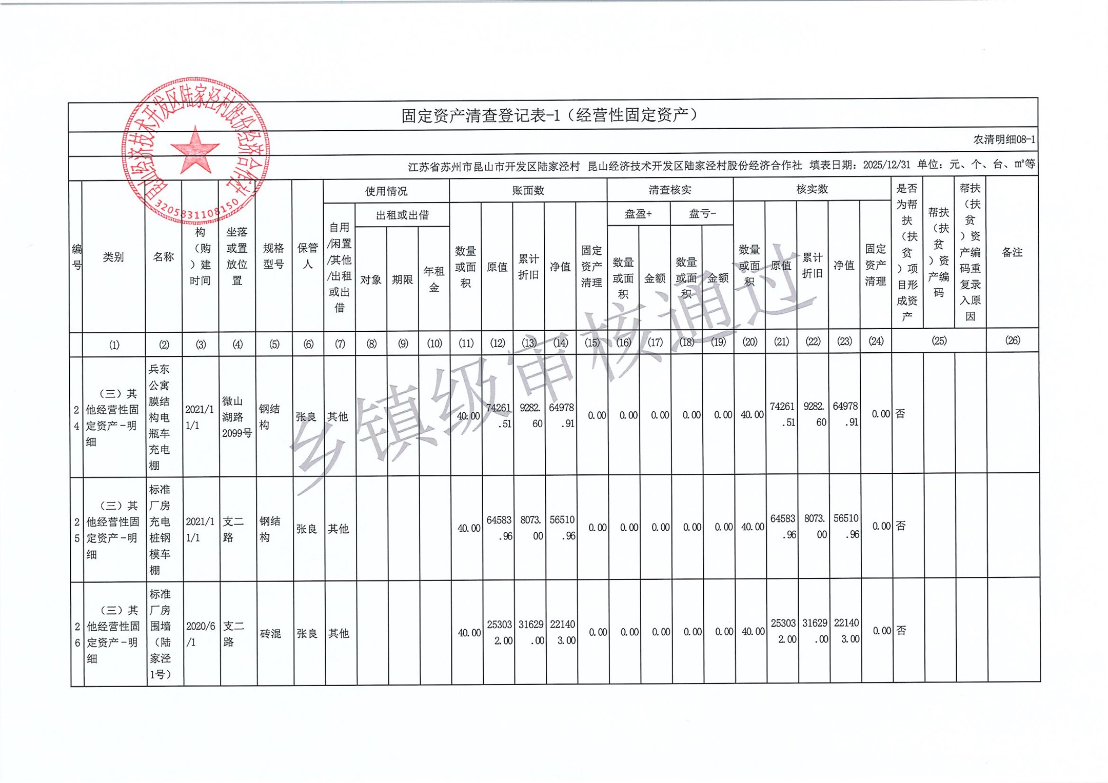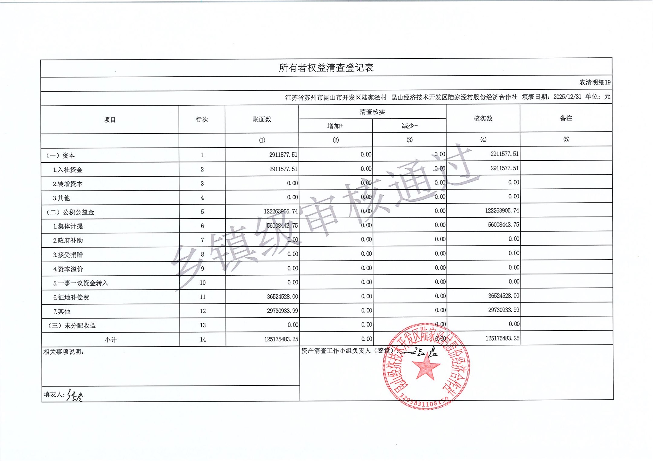 2025年度陆家泾村集体资产清查报表