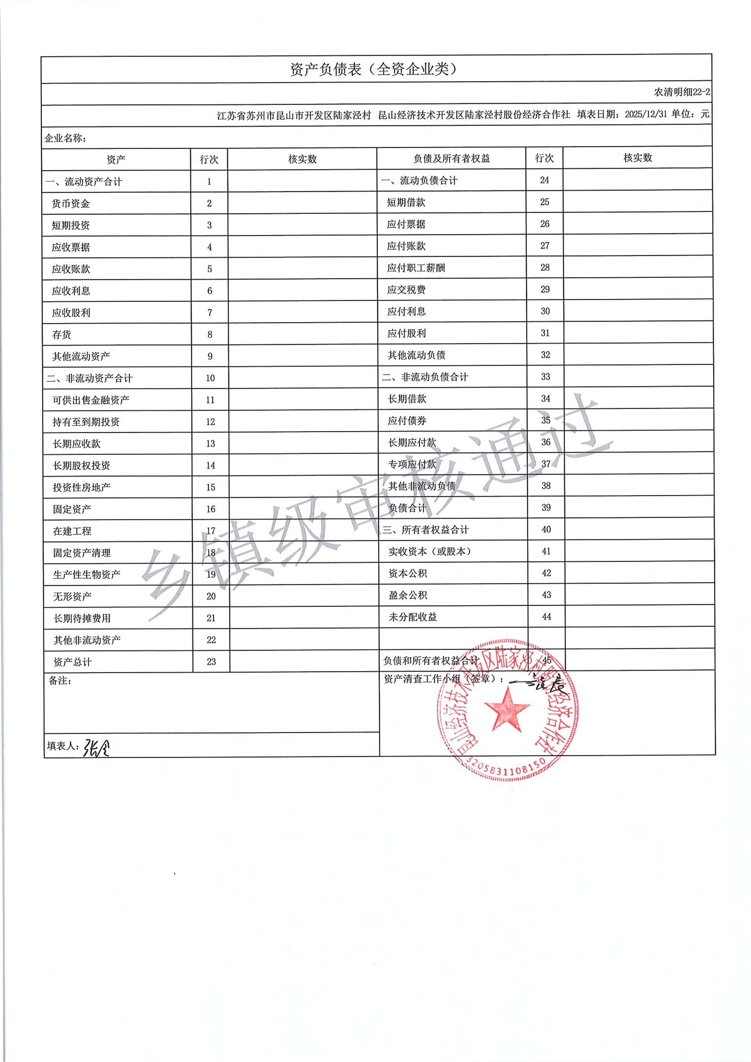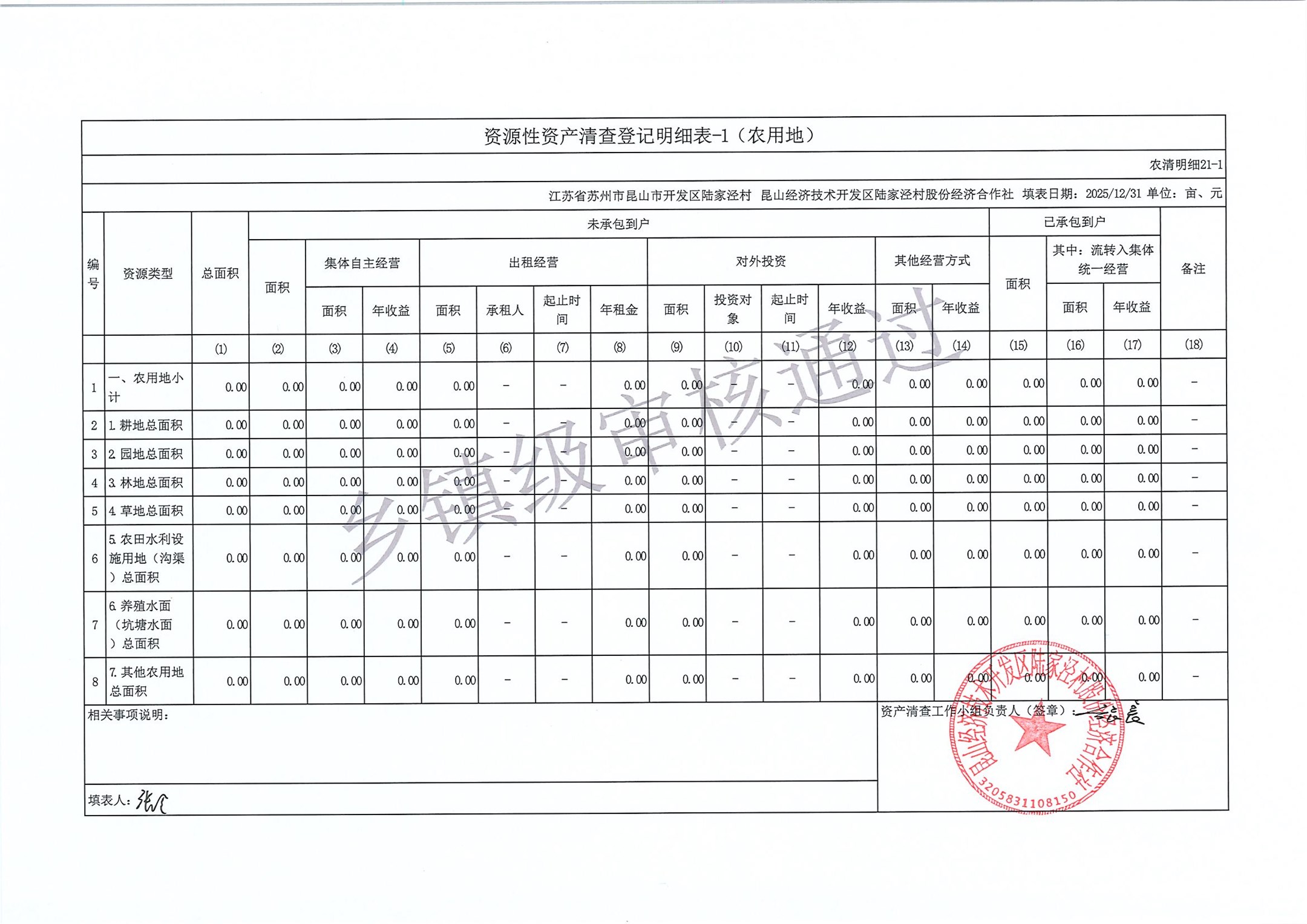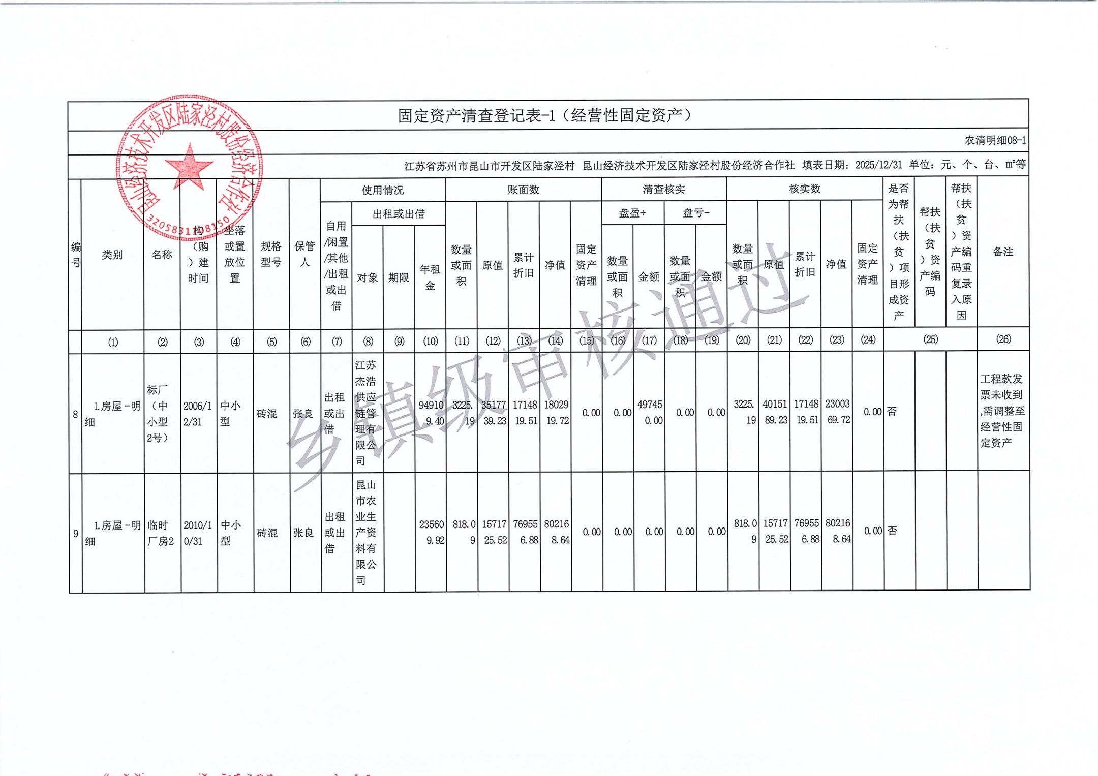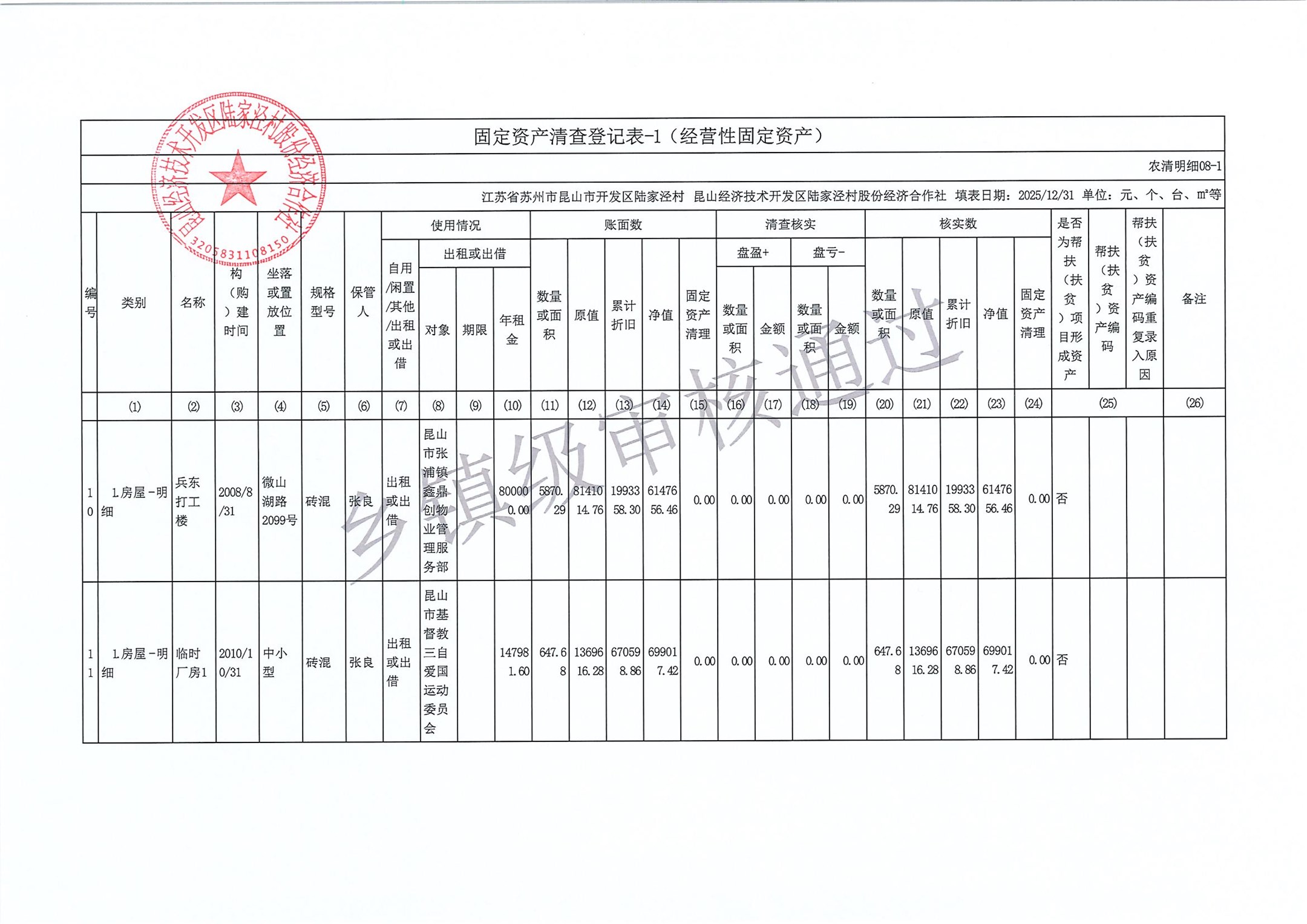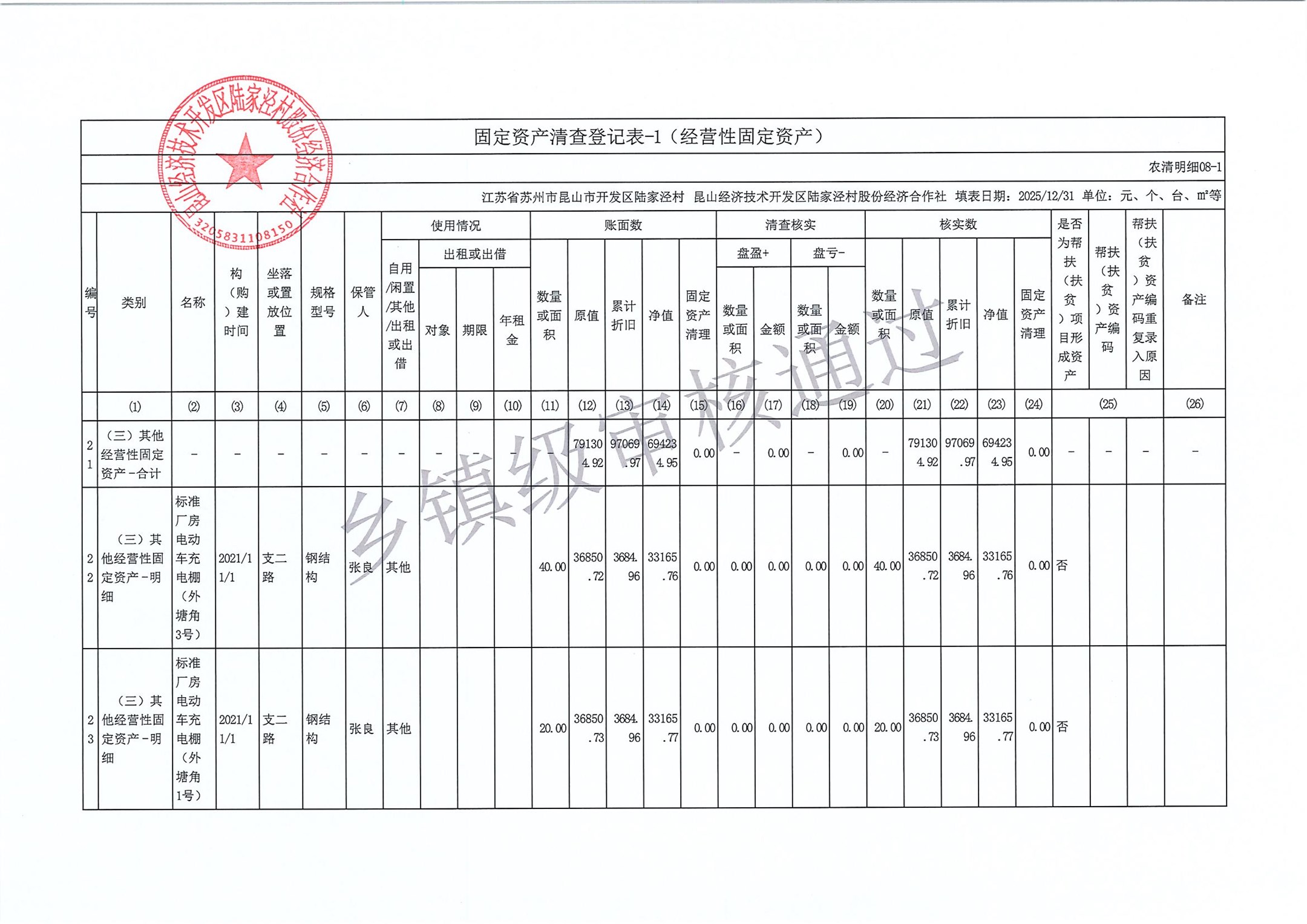 2025年度陆家泾村集体资产清查报表