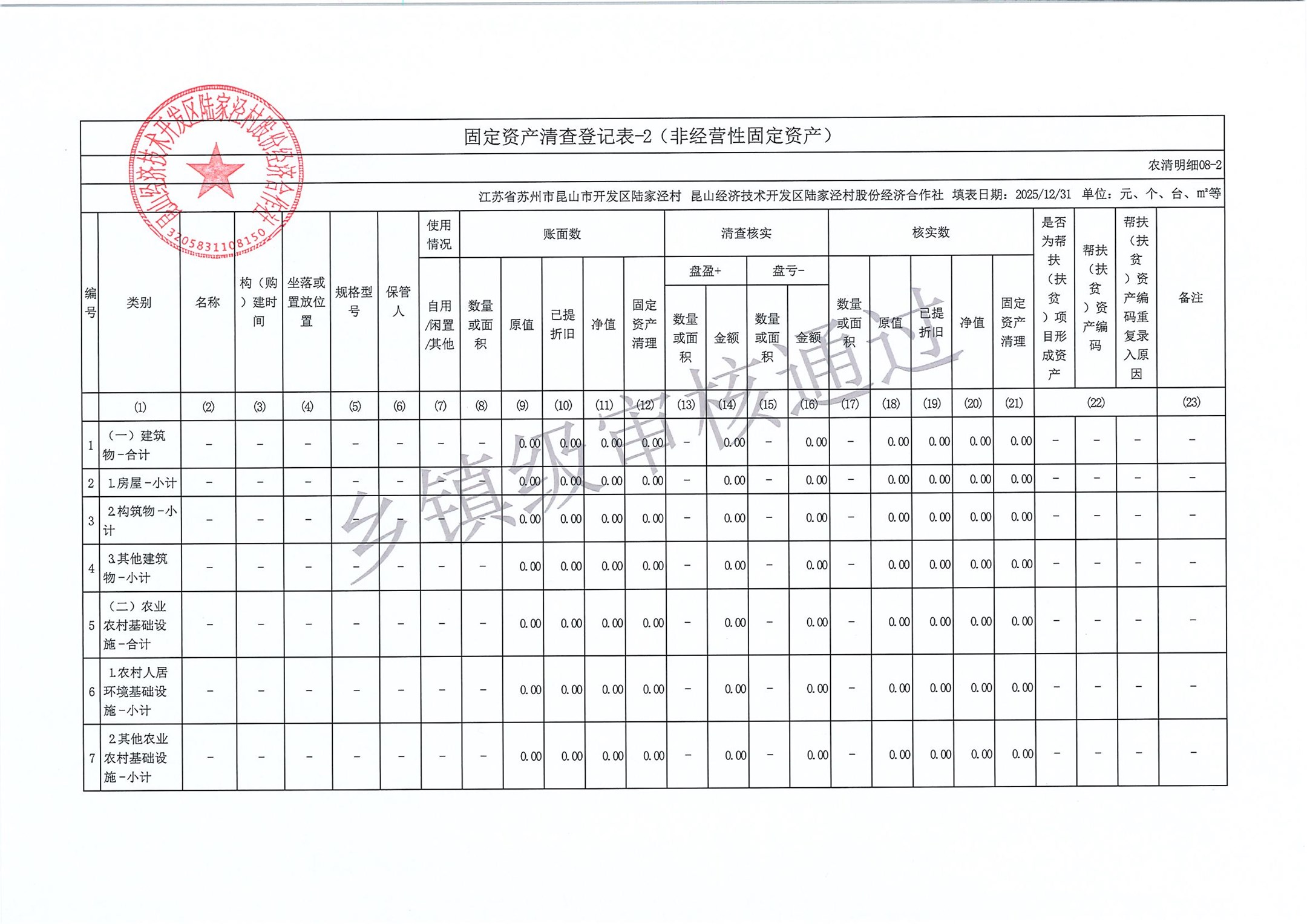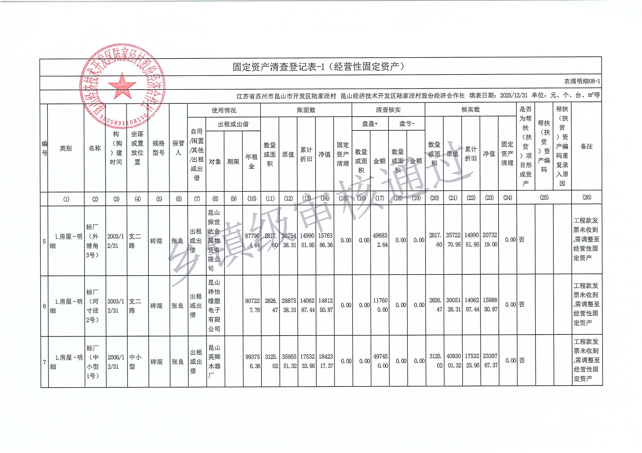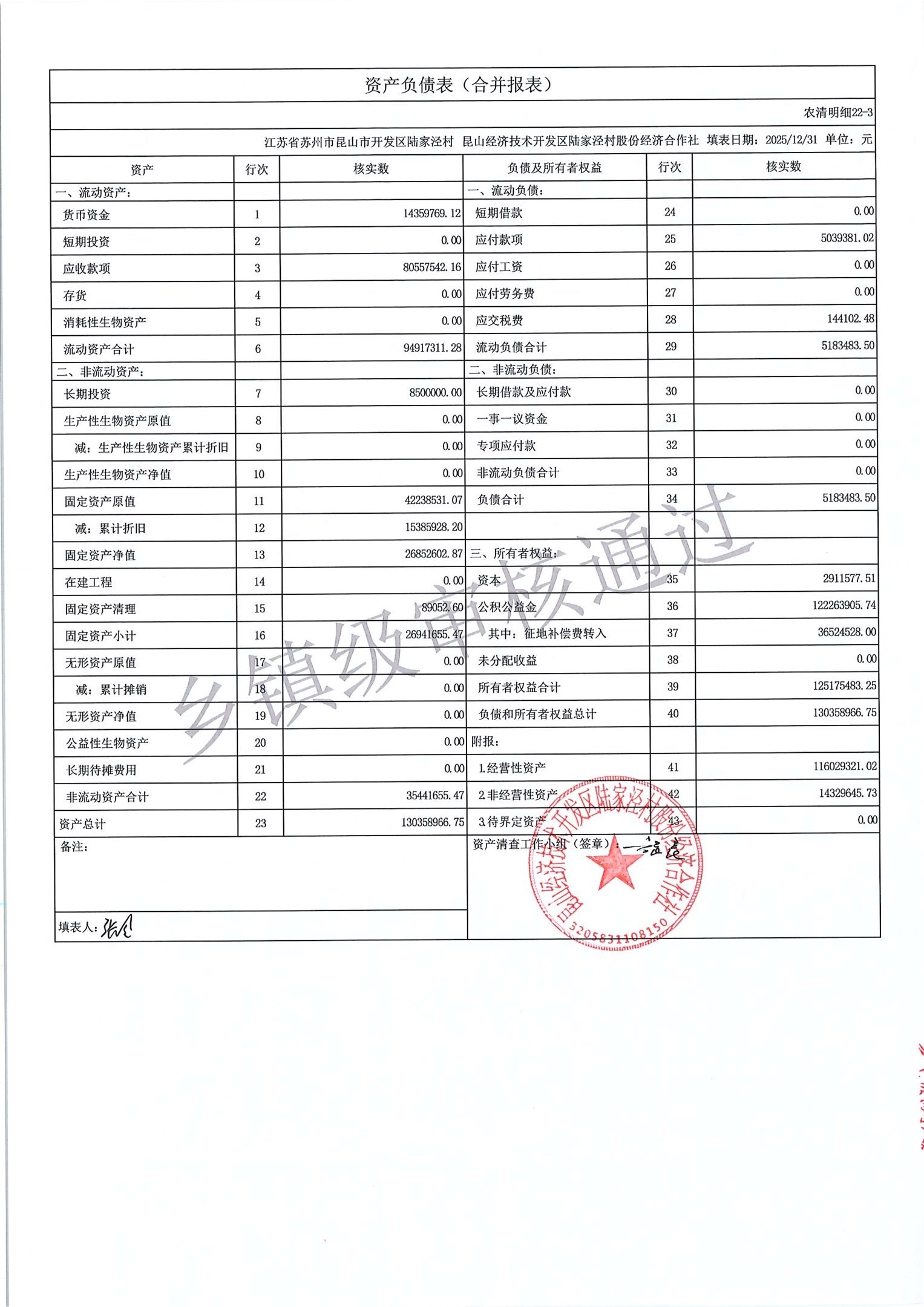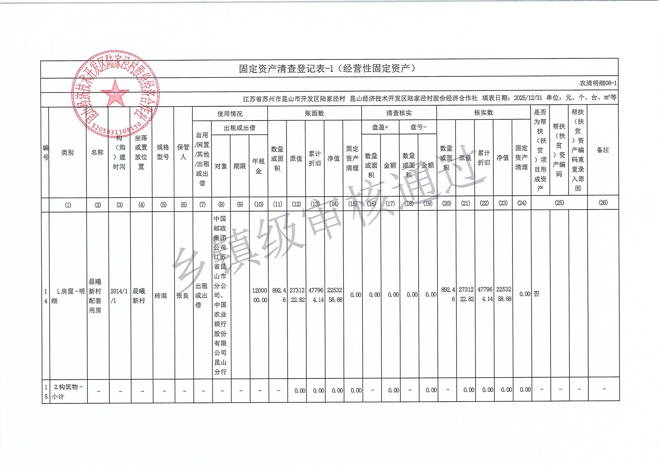 2025年度陆家泾村集体资产清查报表