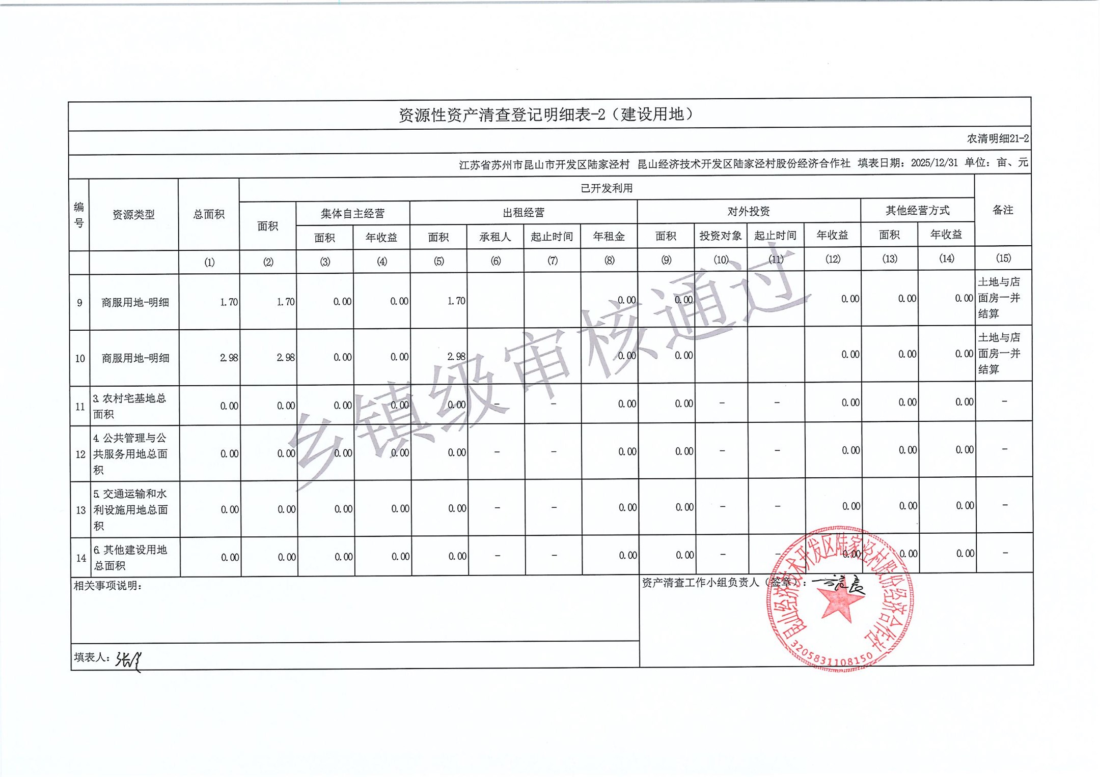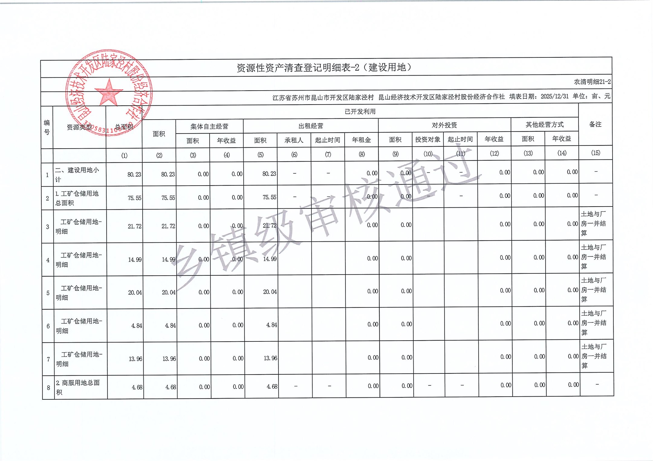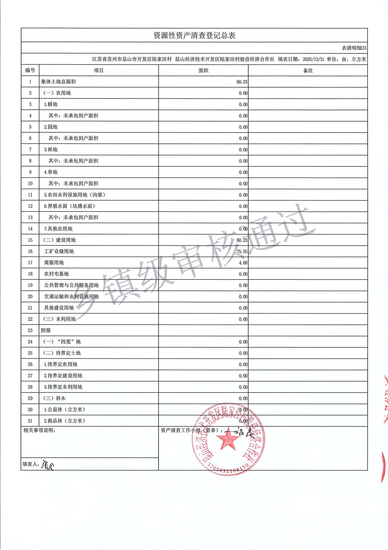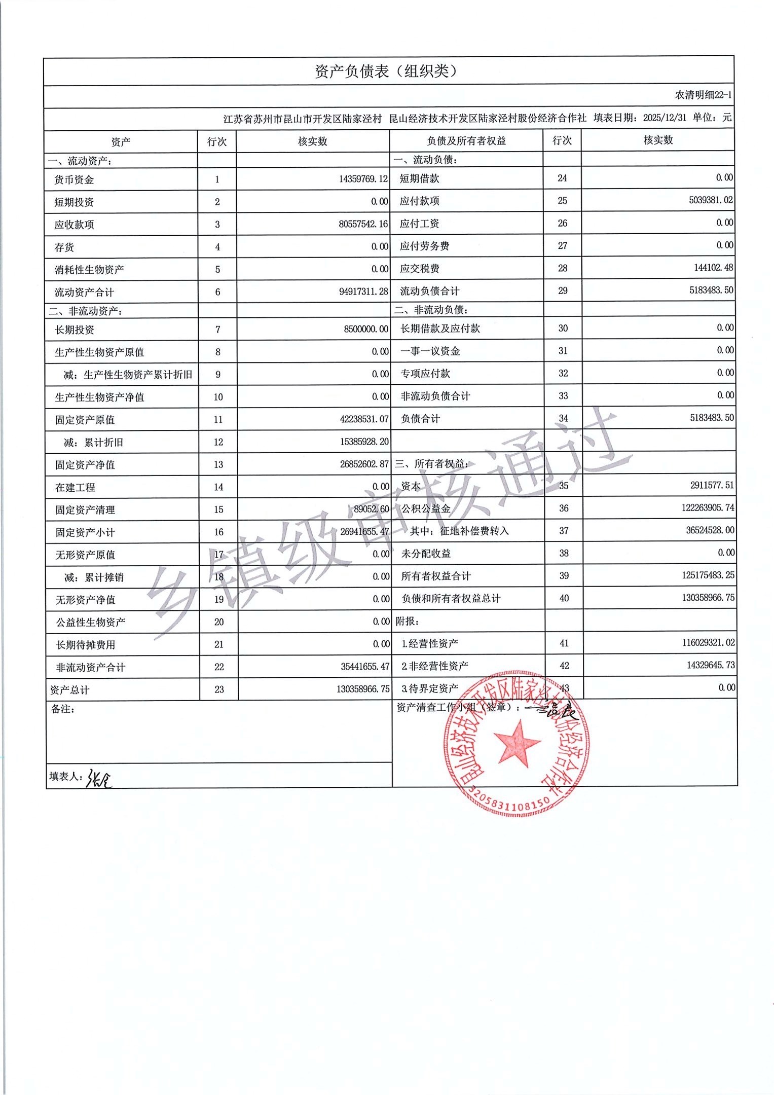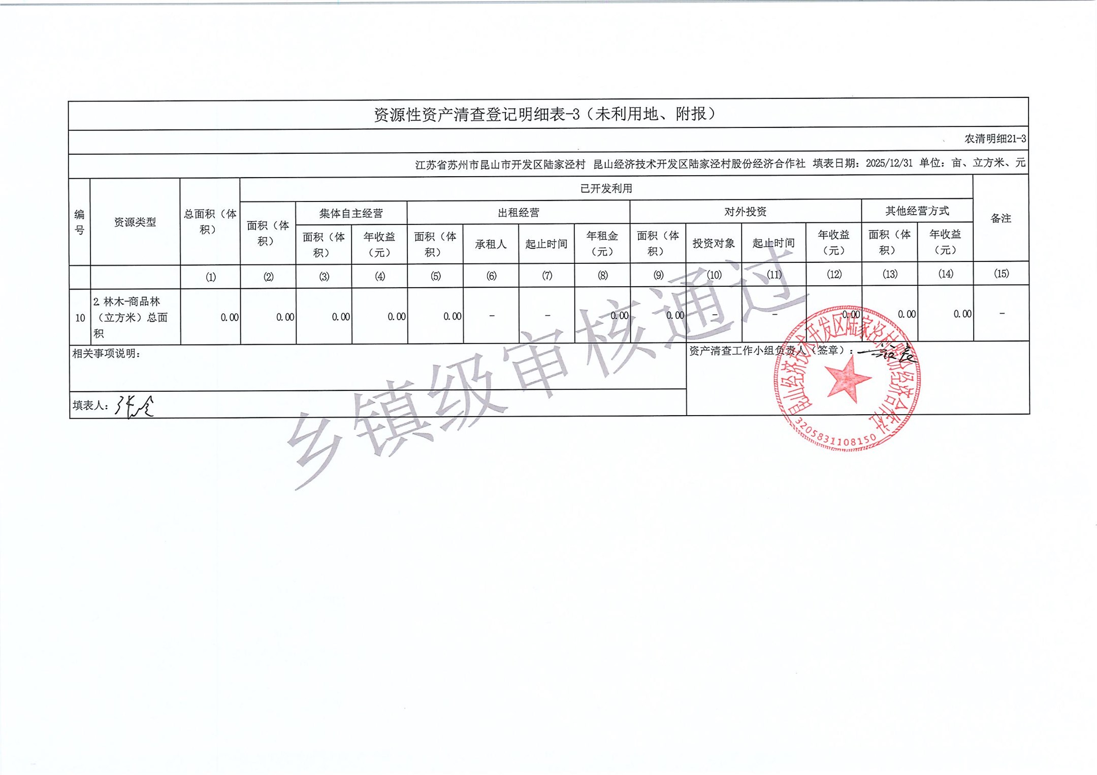2025年度陆家泾村集体资产清查报表