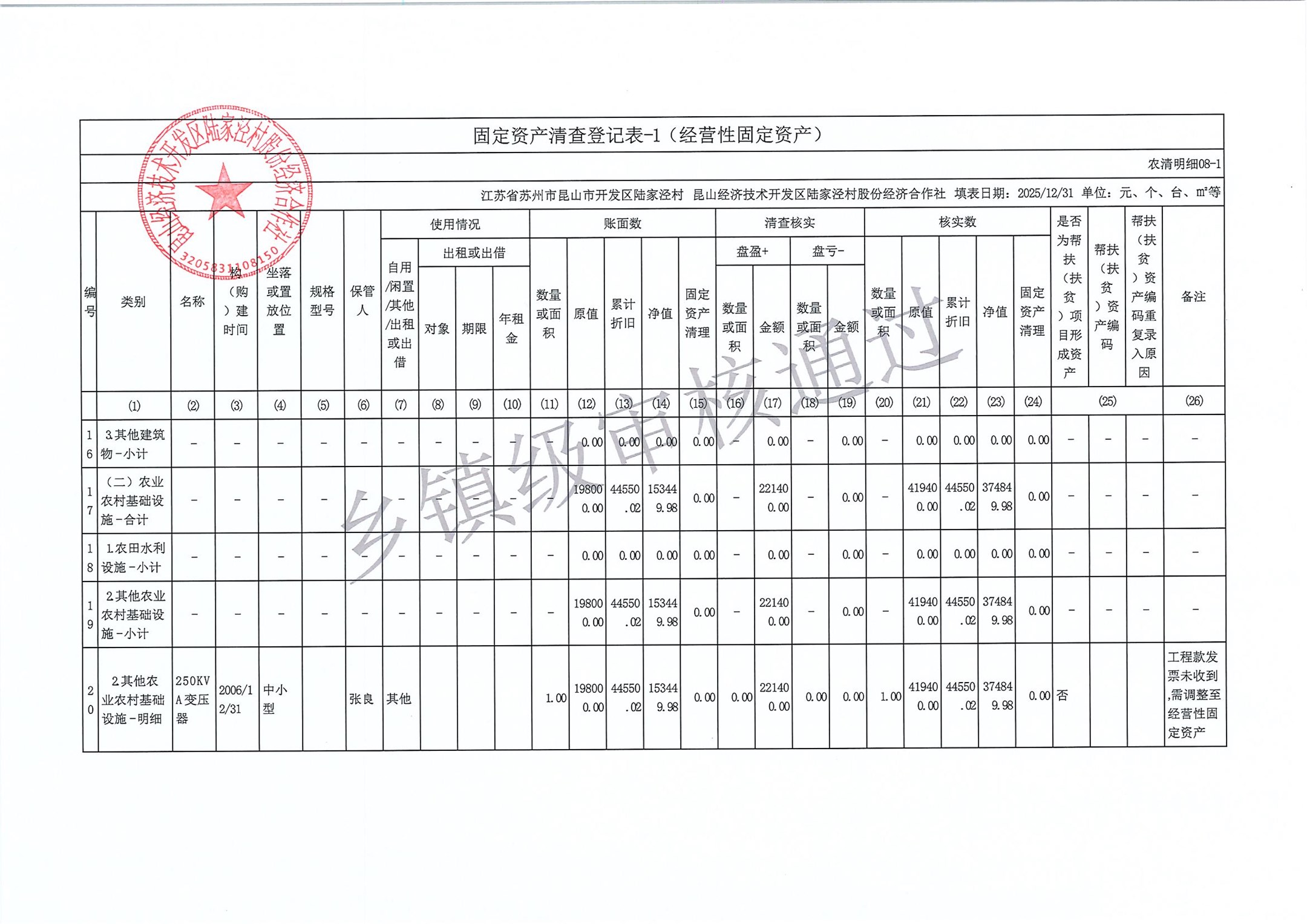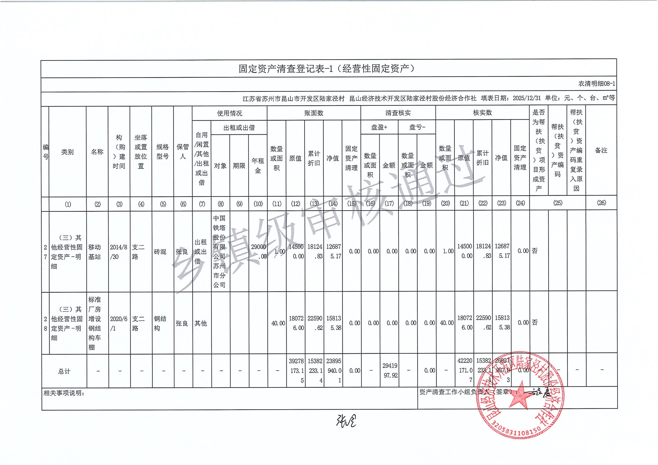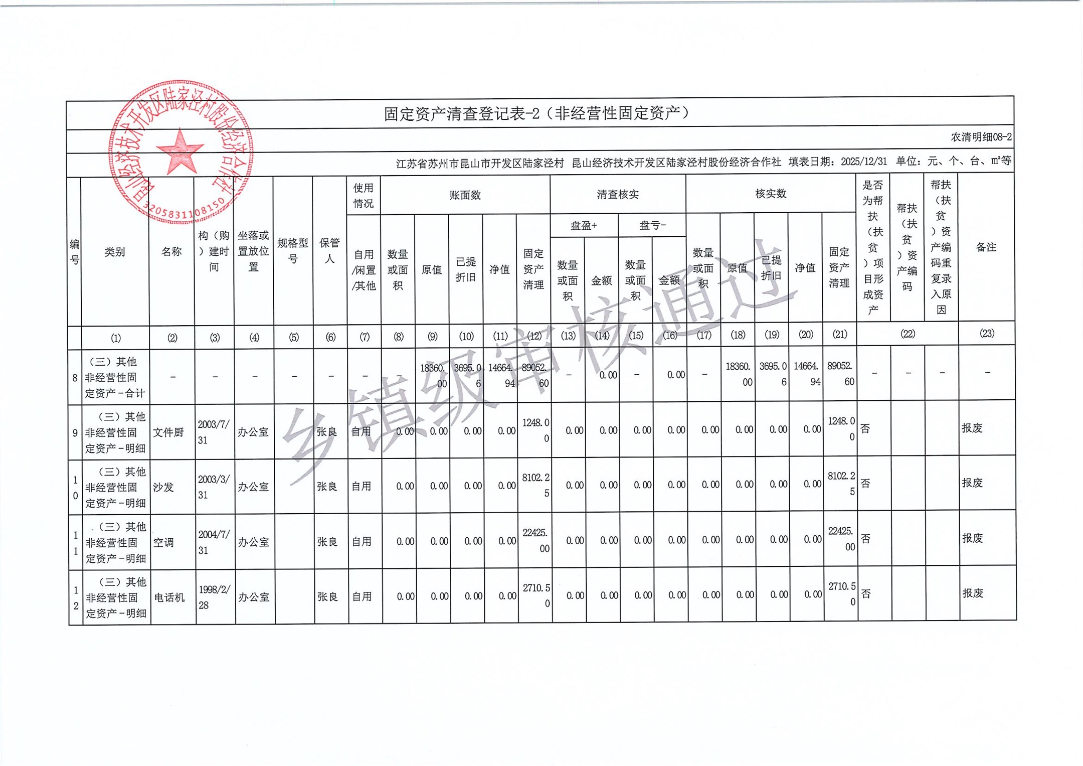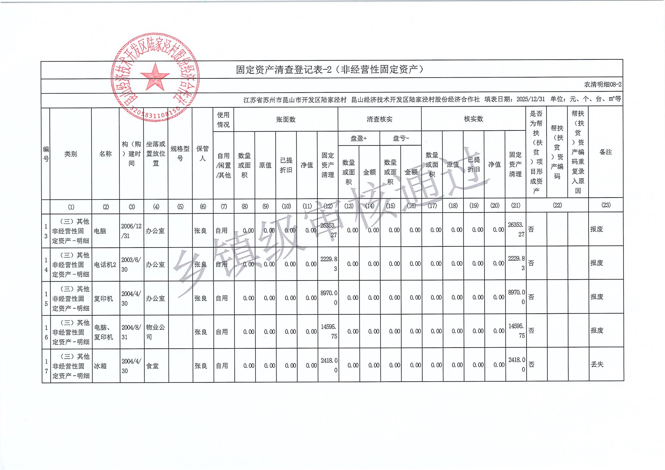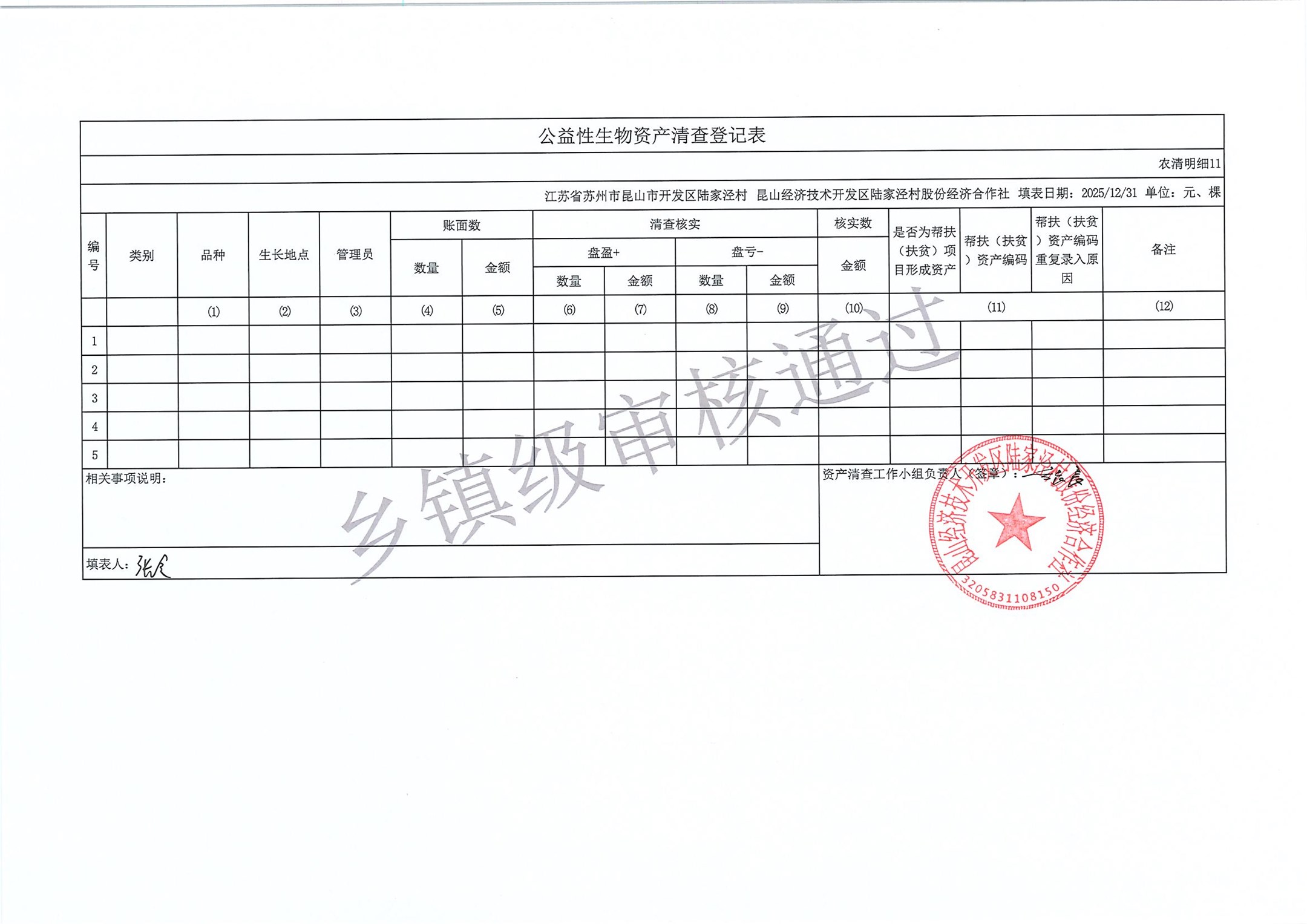 2025年度陆家泾村集体资产清查报表