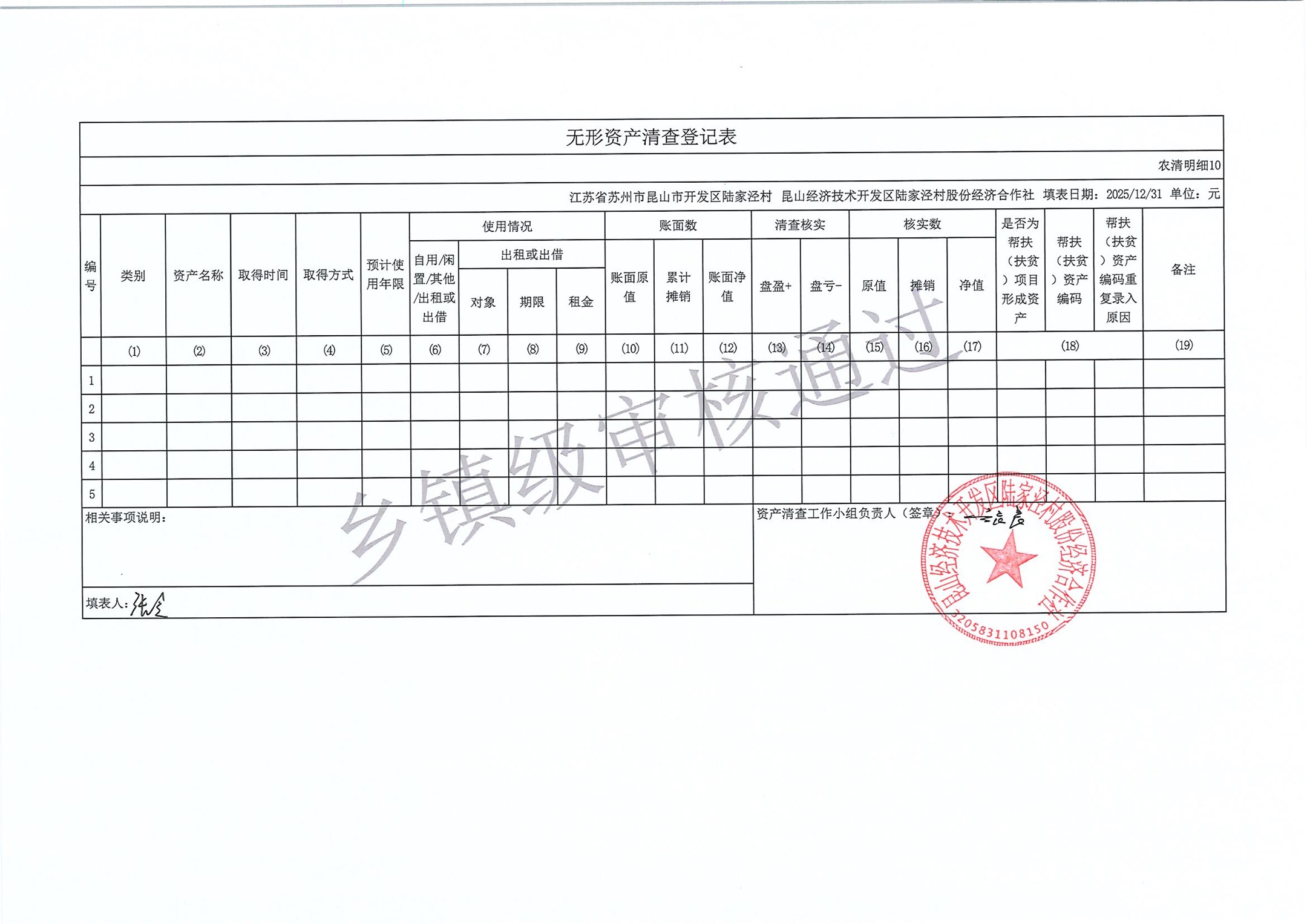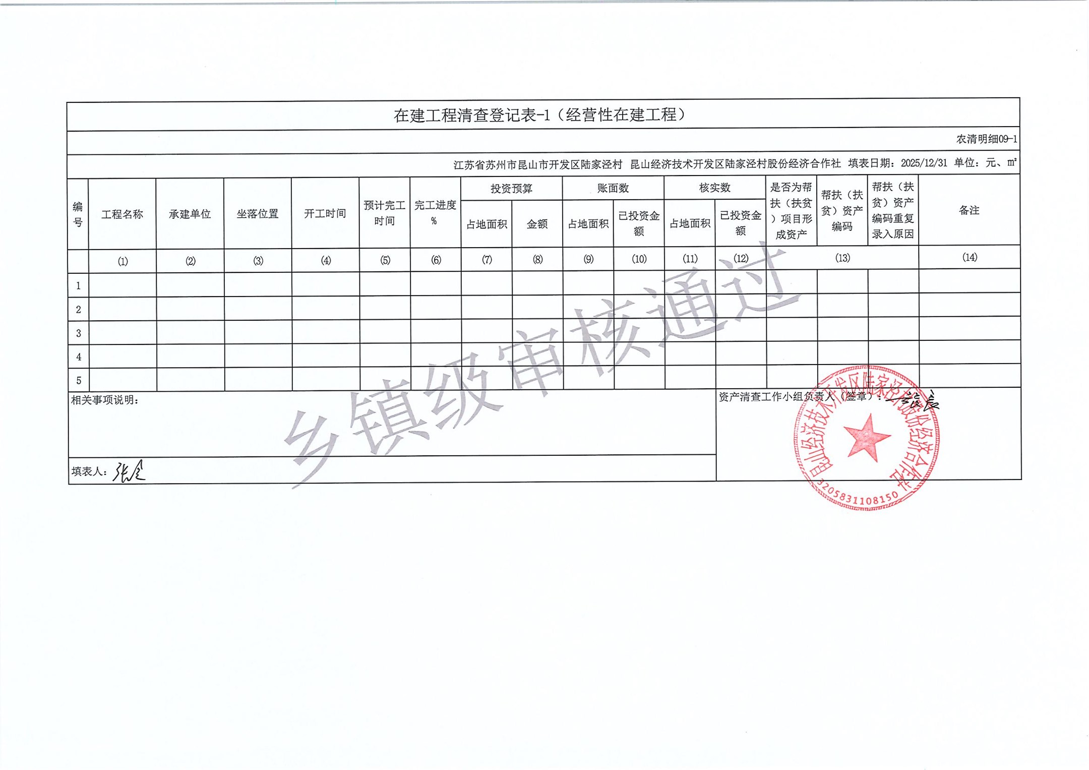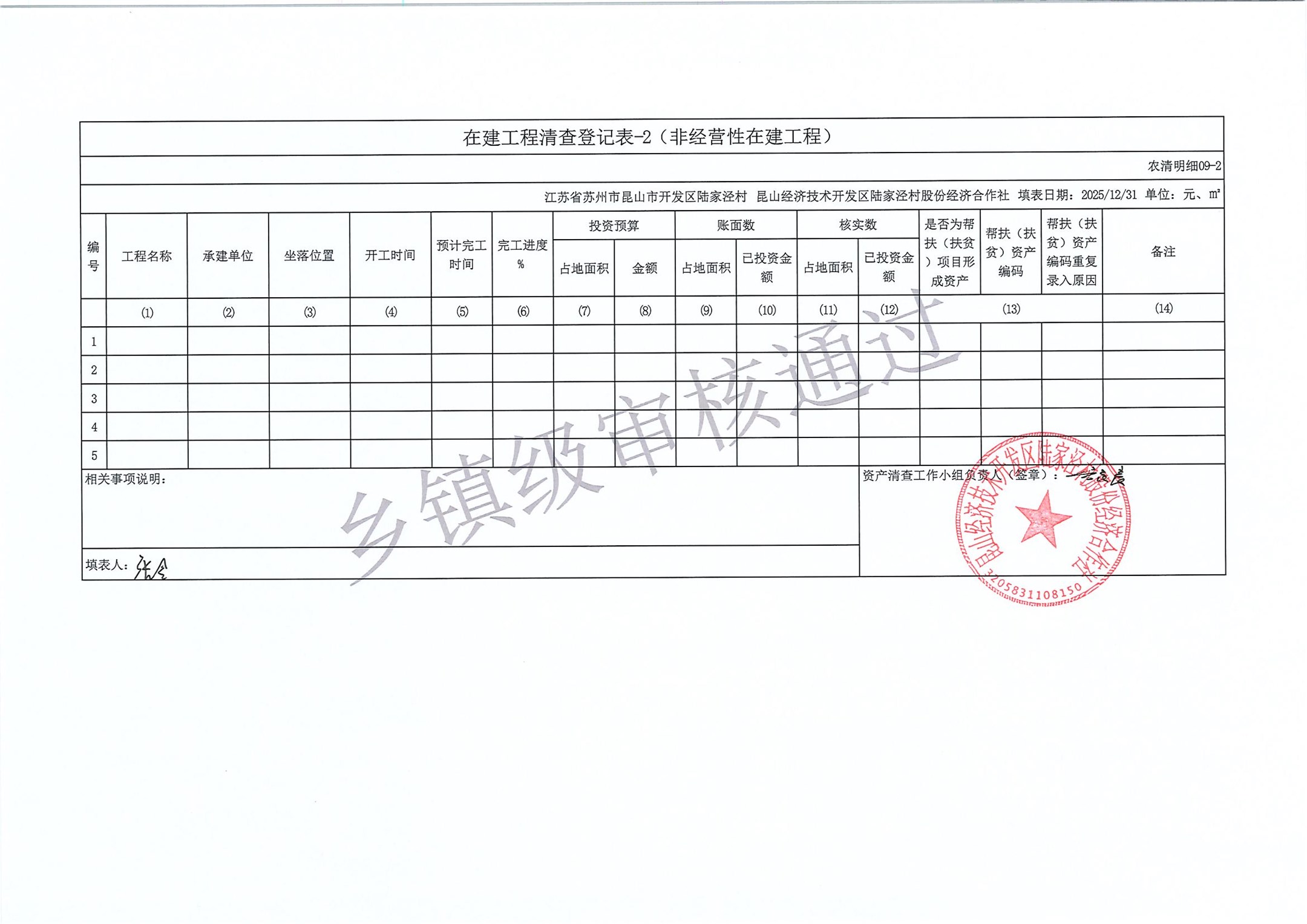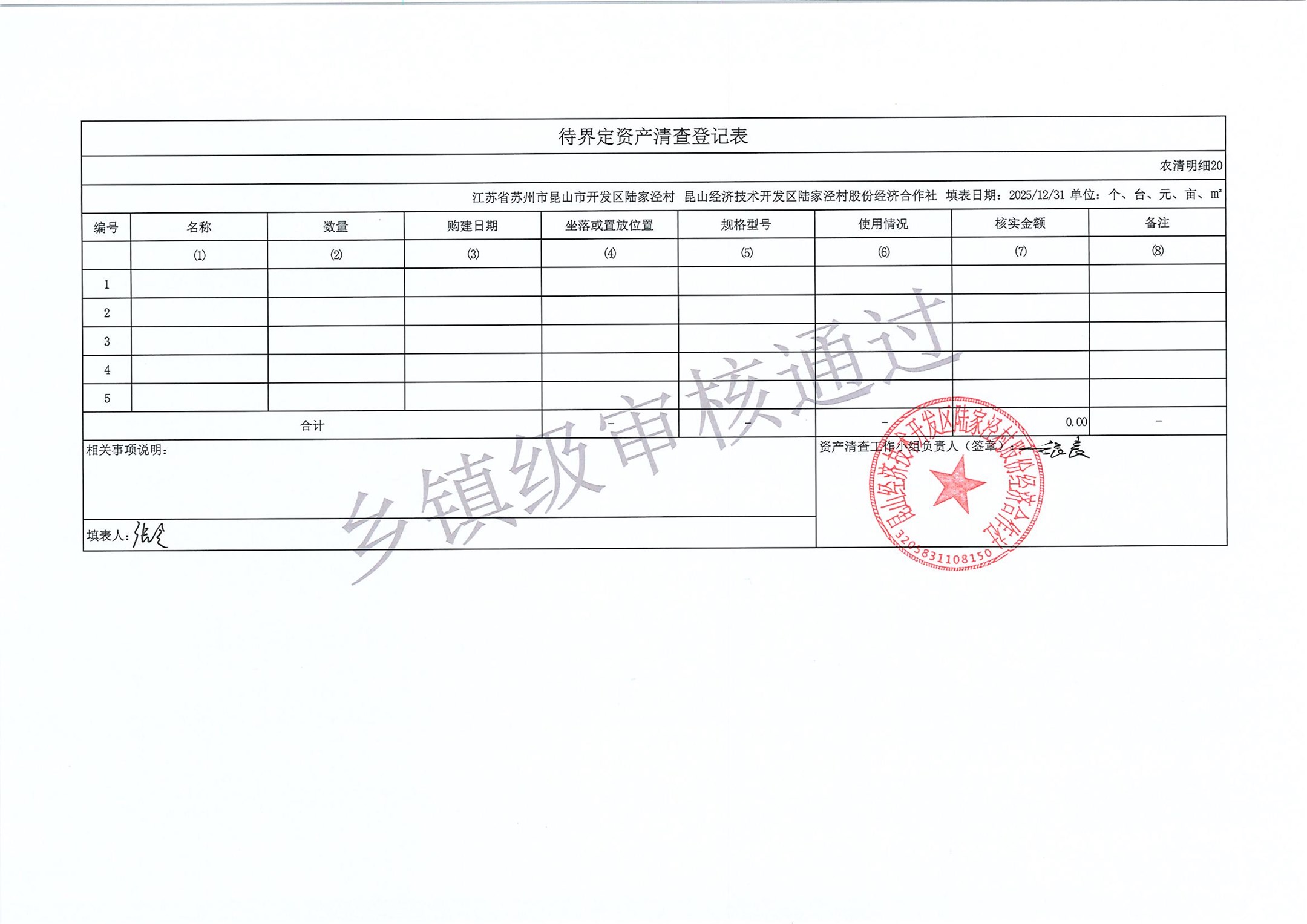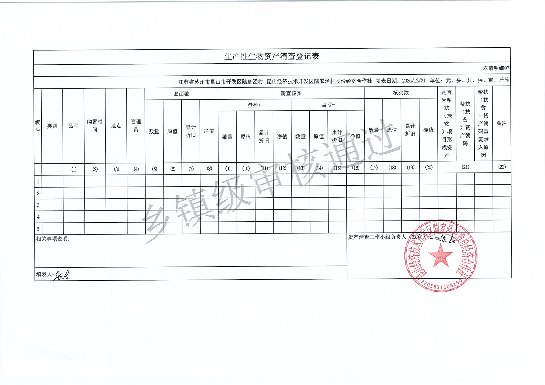 2025年度陆家泾村集体资产清查报表