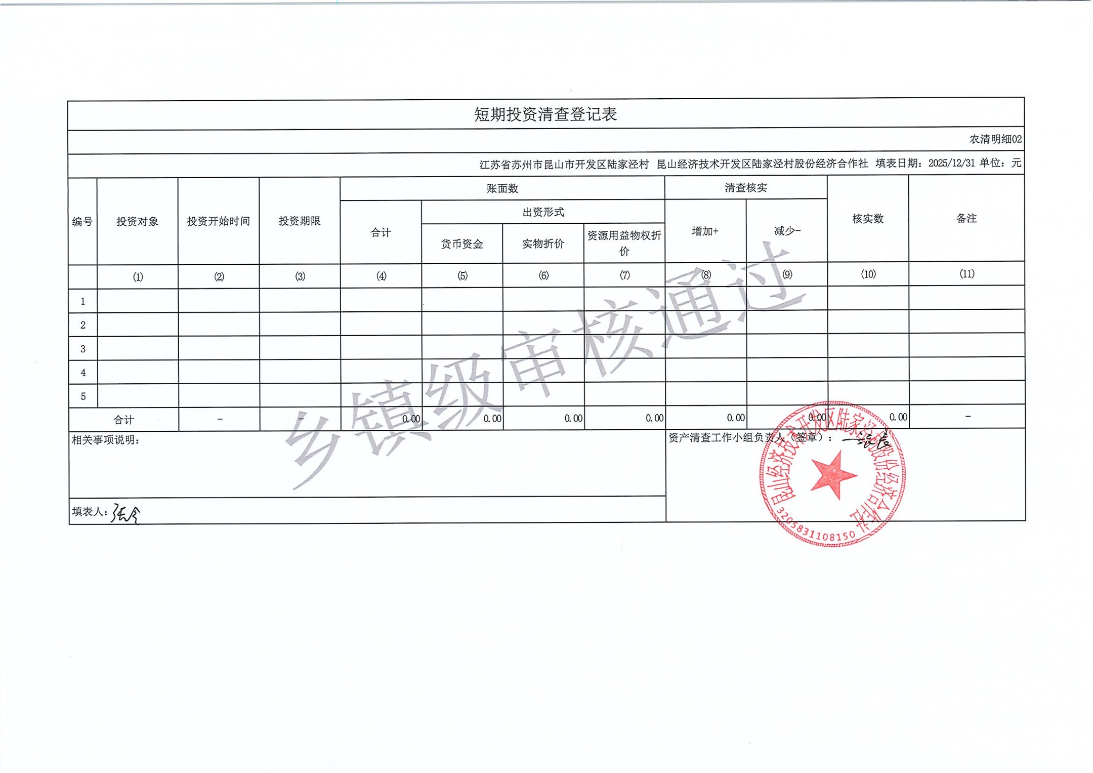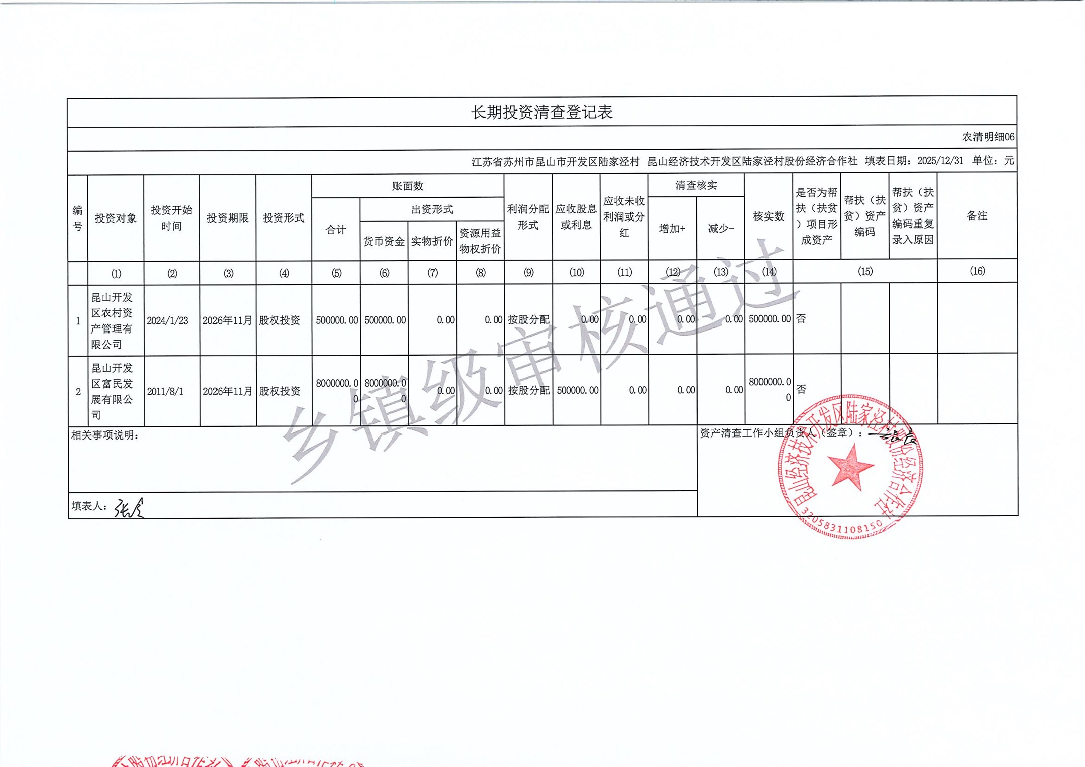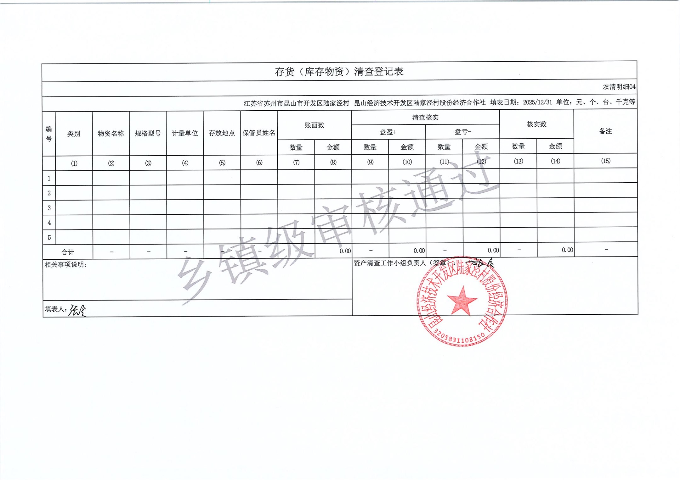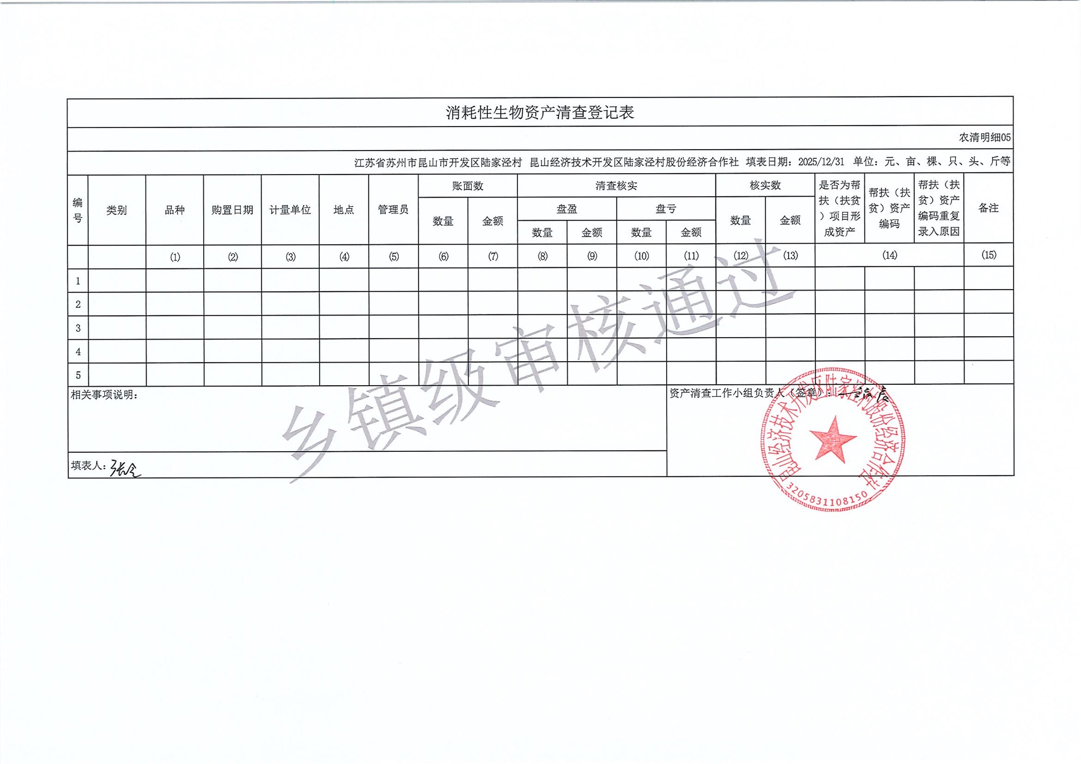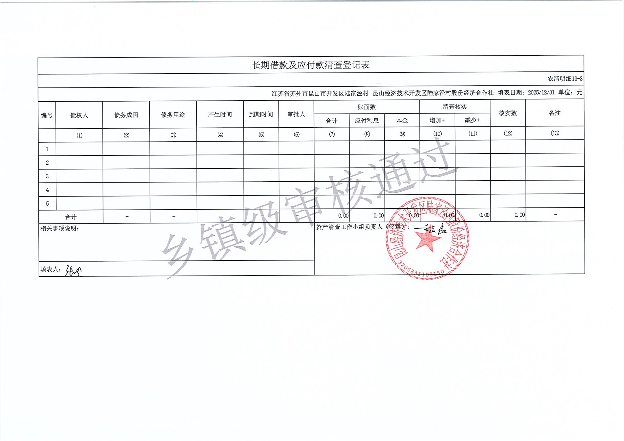 2025年度陆家泾村集体资产清查报表