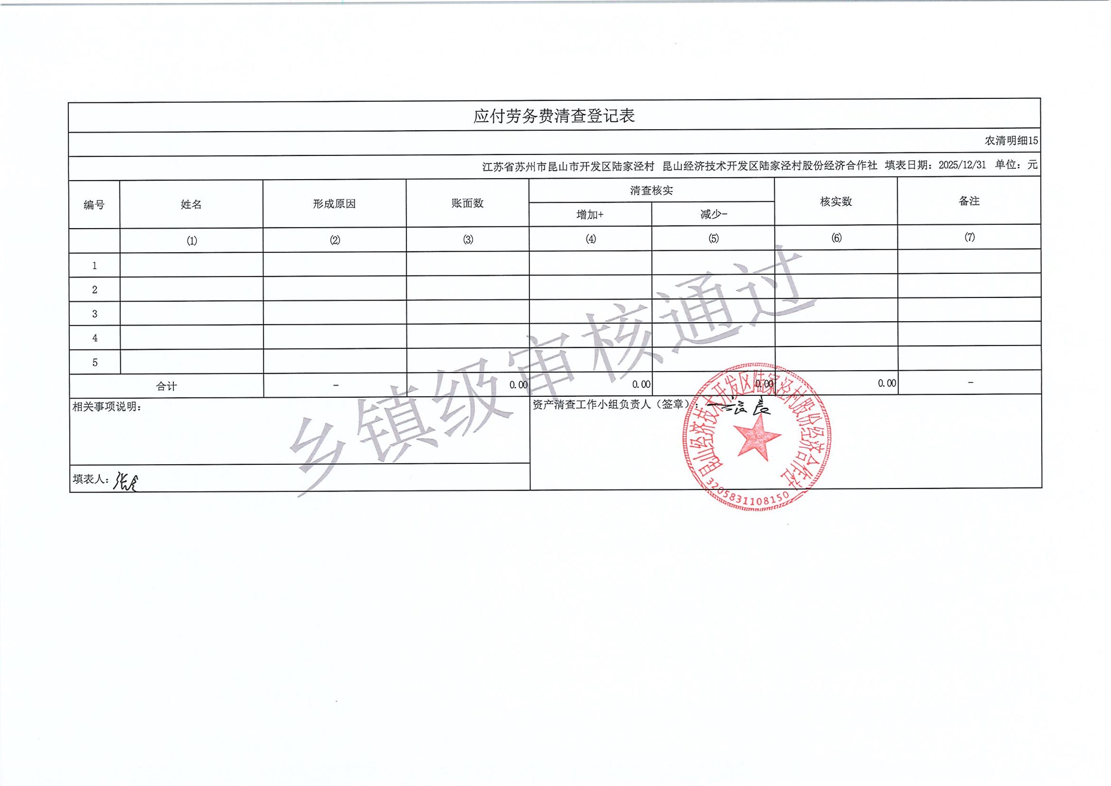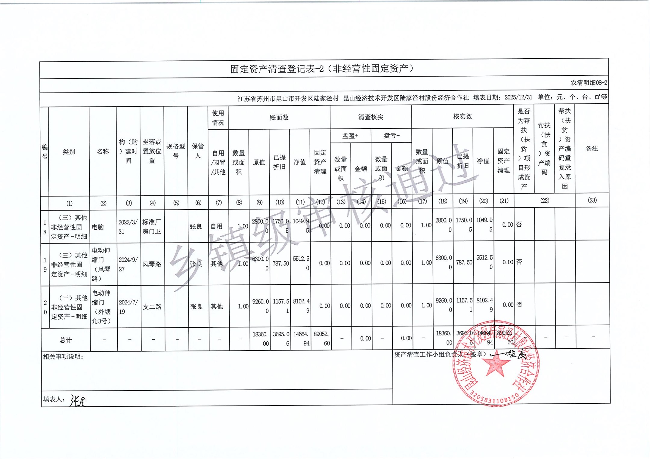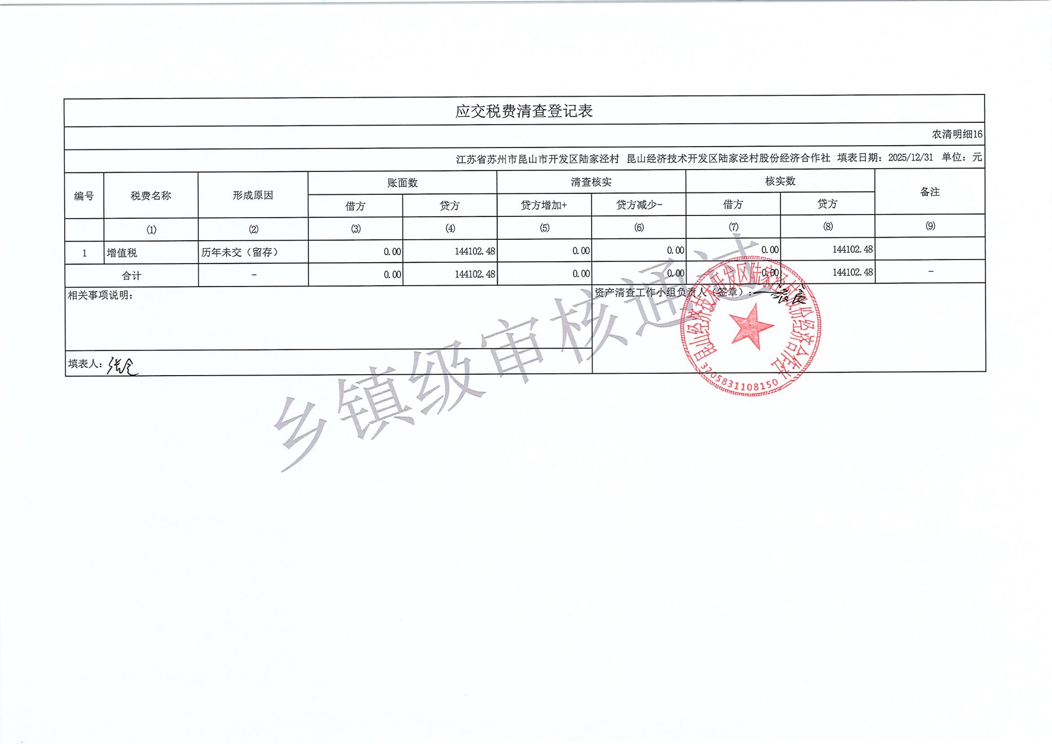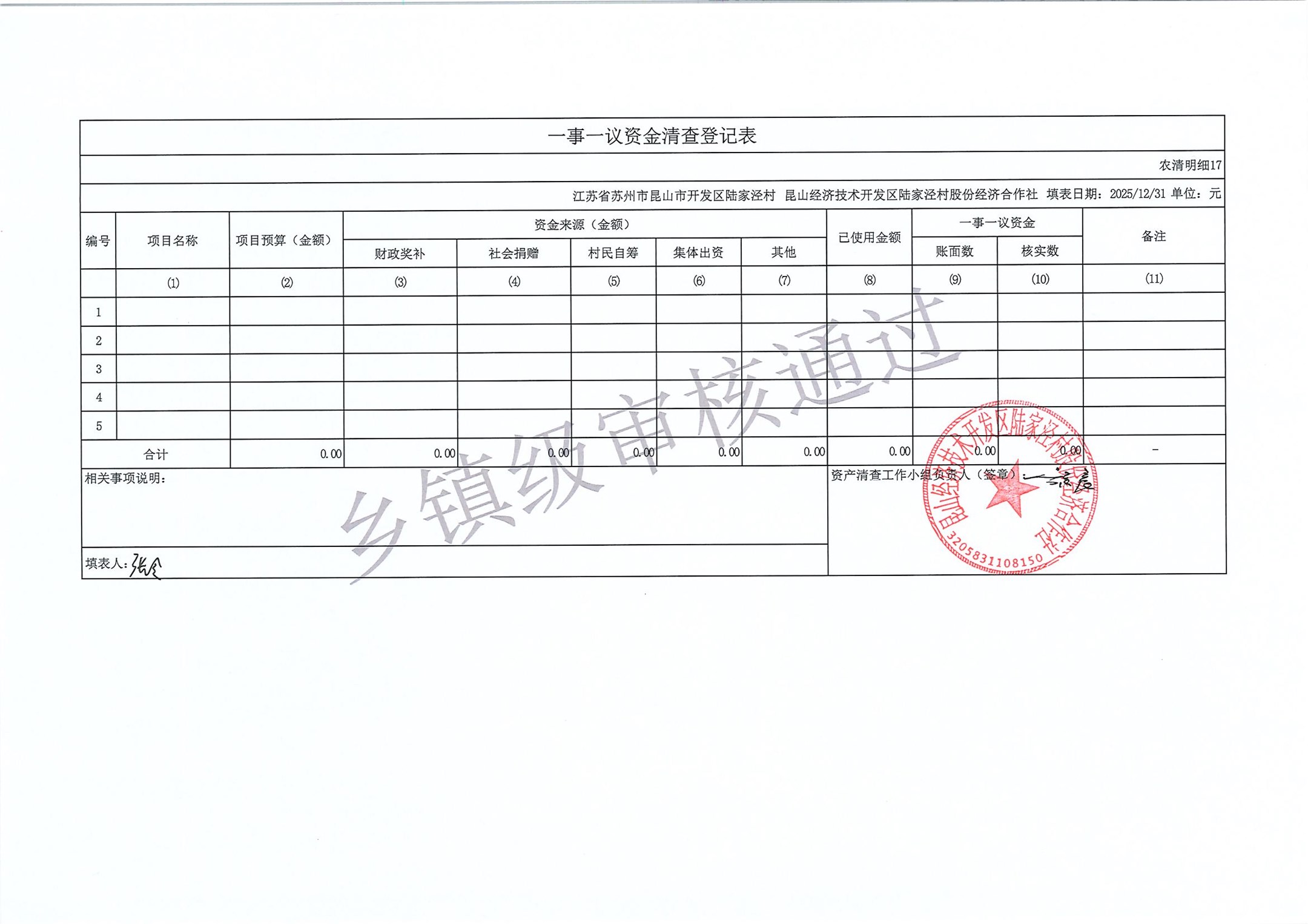 2025年度陆家泾村集体资产清查报表