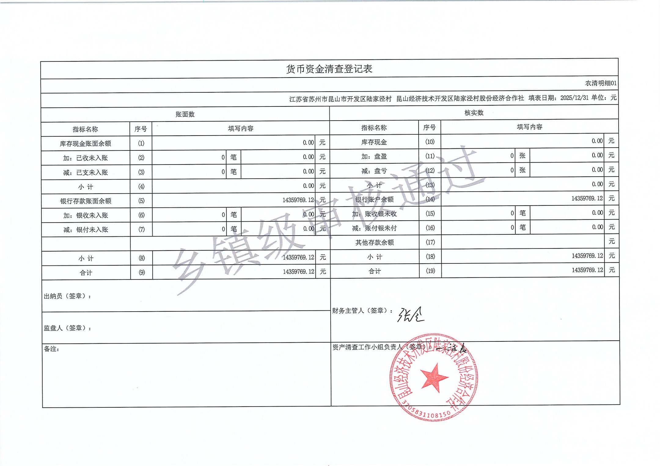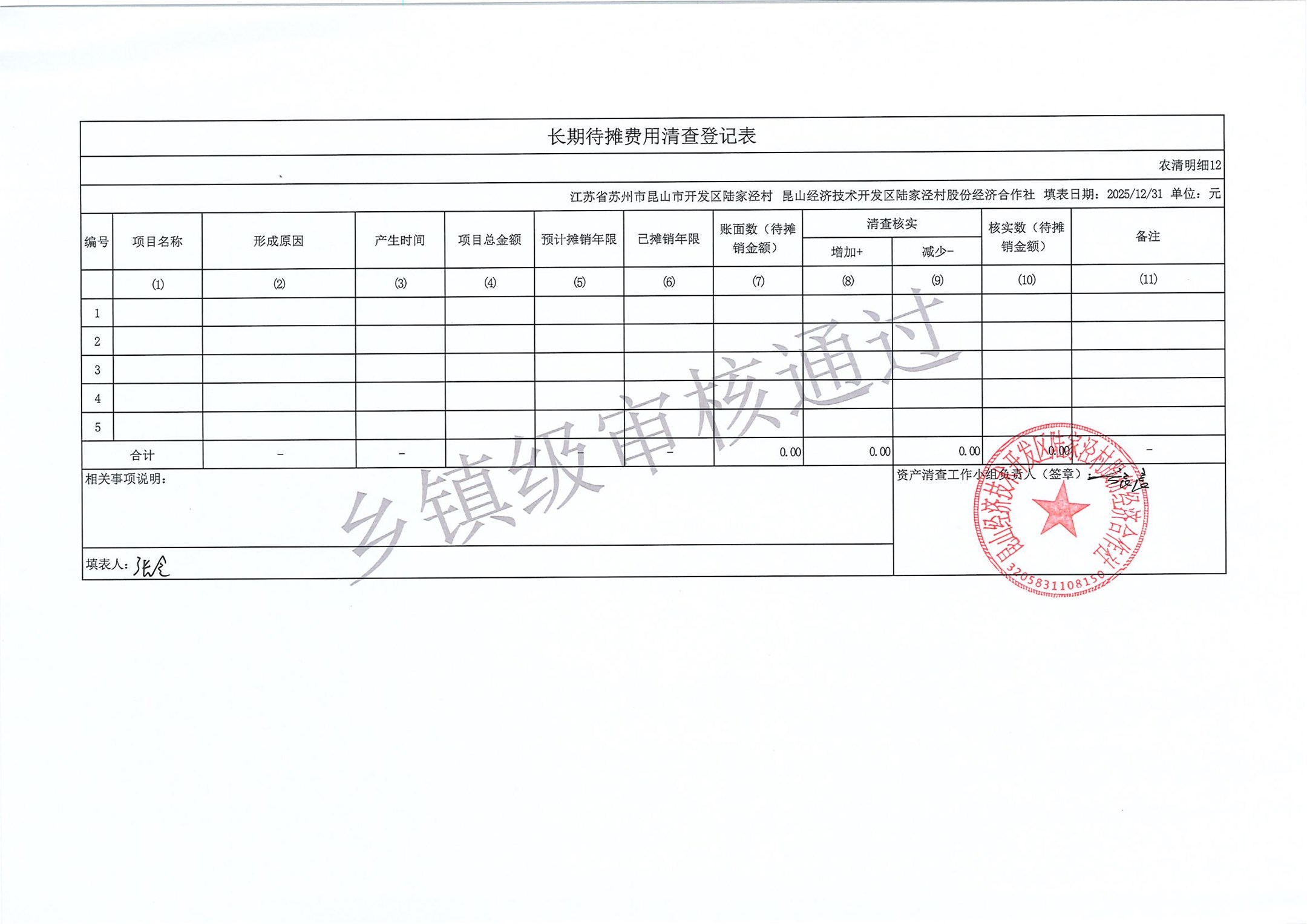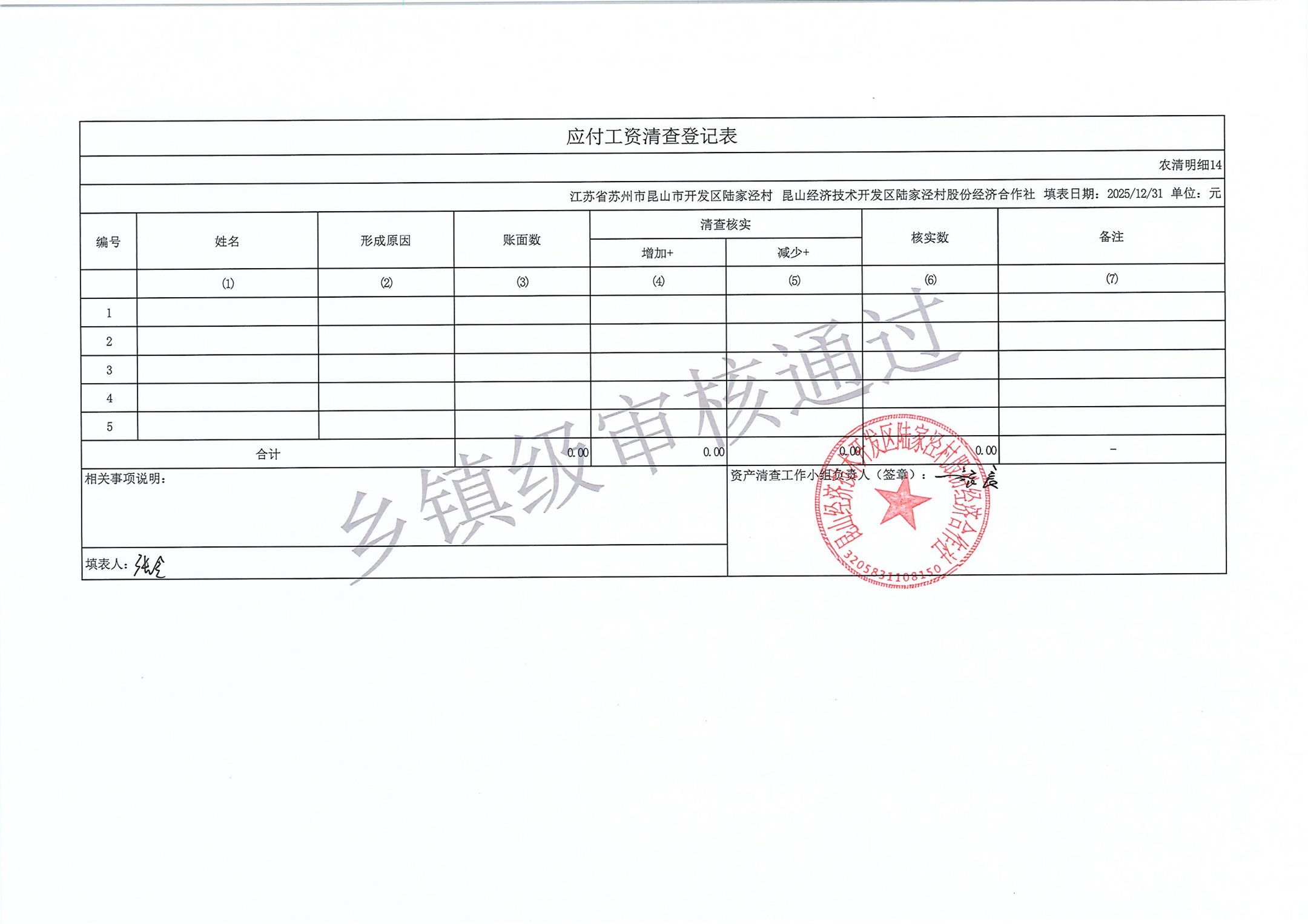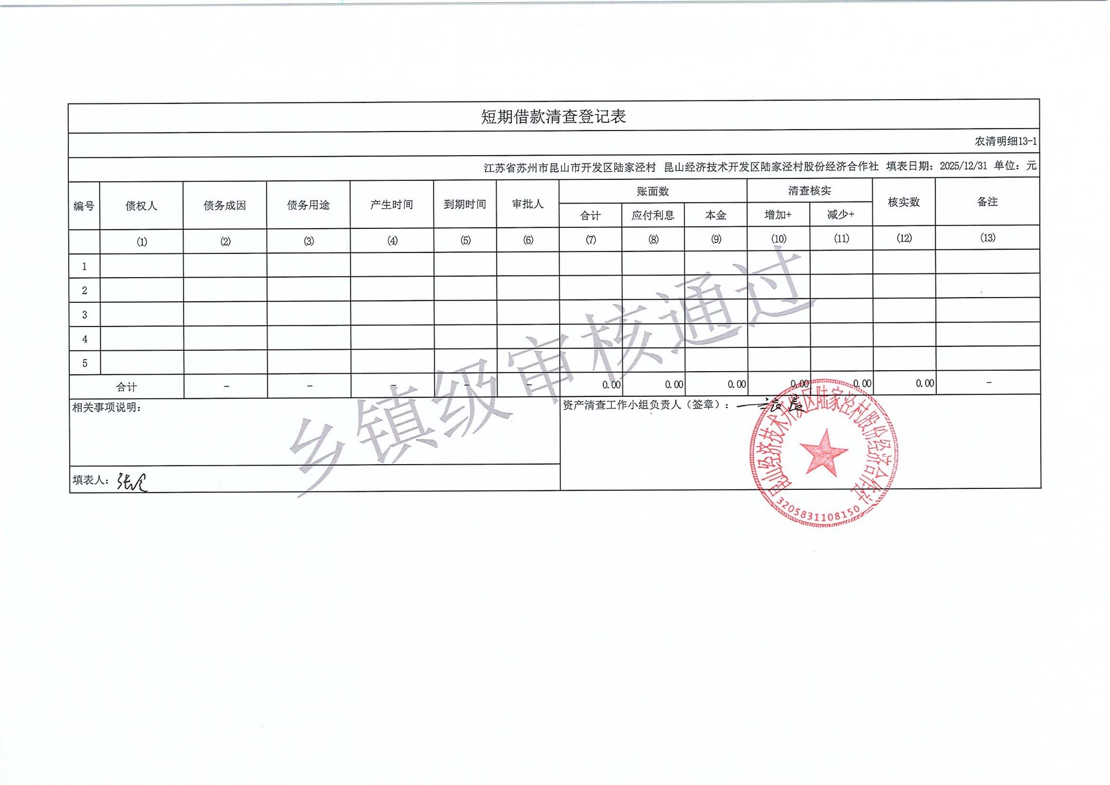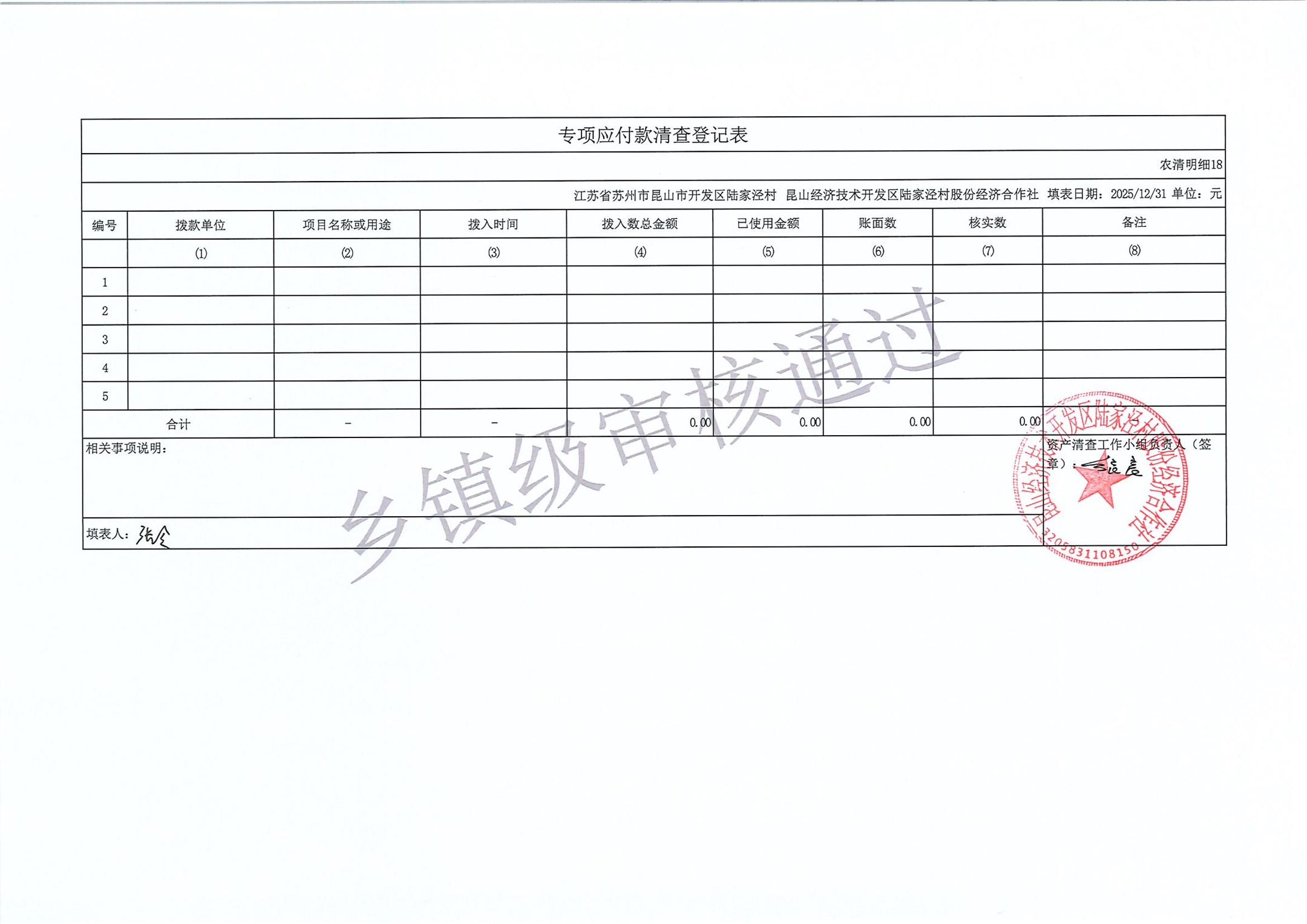 2025年度陆家泾村集体资产清查报表