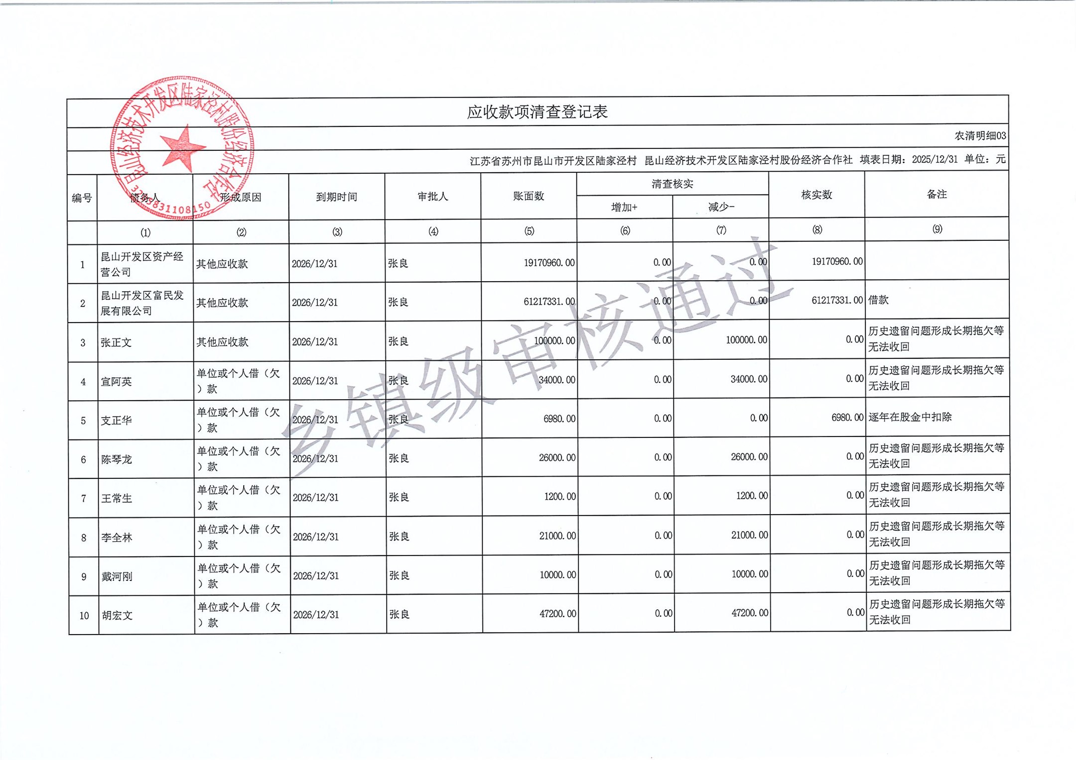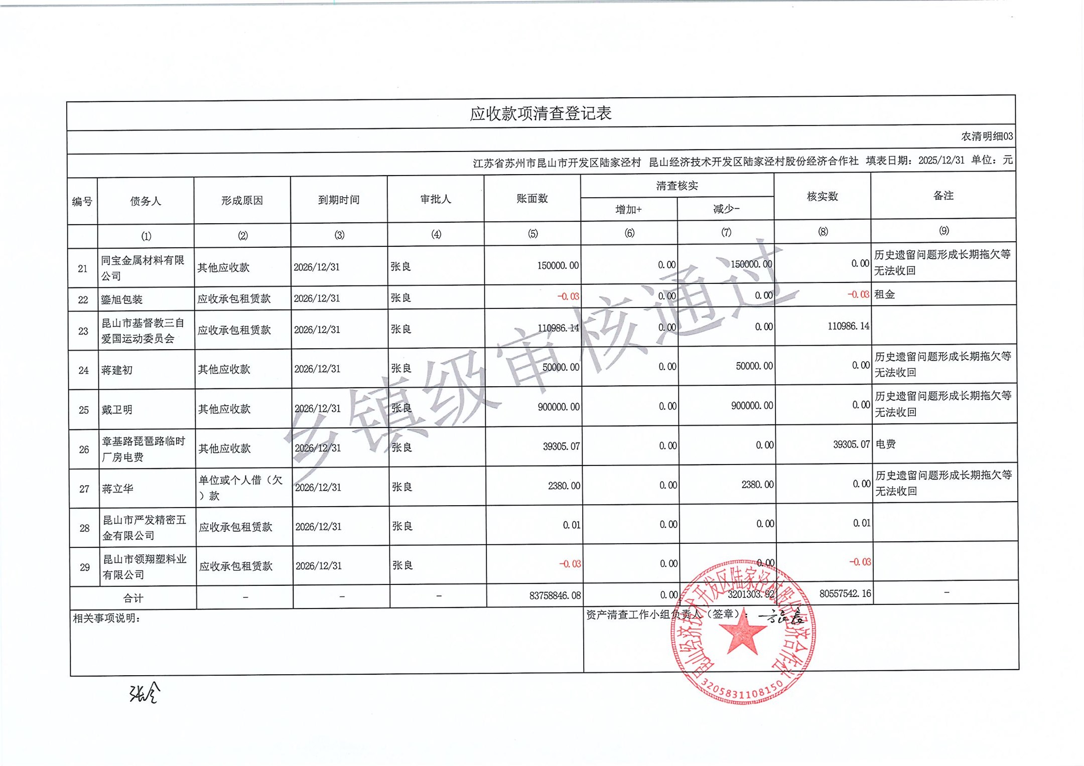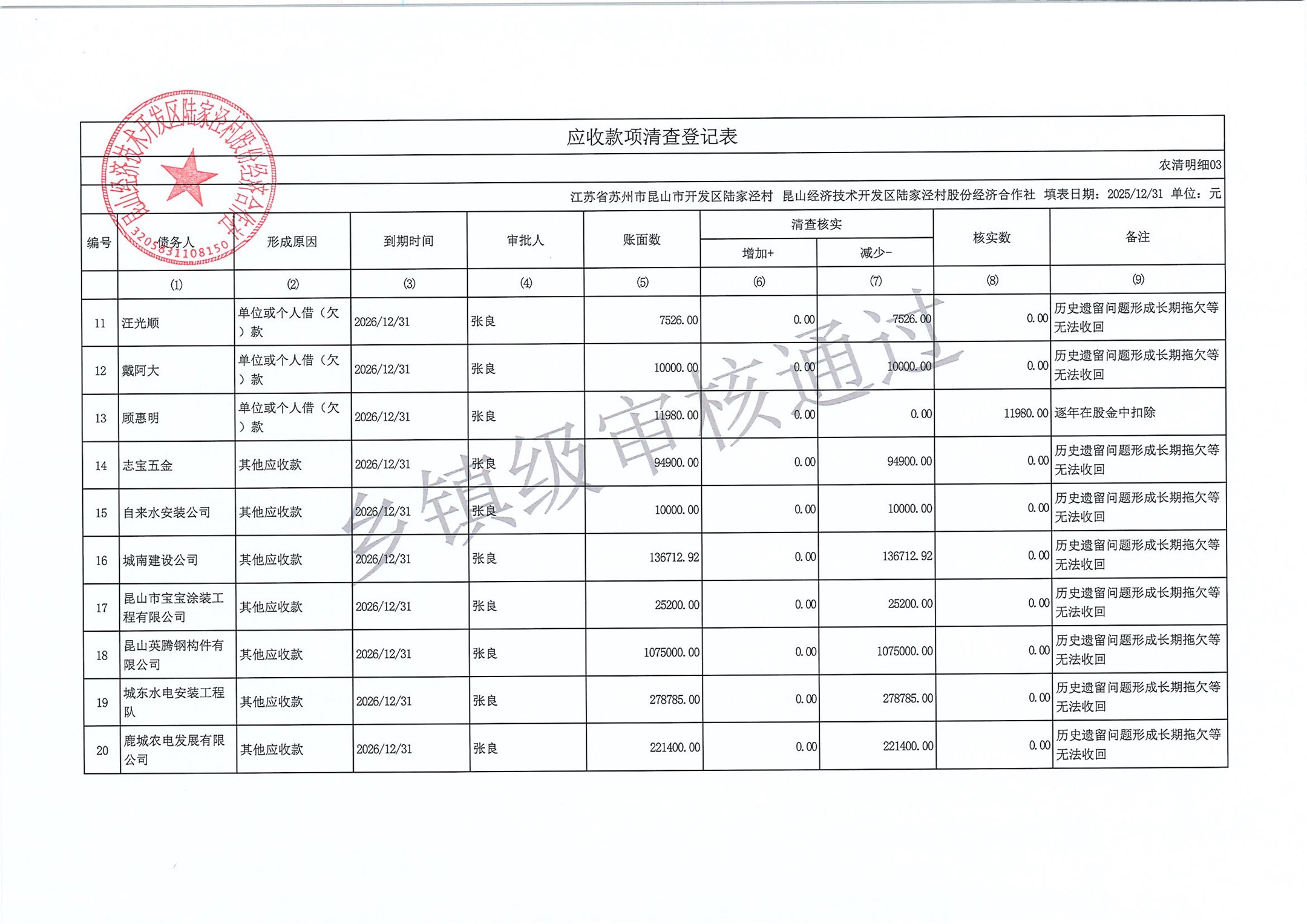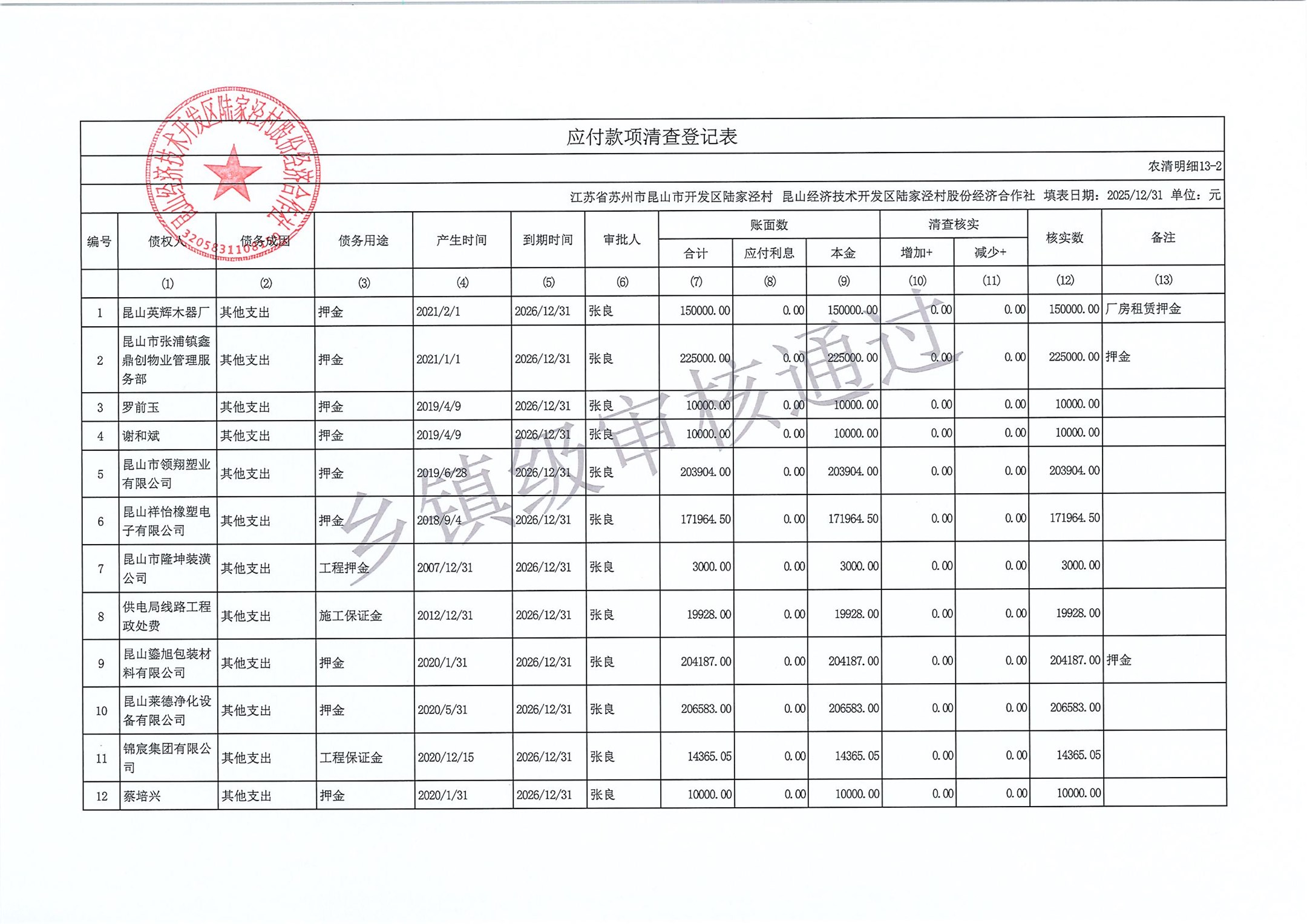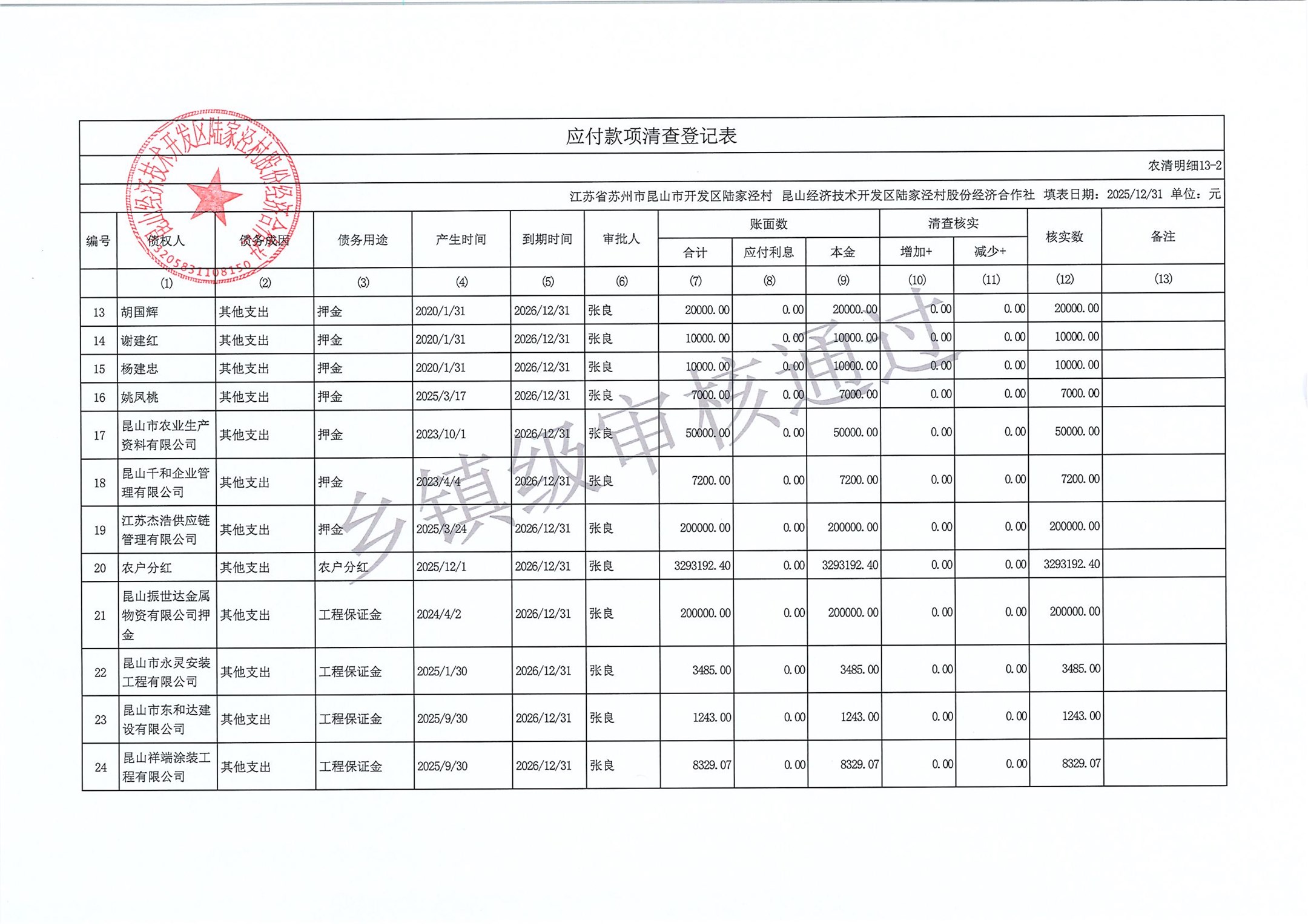 2025年度陆家泾村集体资产清查报表