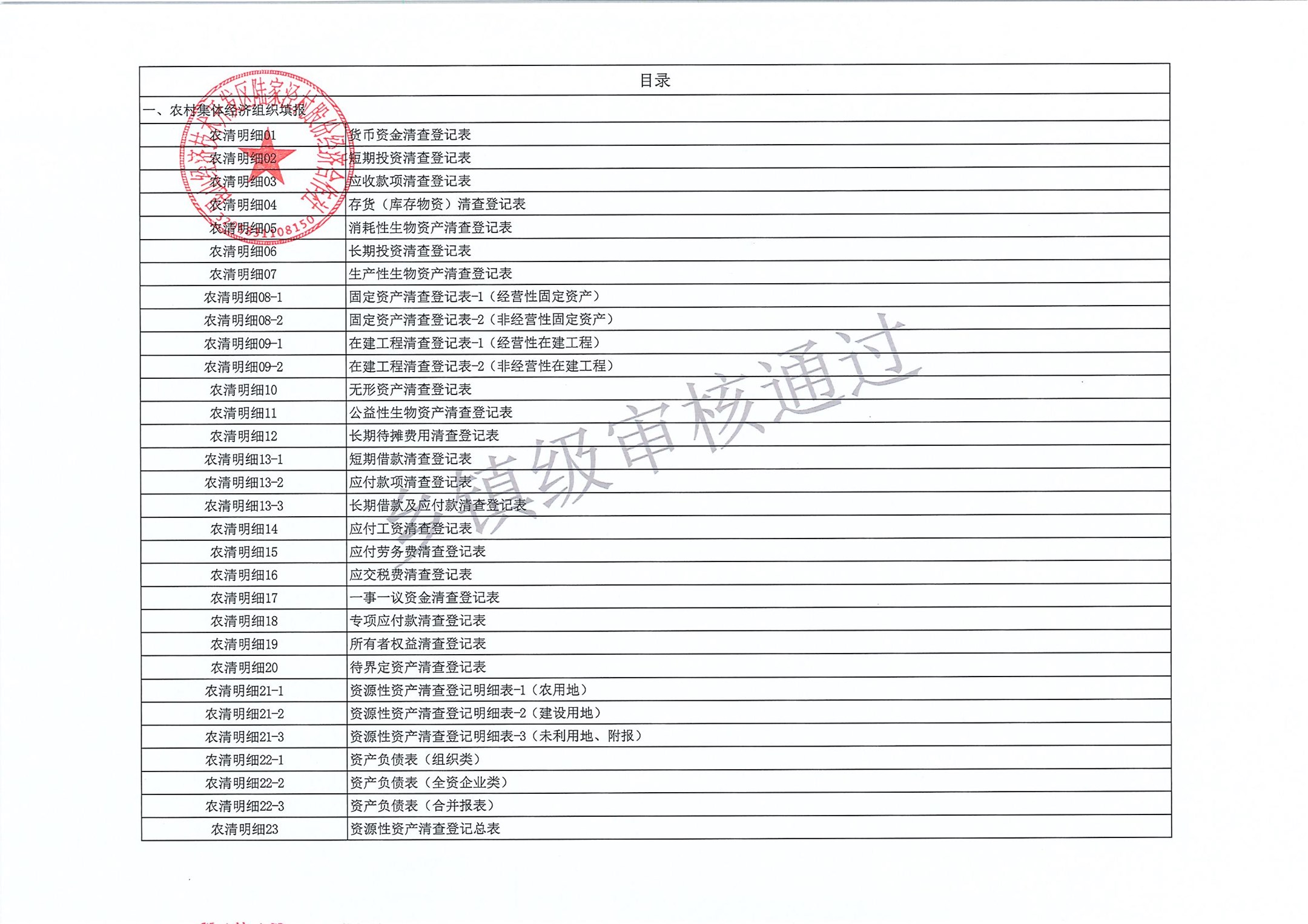 村盖章事项名录