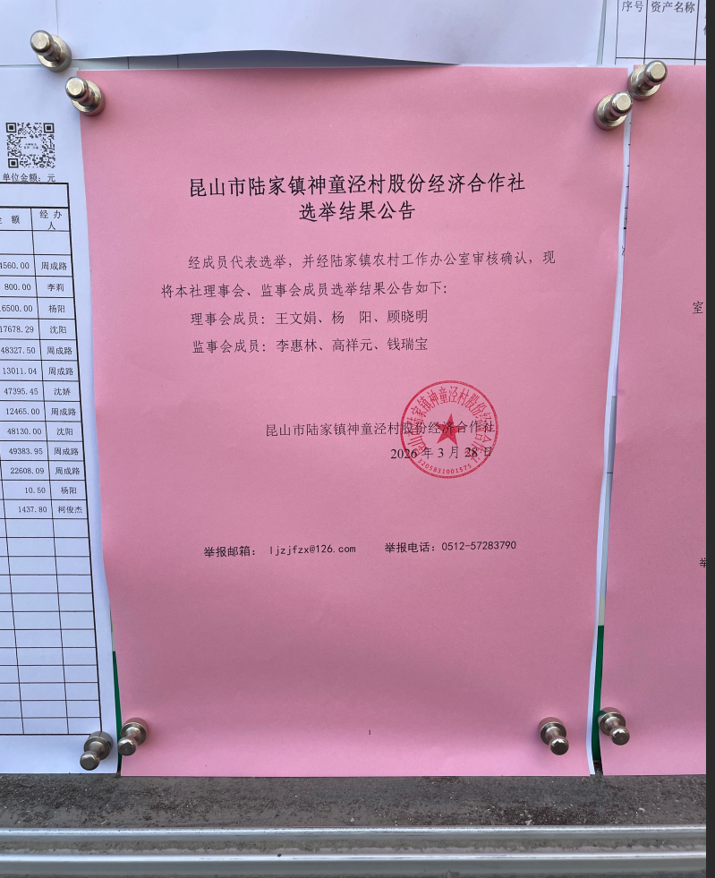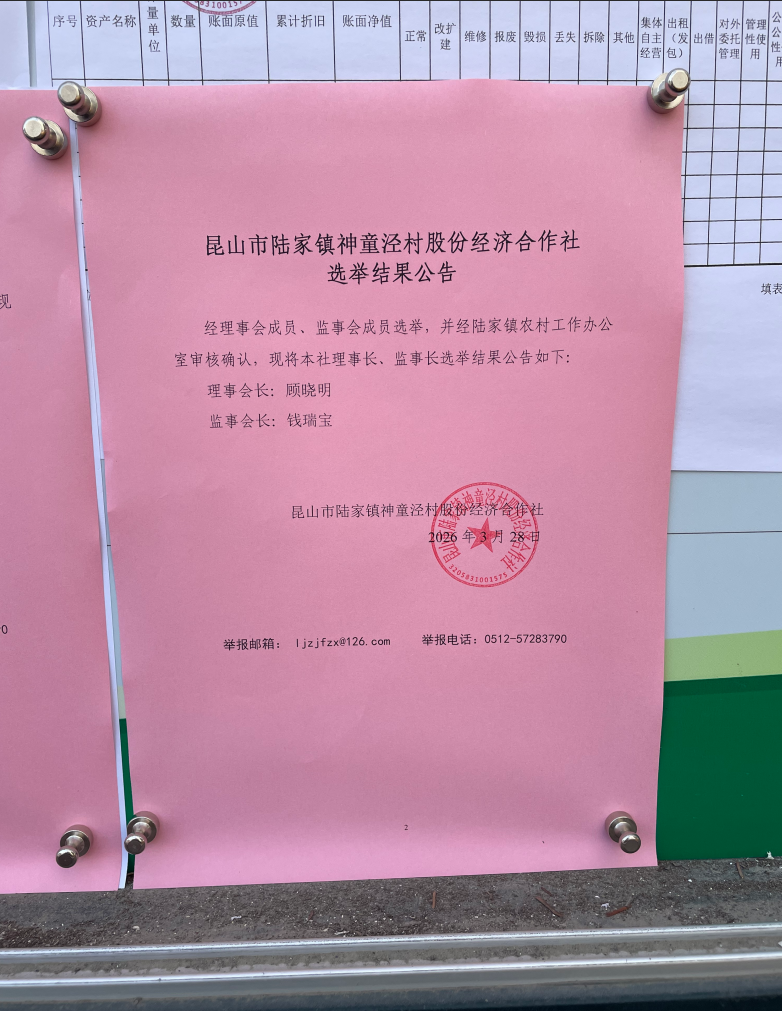 昆山市陆家镇神童泾村股份经济合作社选举结果公告