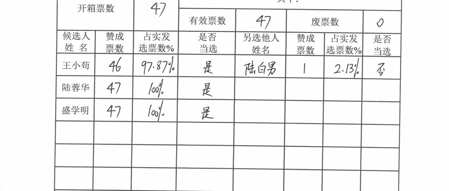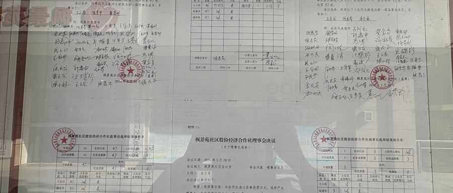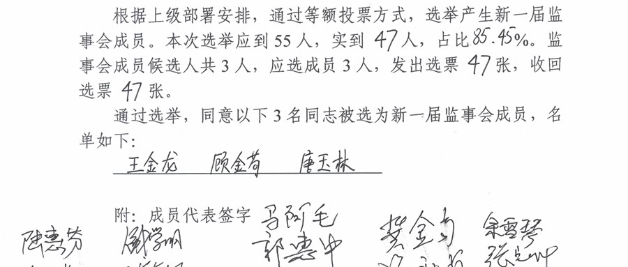枫景苑社区股份经济合作社成员代表大会决议及结果报告单(关于理事会、监事会换届选举)