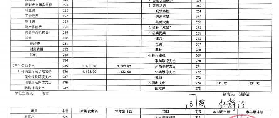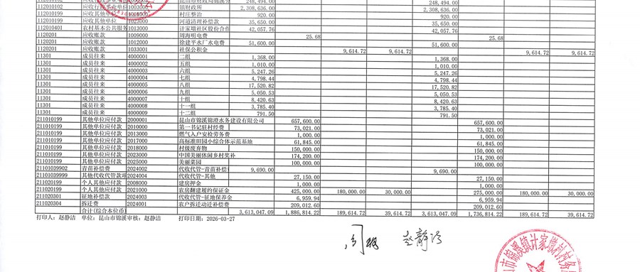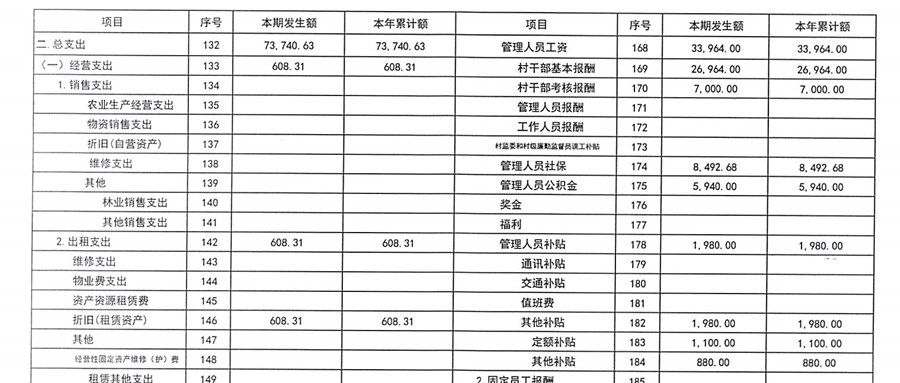 2026年1月村委会财务公开