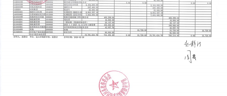 2026年1月股份经济合作社财务公开