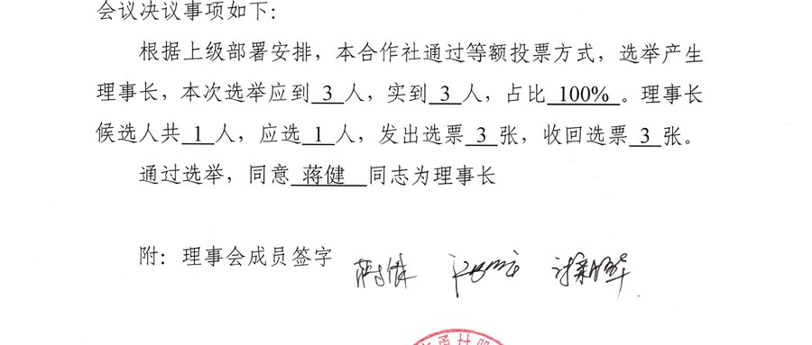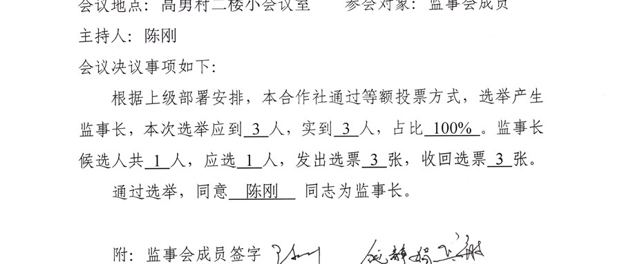 高勇村股份经济合作社换届选举理事长、监事长会决议公告