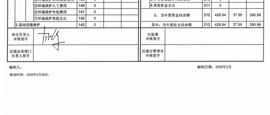 居委会与合作社2025年度决算、2026年预算
