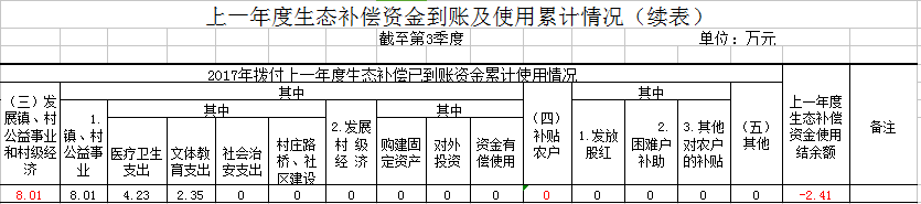 上一年度生态补偿资金到账及使用累计情况(三季度)