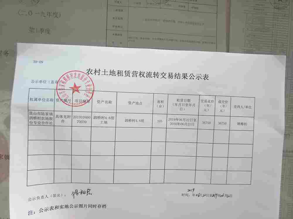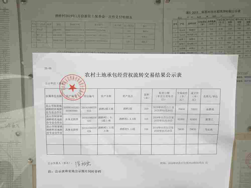 2019年农地发包交易结果公示