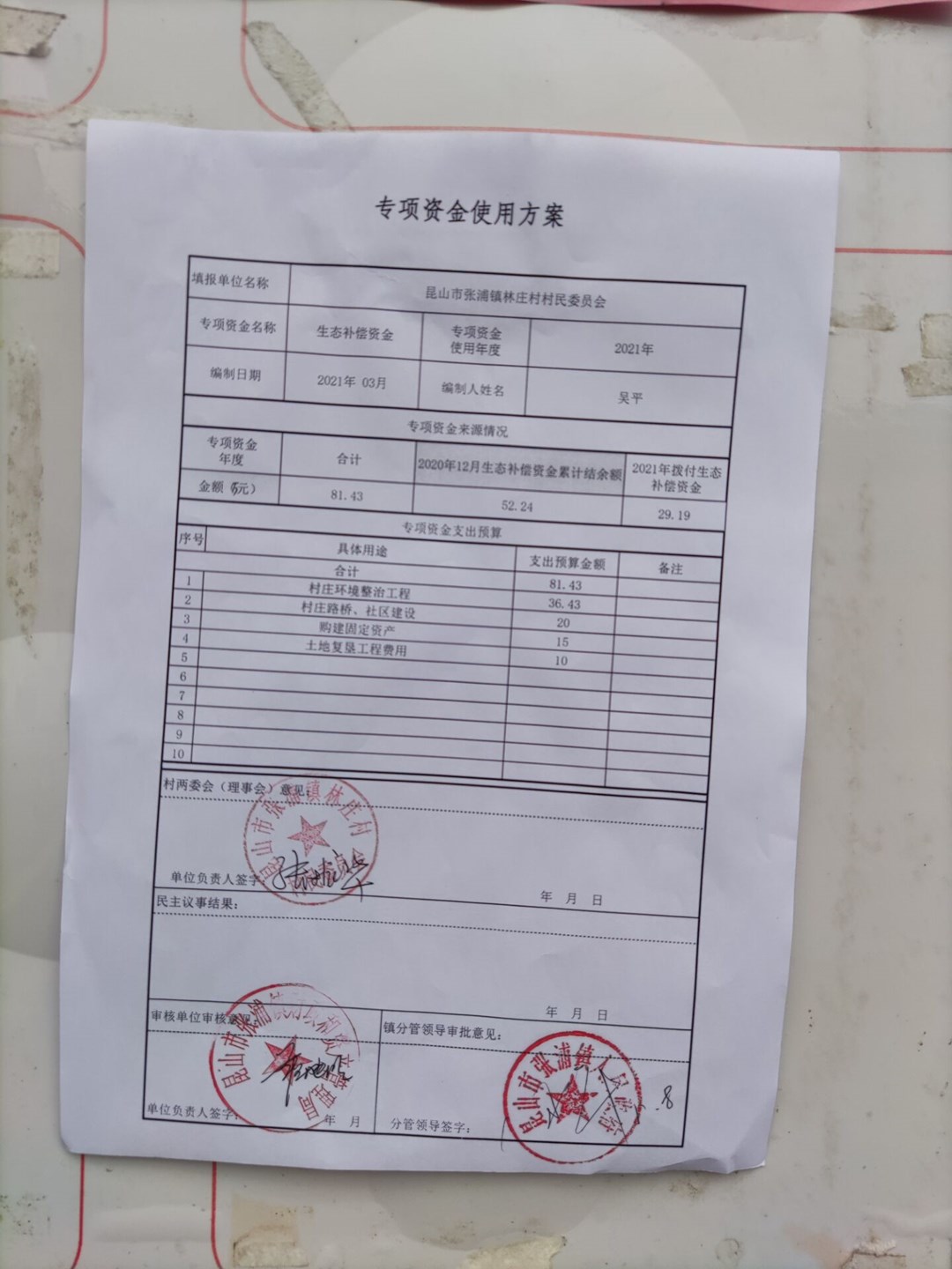 生态补偿资金使用方案