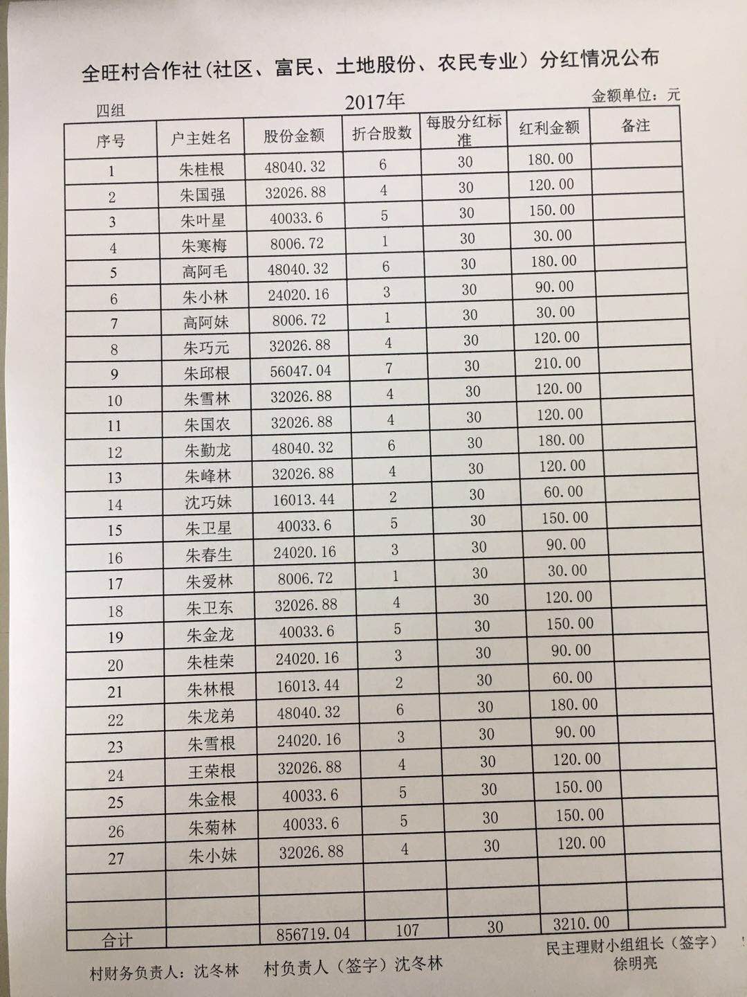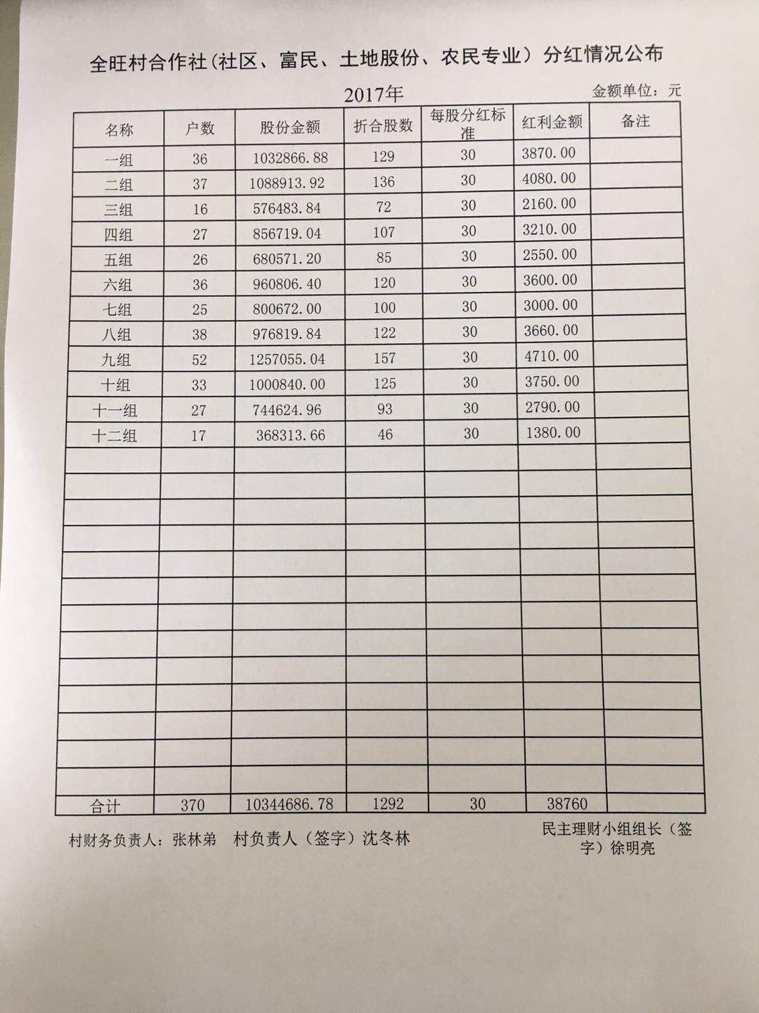 全旺村2018年一季度村务公开资料和民主理财活动