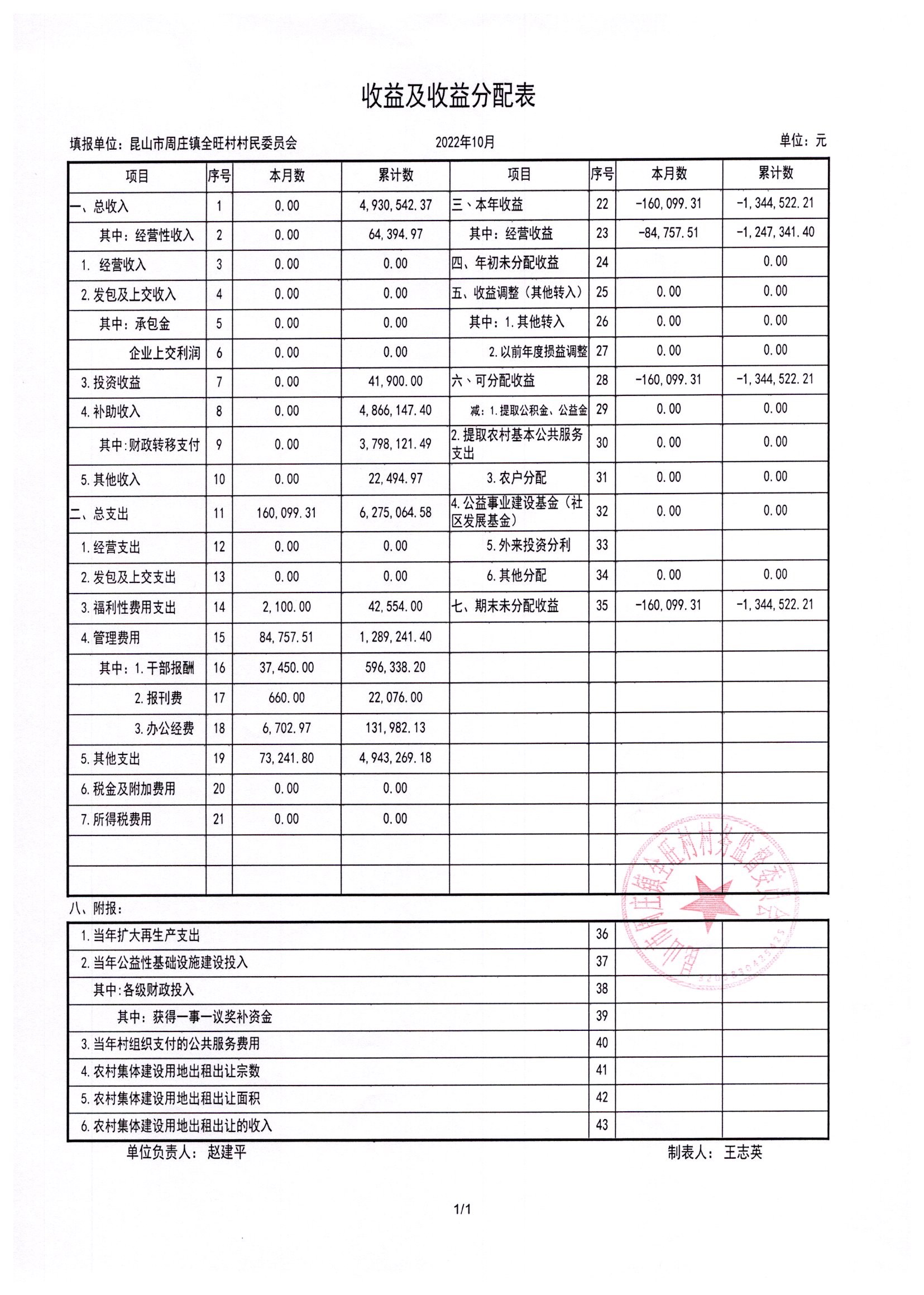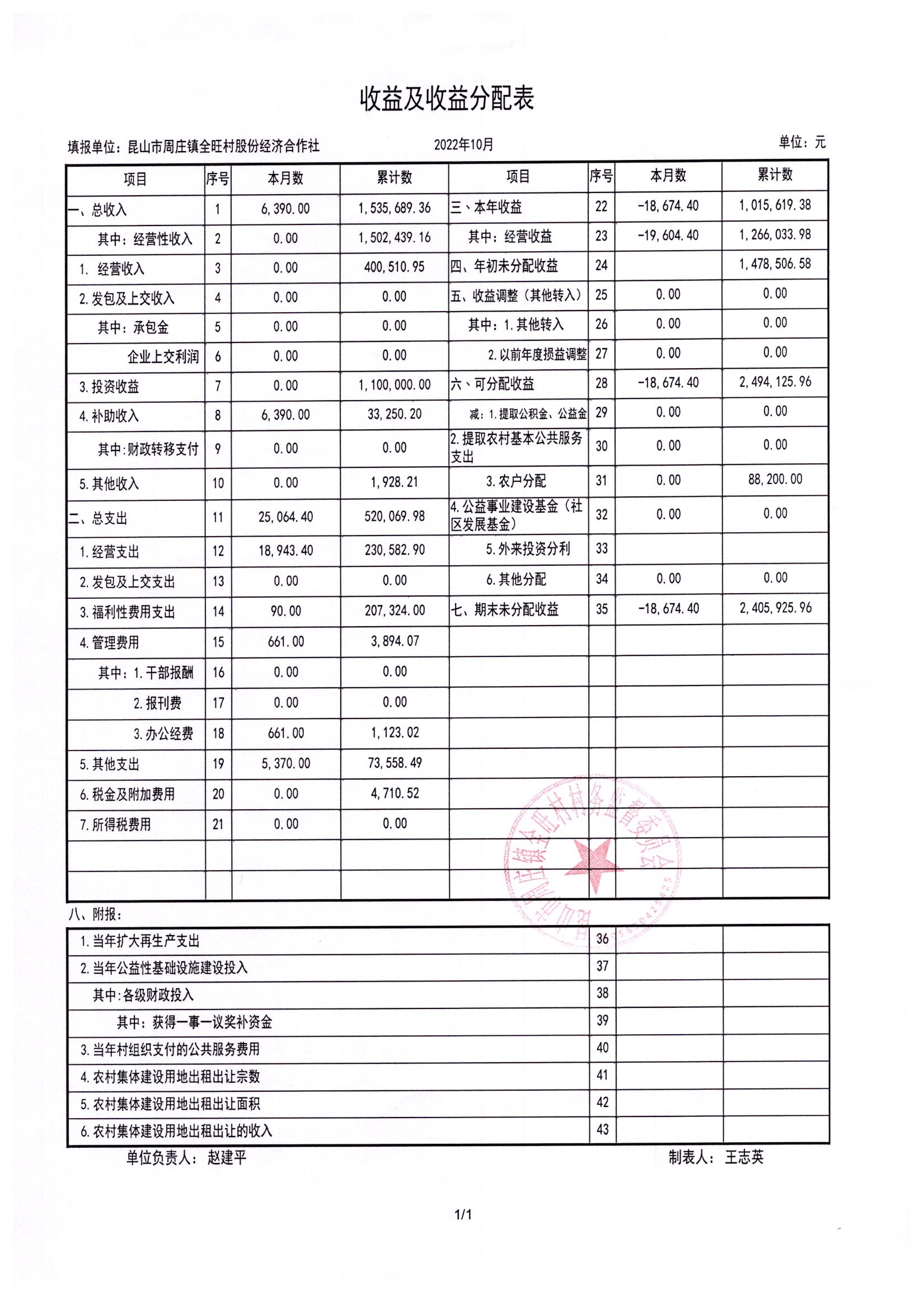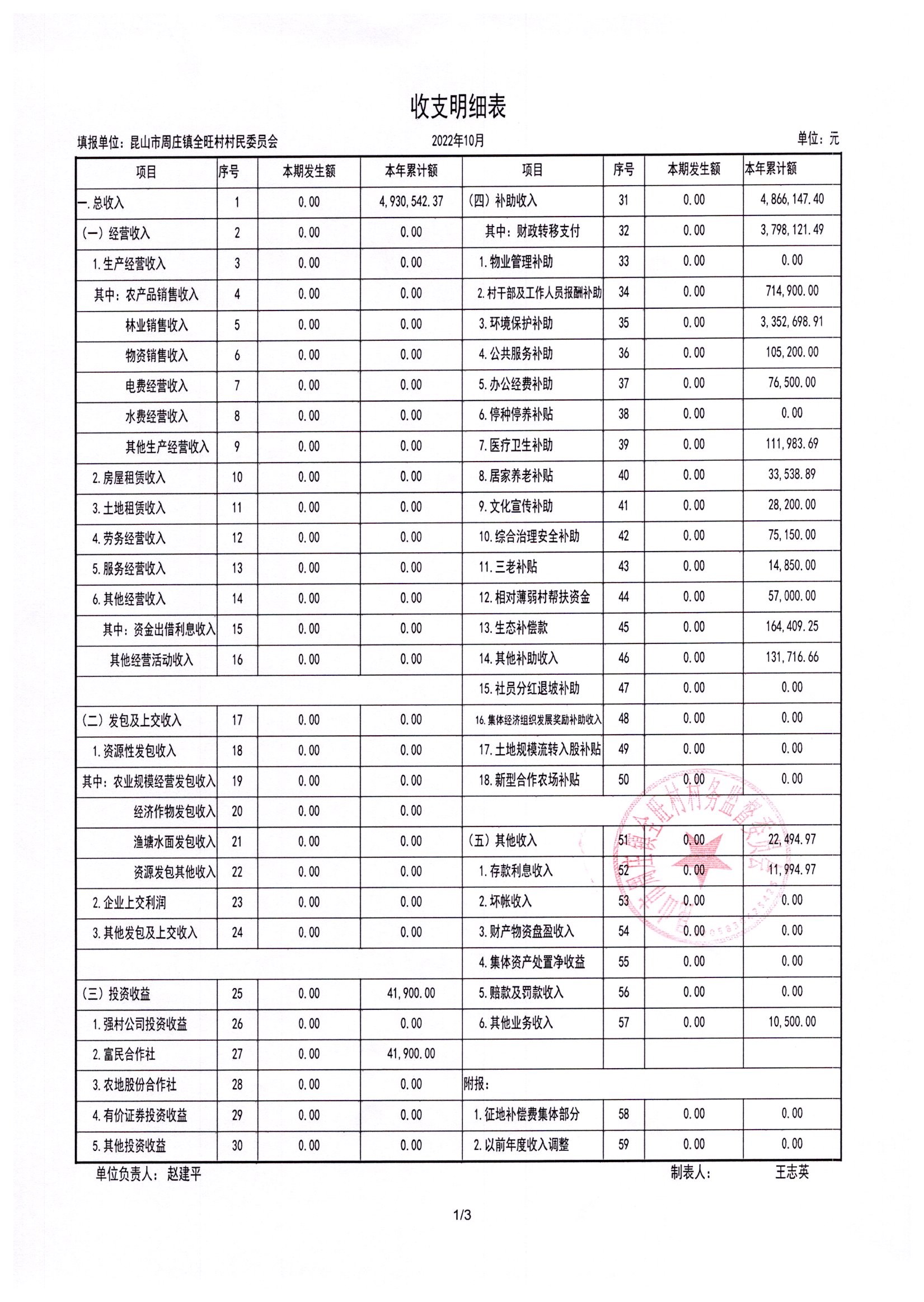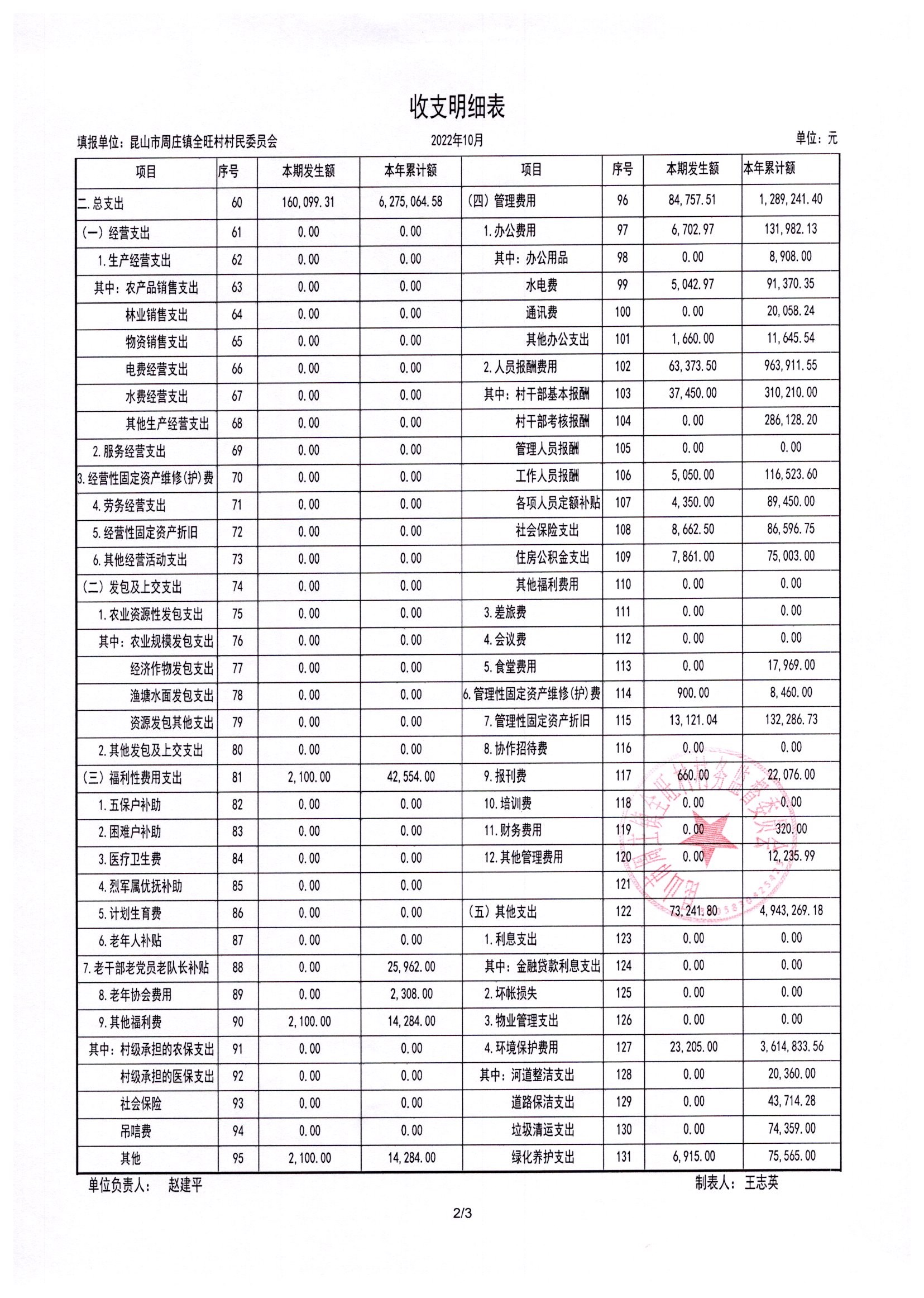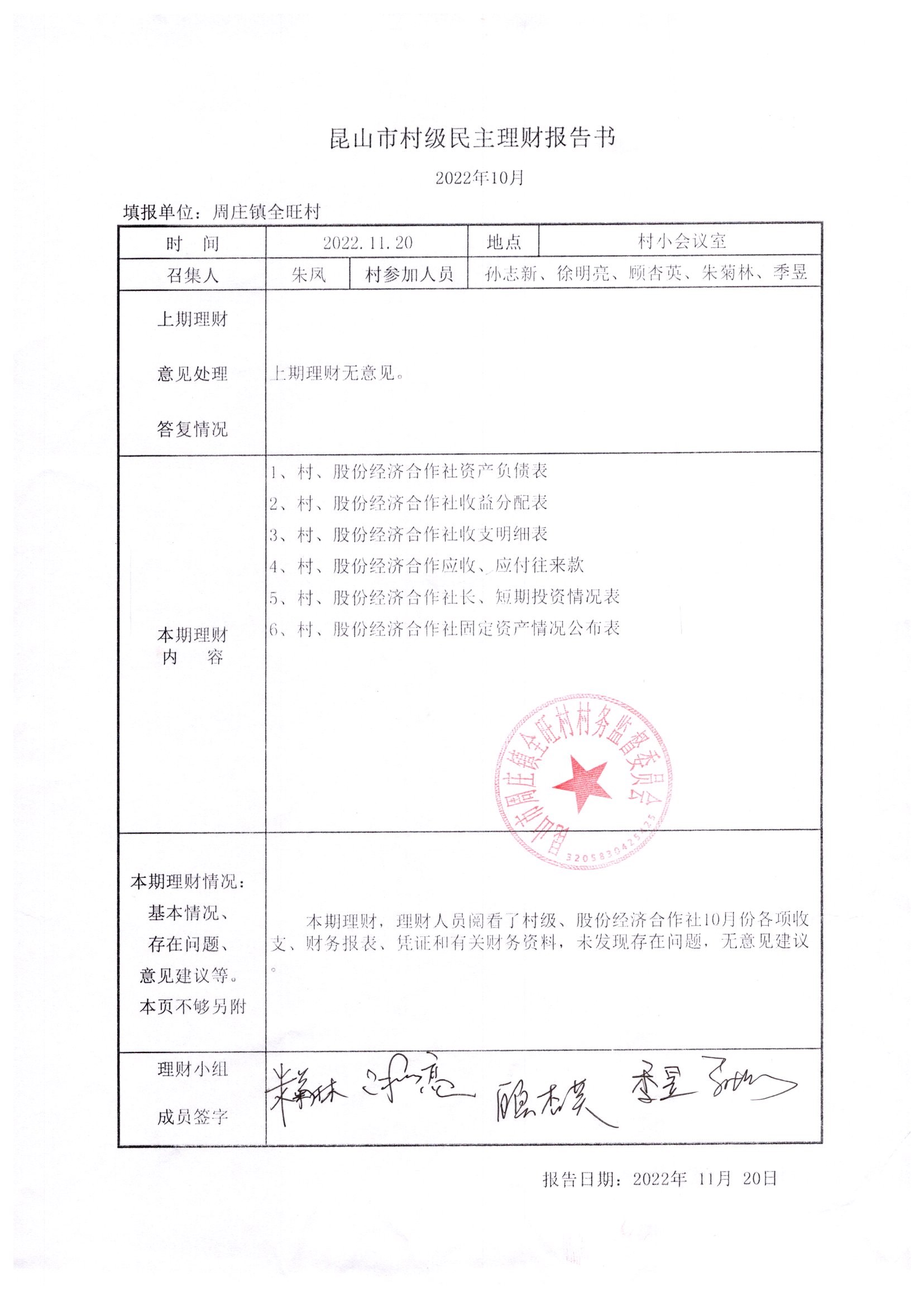 全旺村2022年10月份民主理财