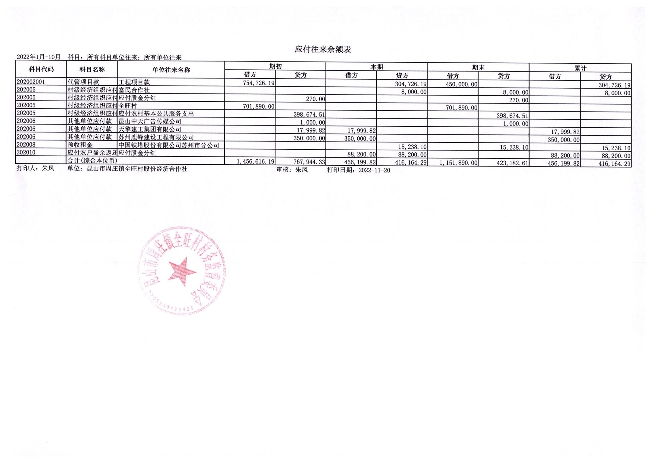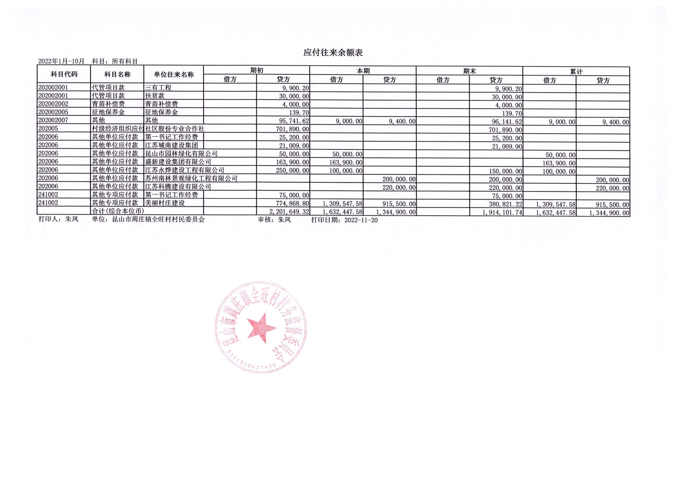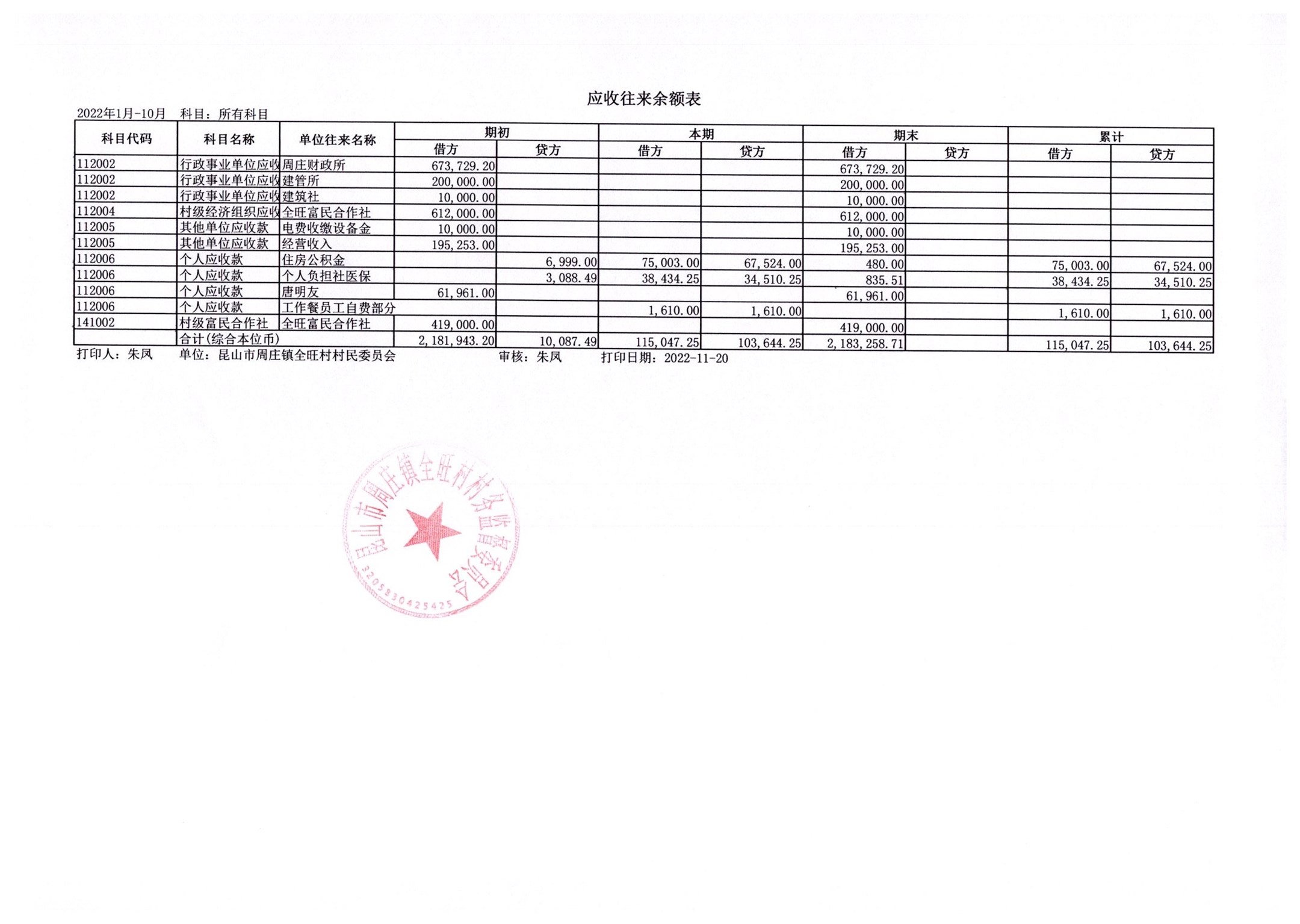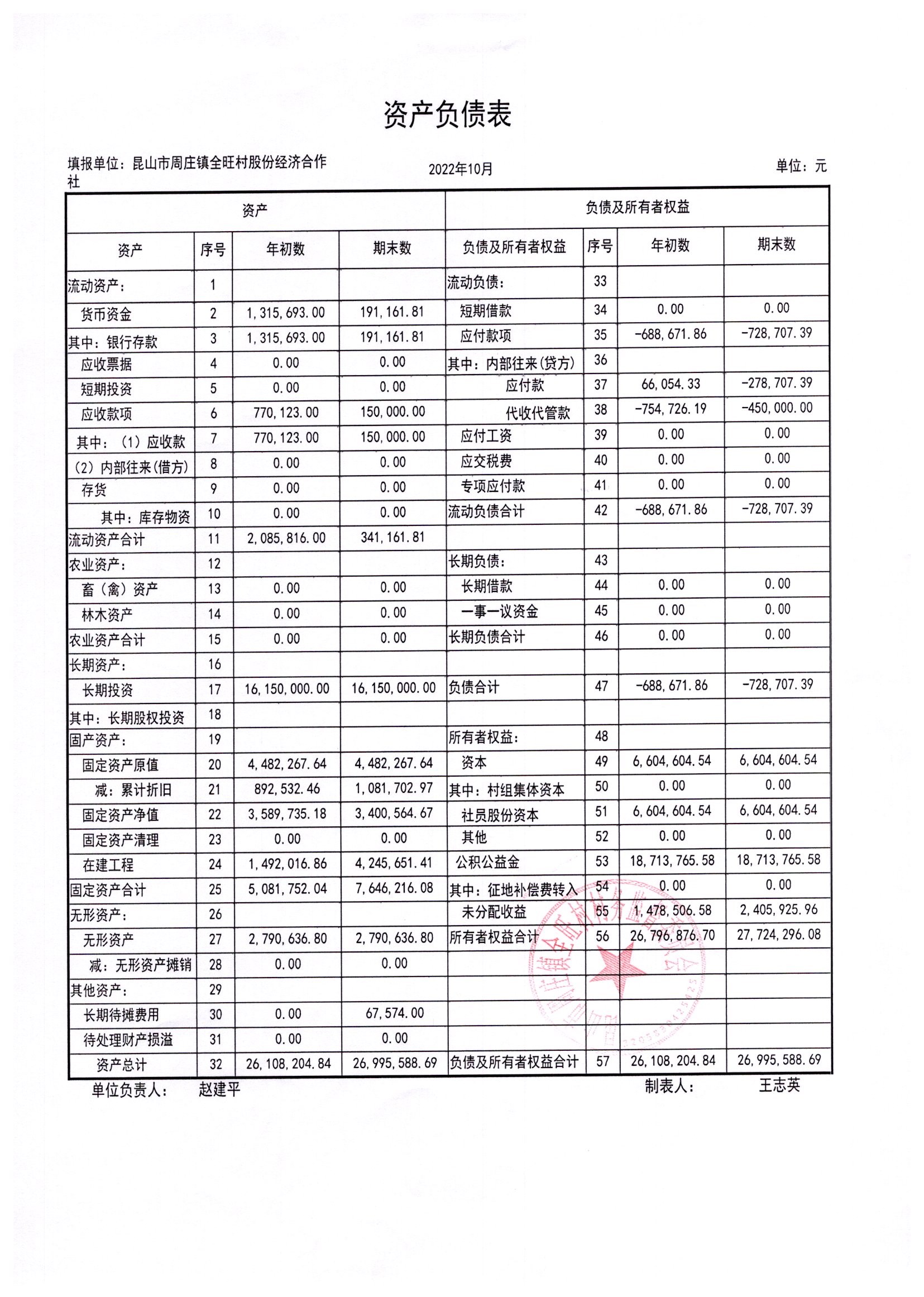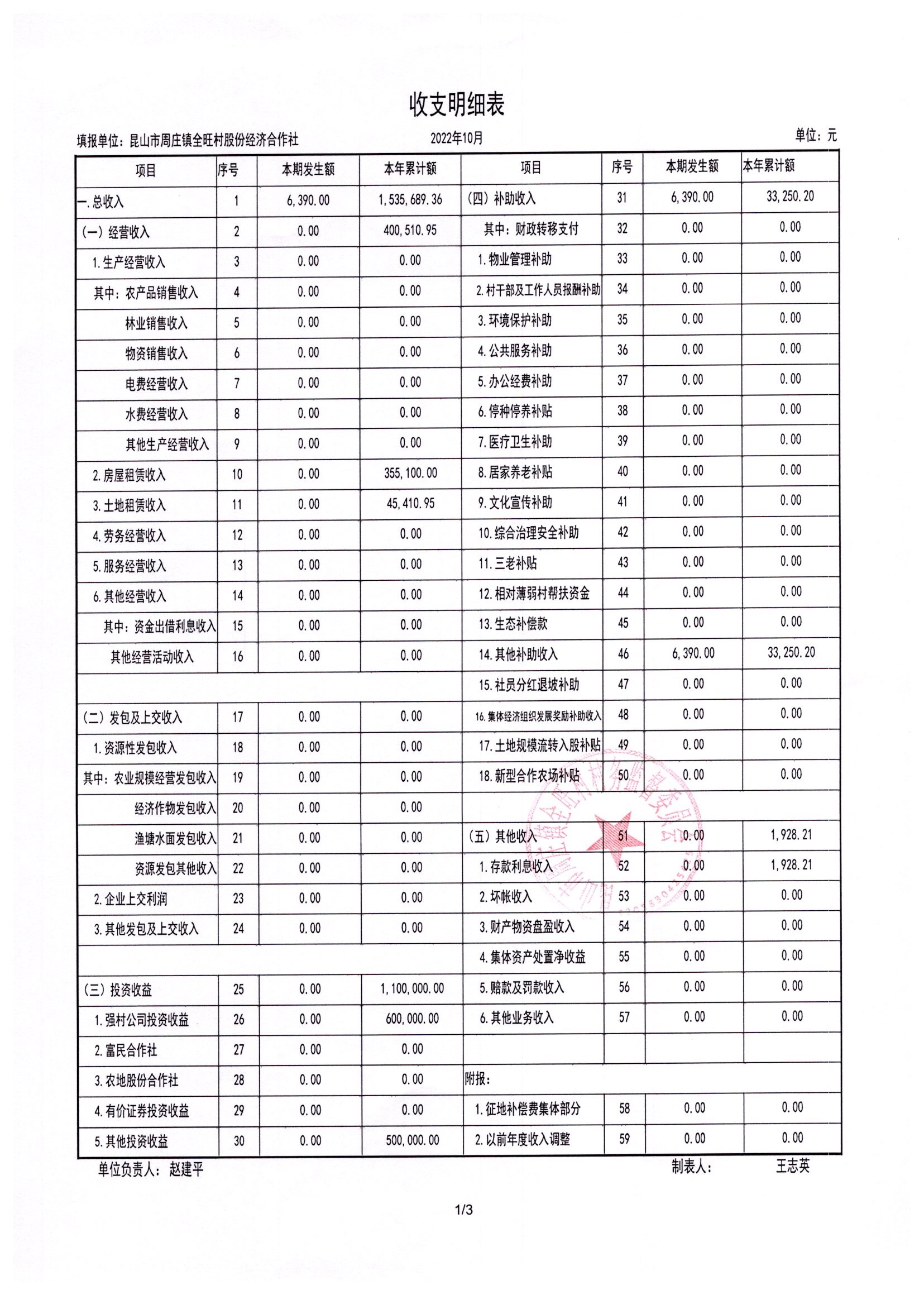 全旺村2022年10月份民主理财