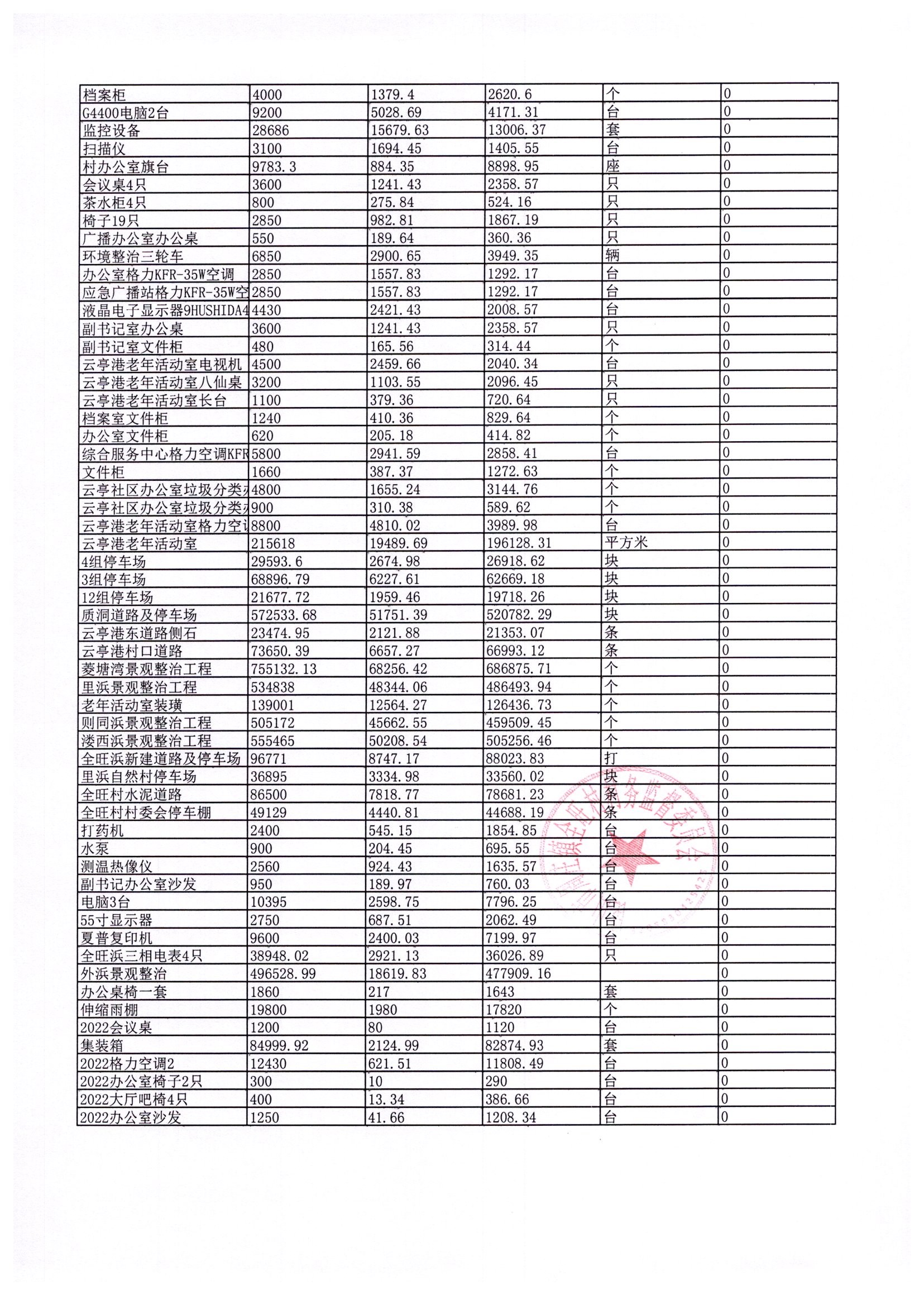 村盖章事项名录